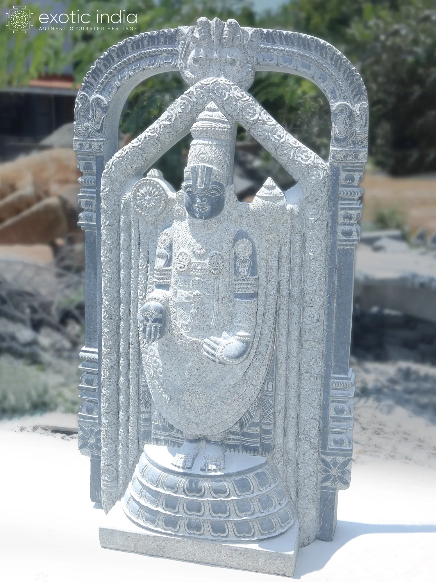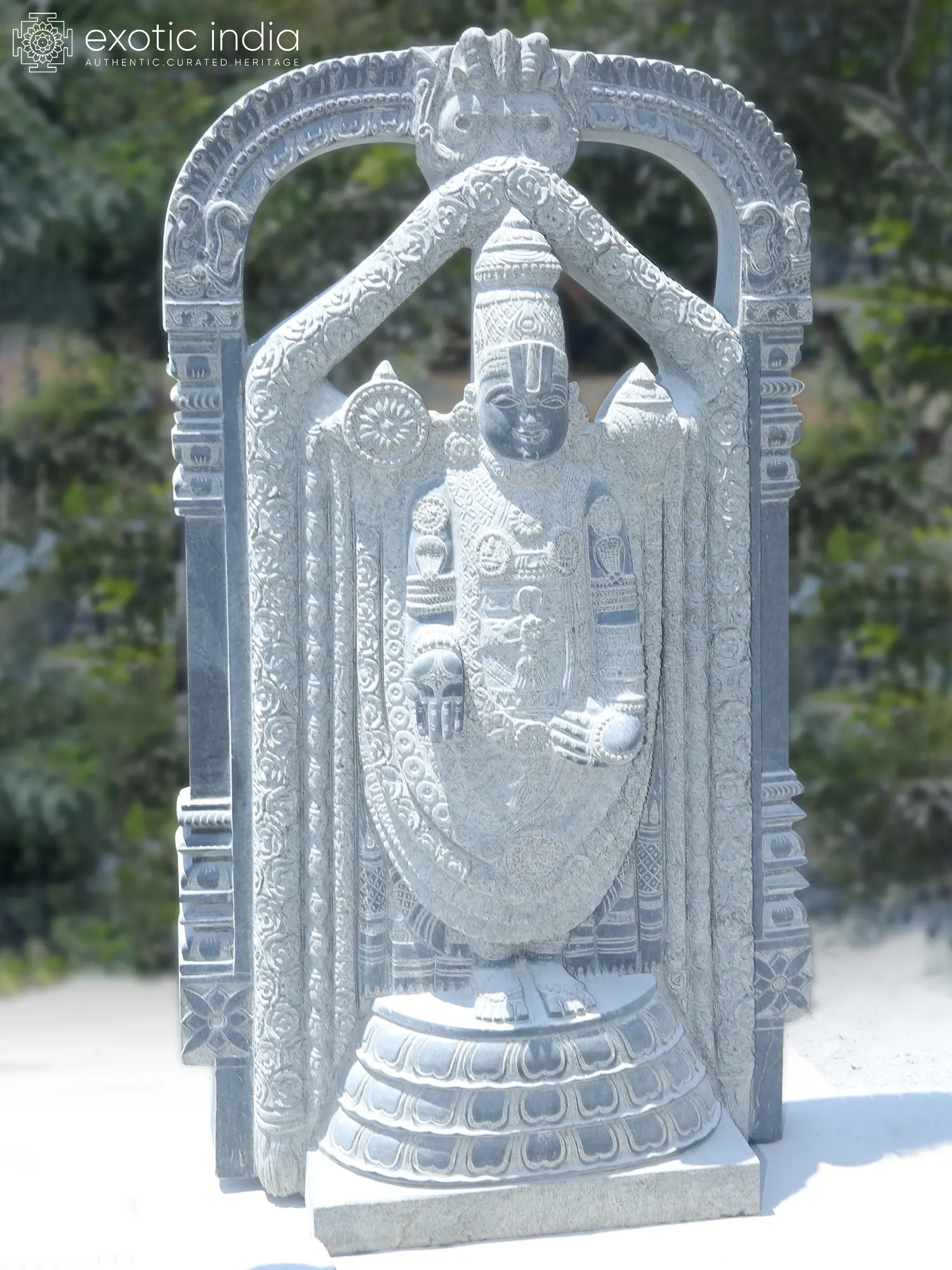 The Black Granite Stone Idol of Standing Lord Tirupati Balaji showcases the majestic form of Lord Venkateshwara in intricate detail.