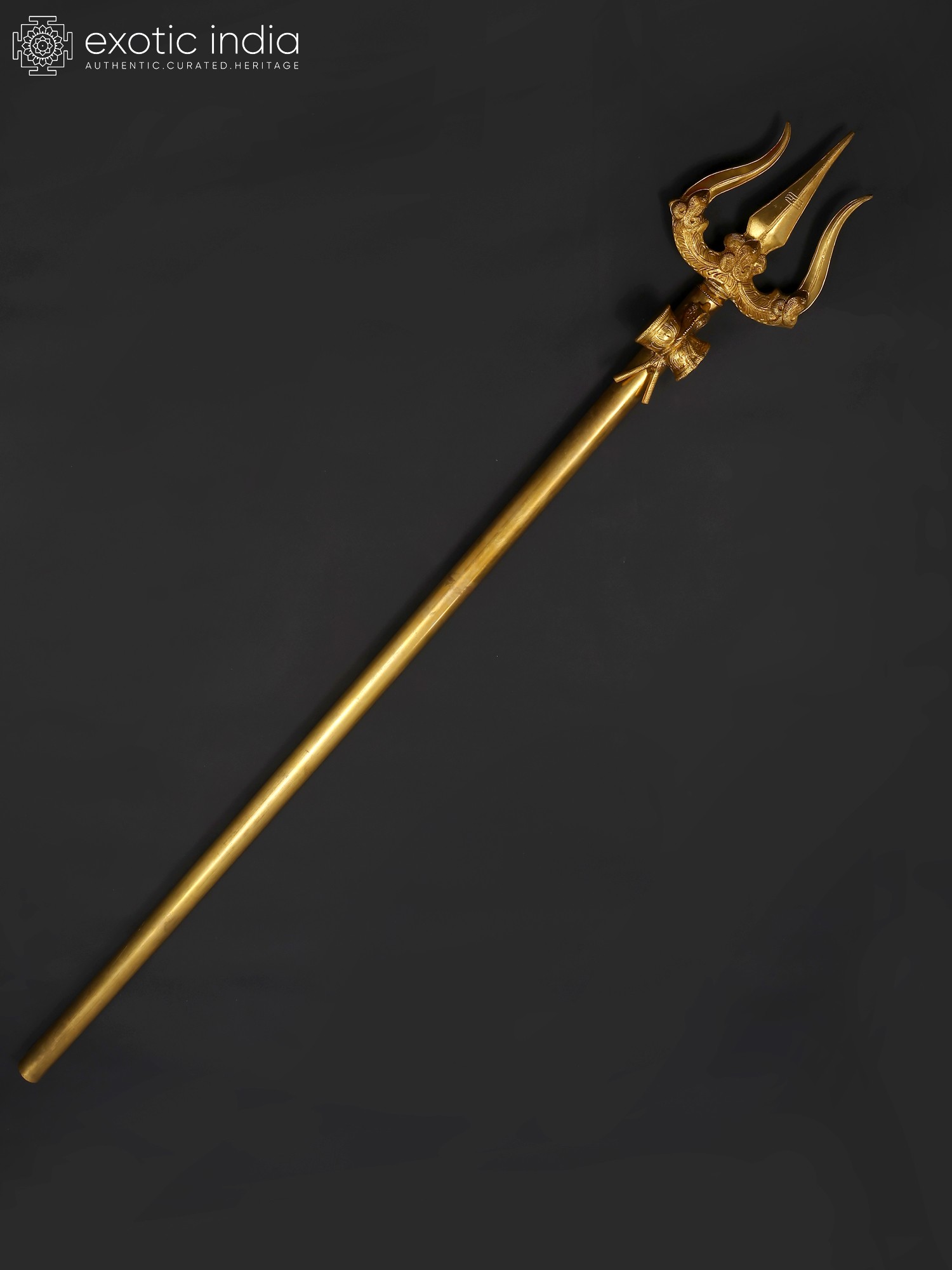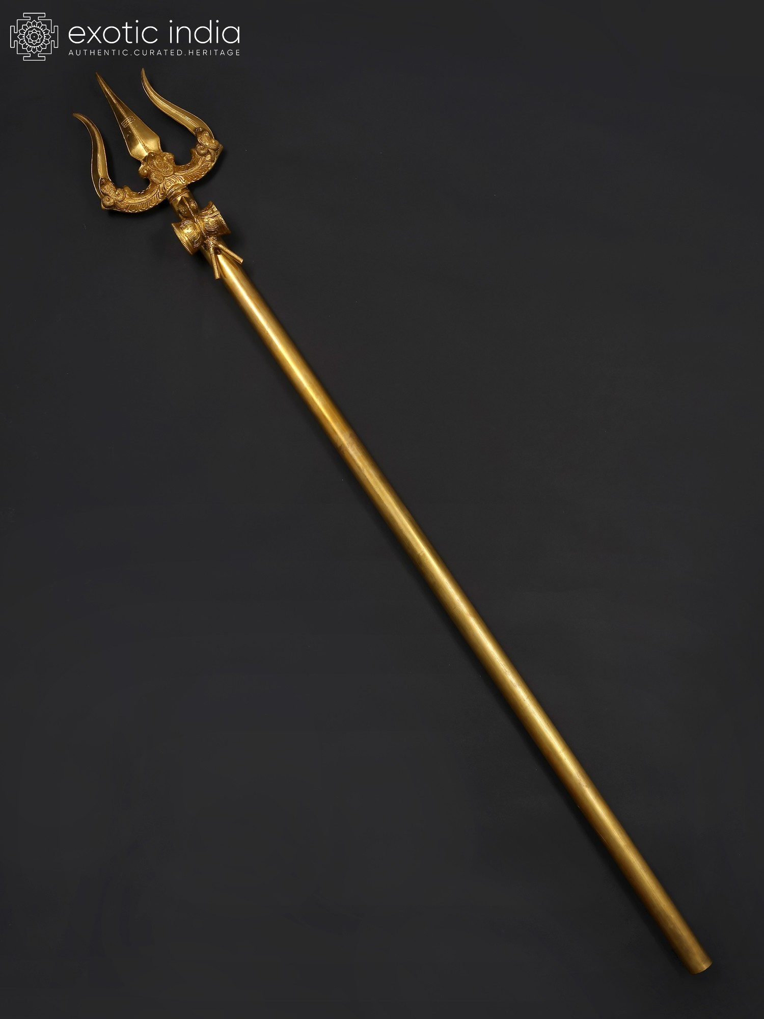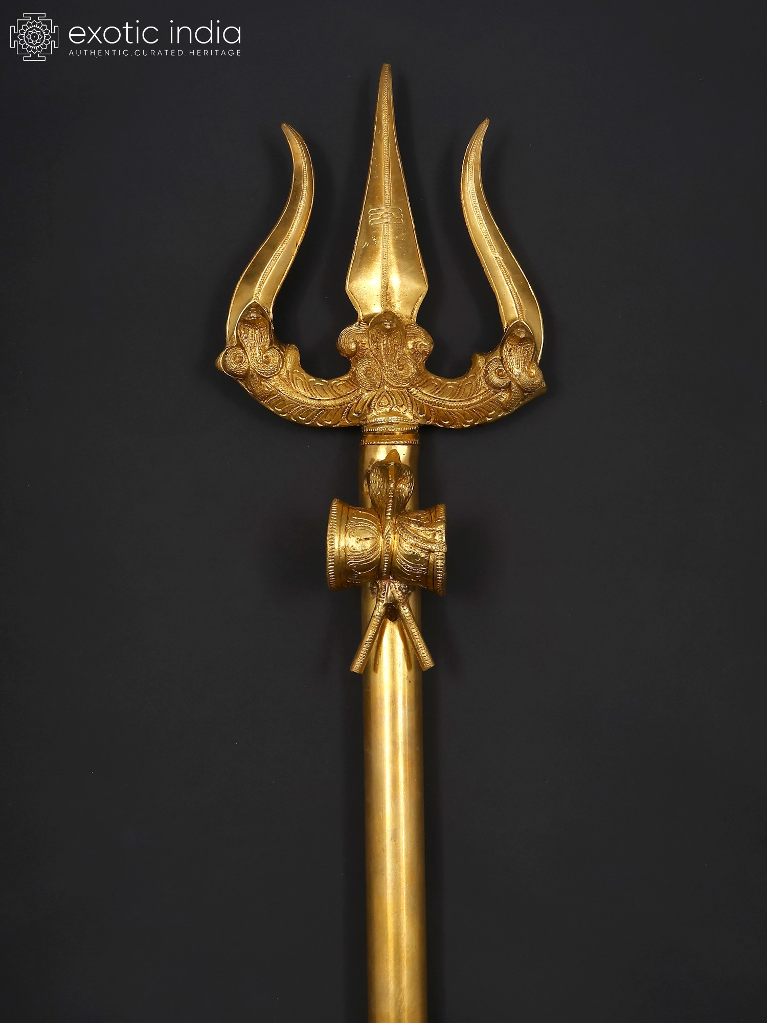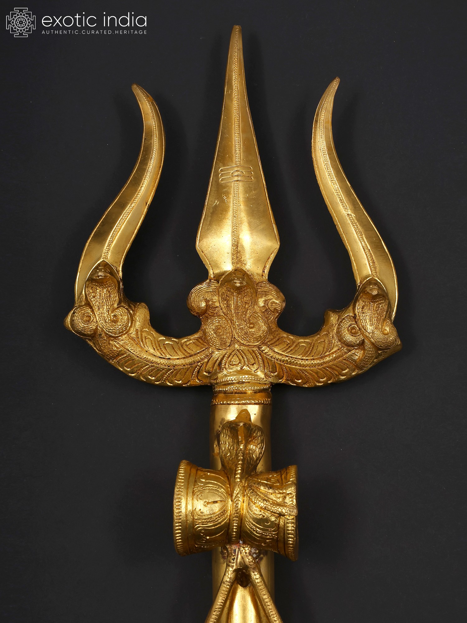 4" Small Brass Superfine Stylized Trishul on Green Aventurine Gemstone Base
