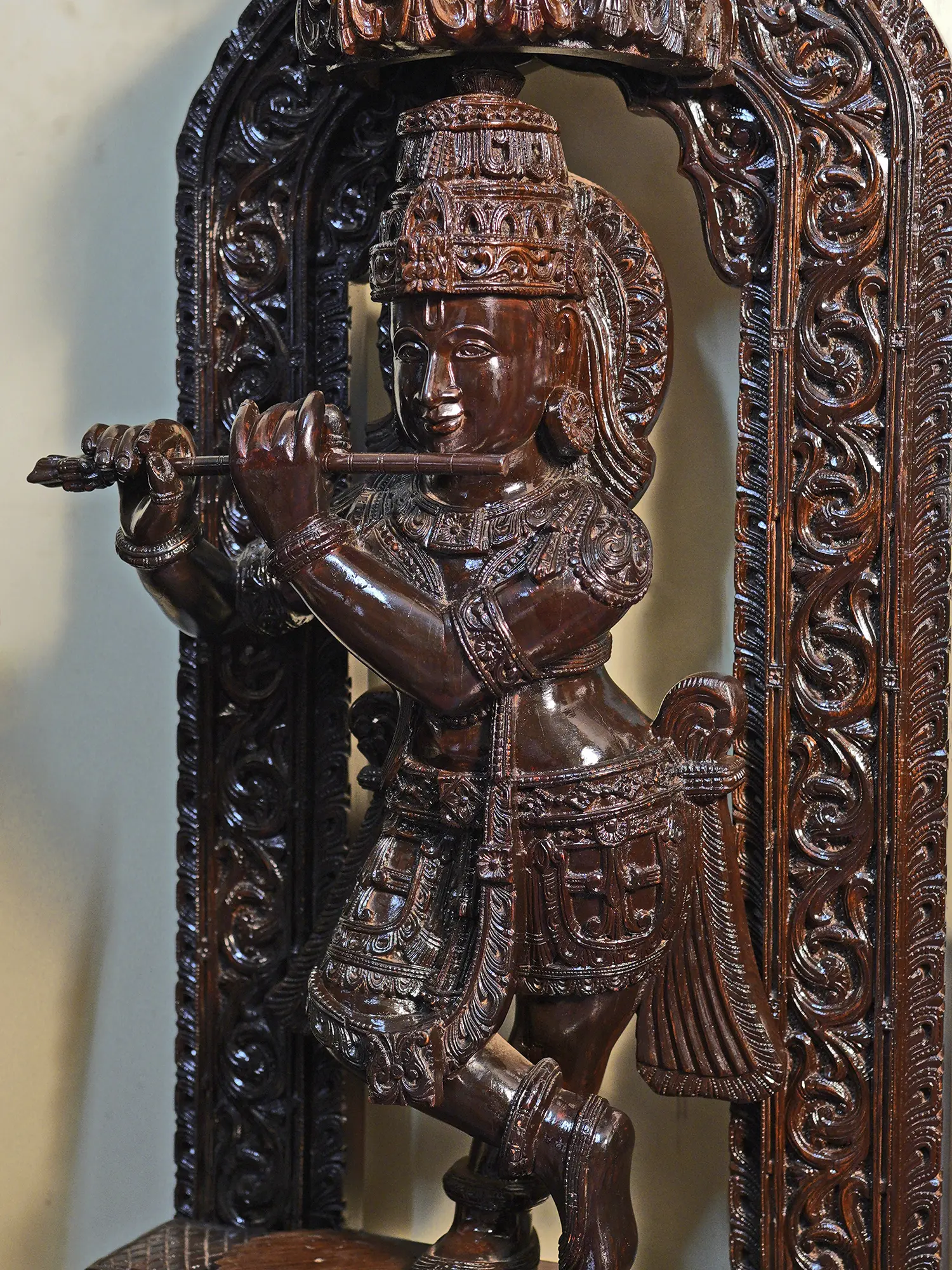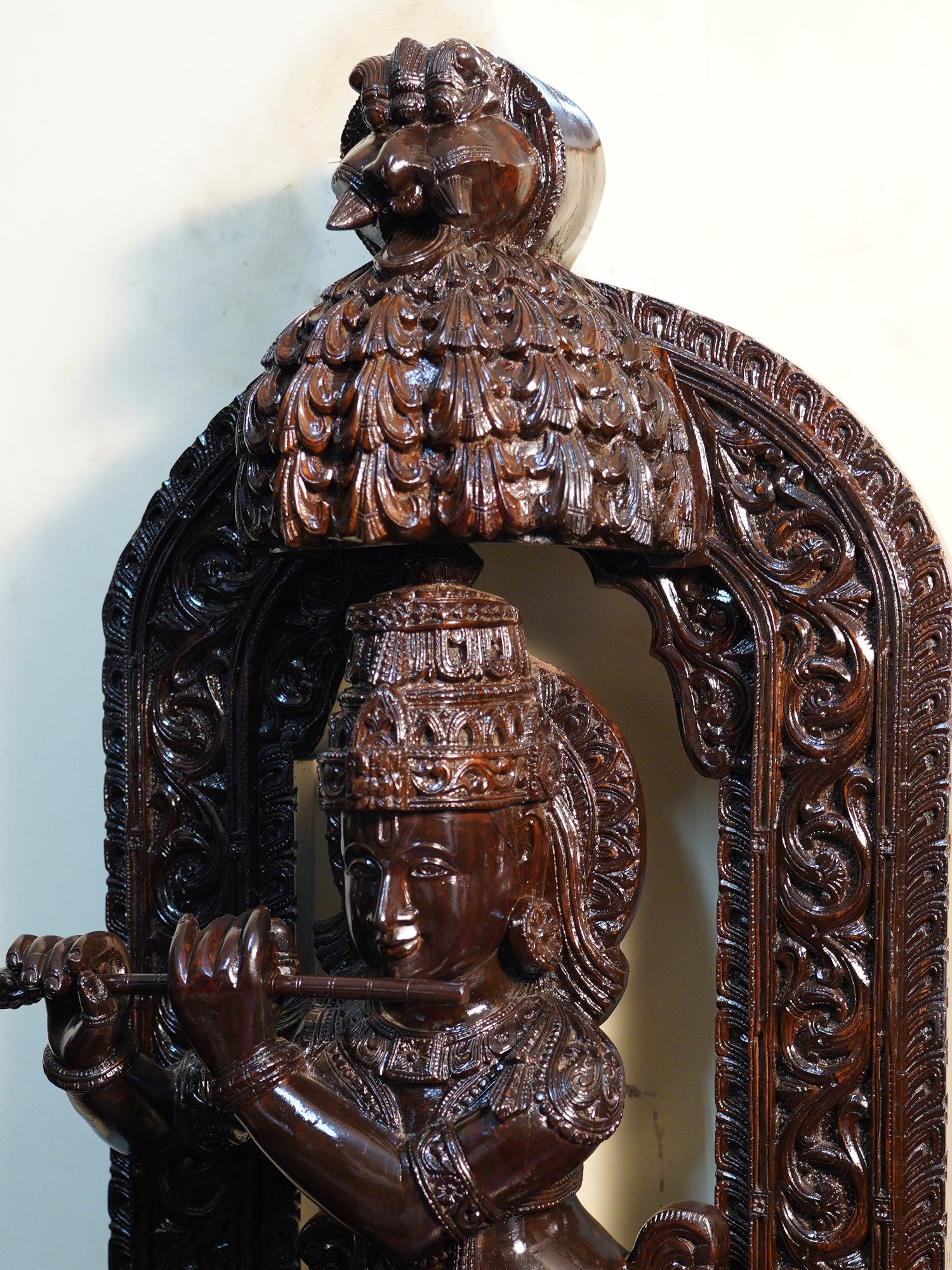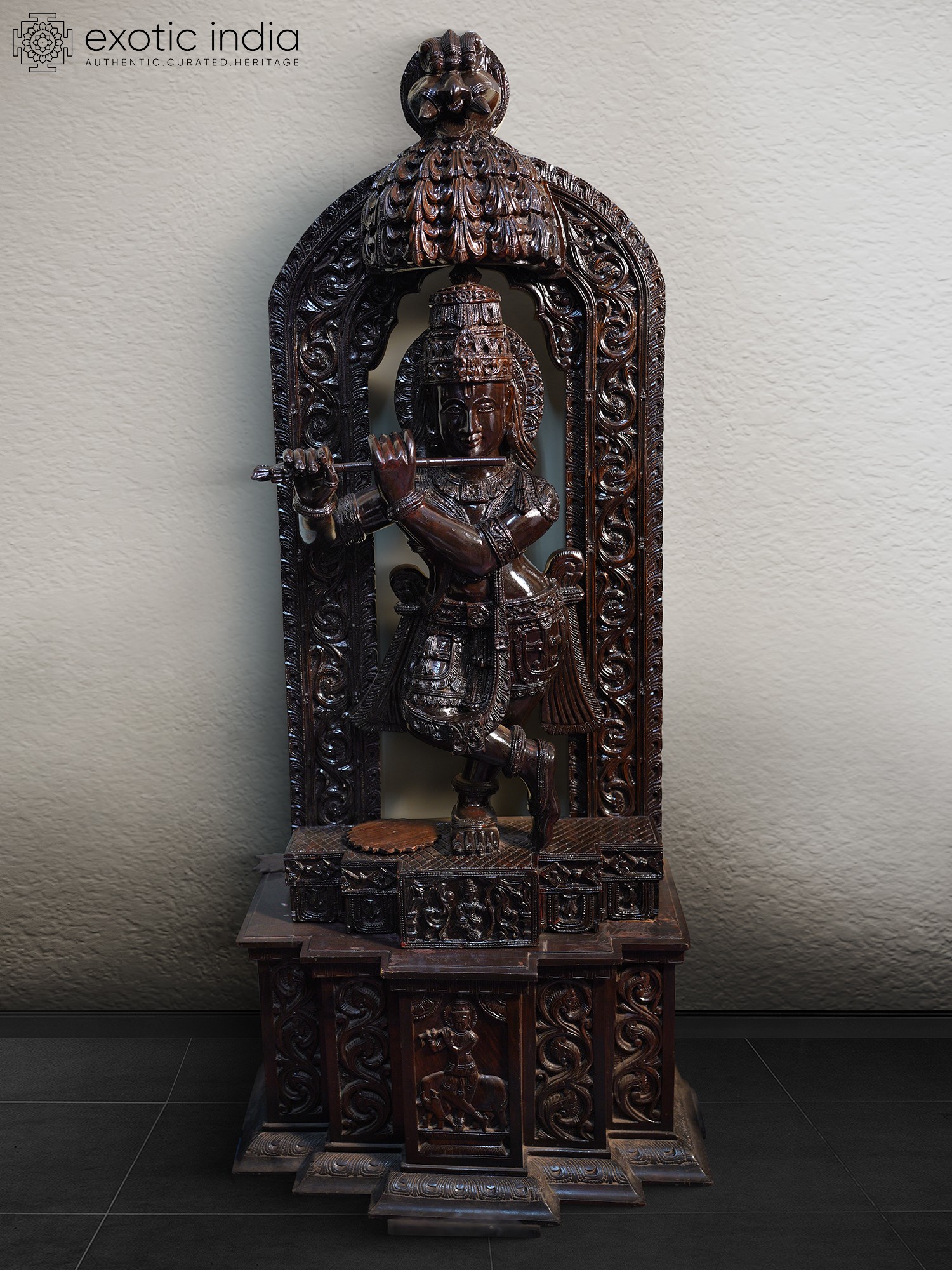 64" Lord Krishna Statue With Flute And Base | Handmade Rosewood Figurine