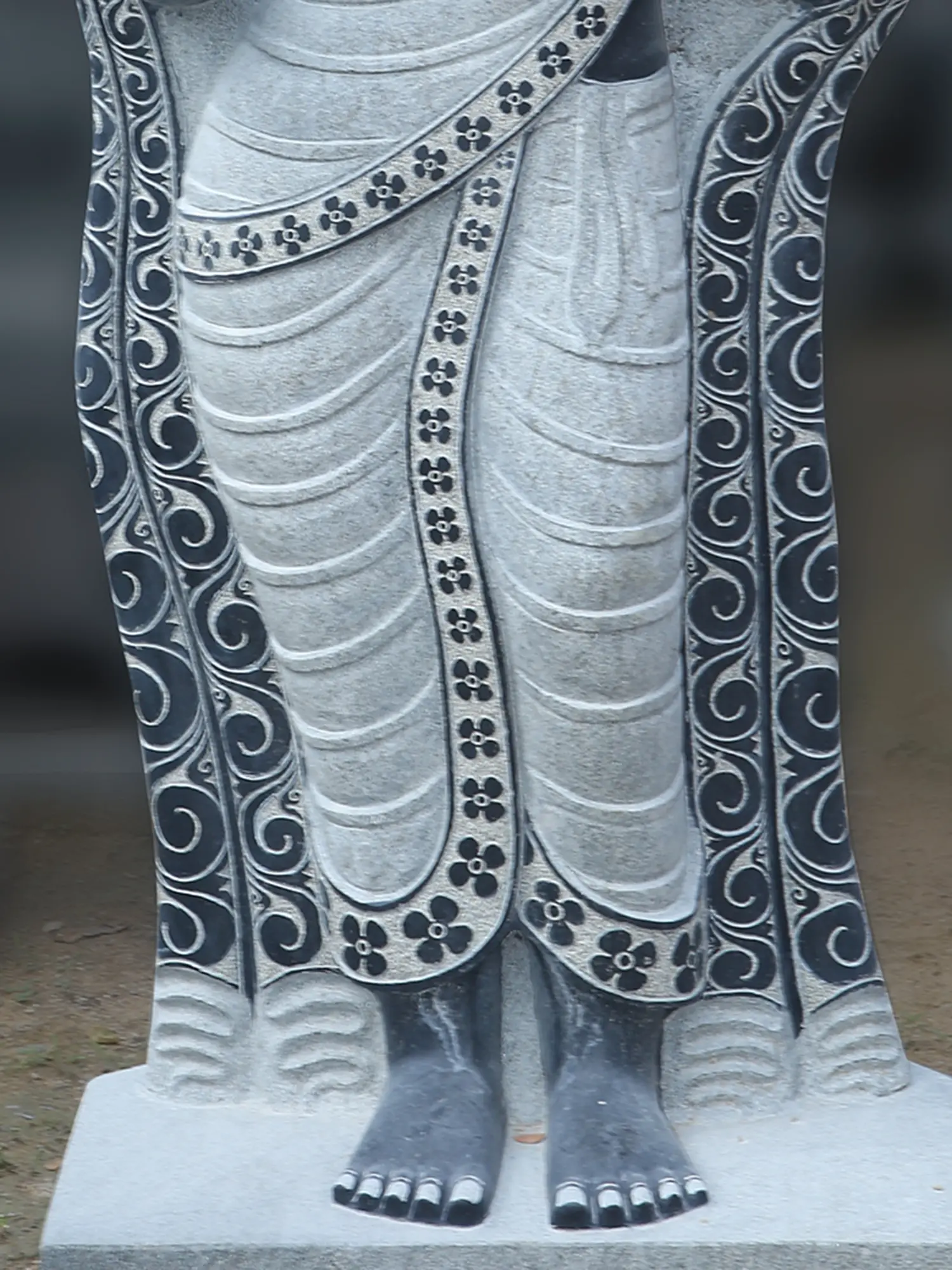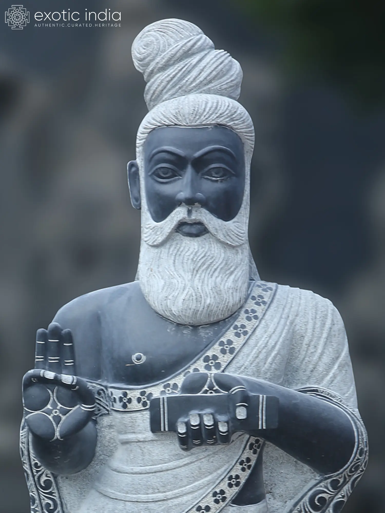 This superb 5-foot large granite statue of Saint Thiruvallavur, the flagbearer of Tamil literary heritage, is inspired by the majestic sculpture of the saint located on the island of Kanyakumari.