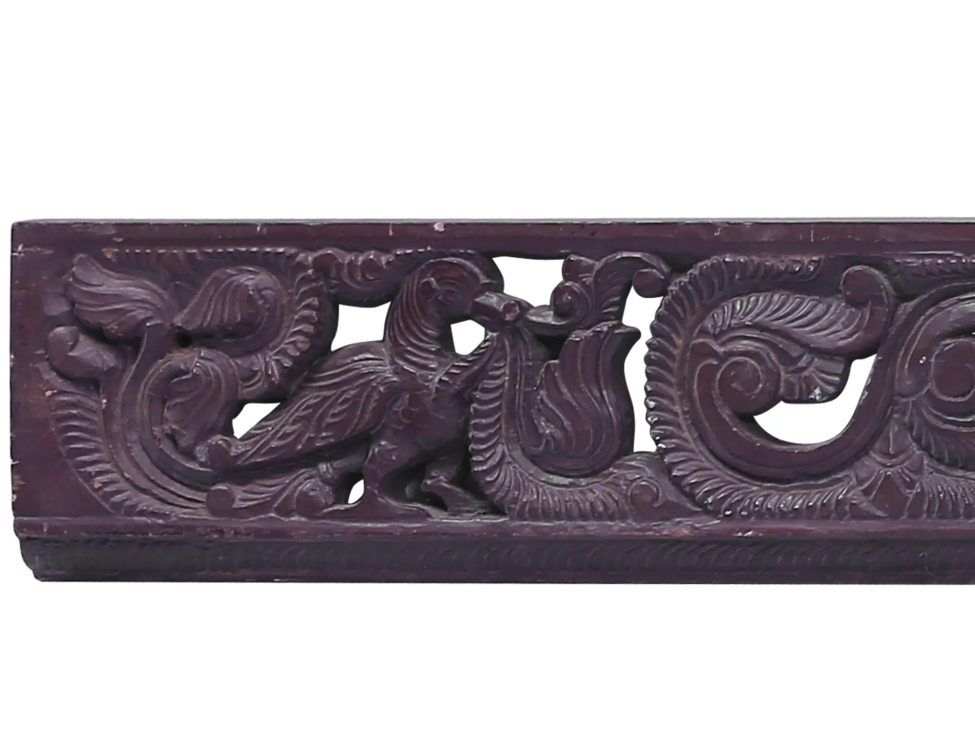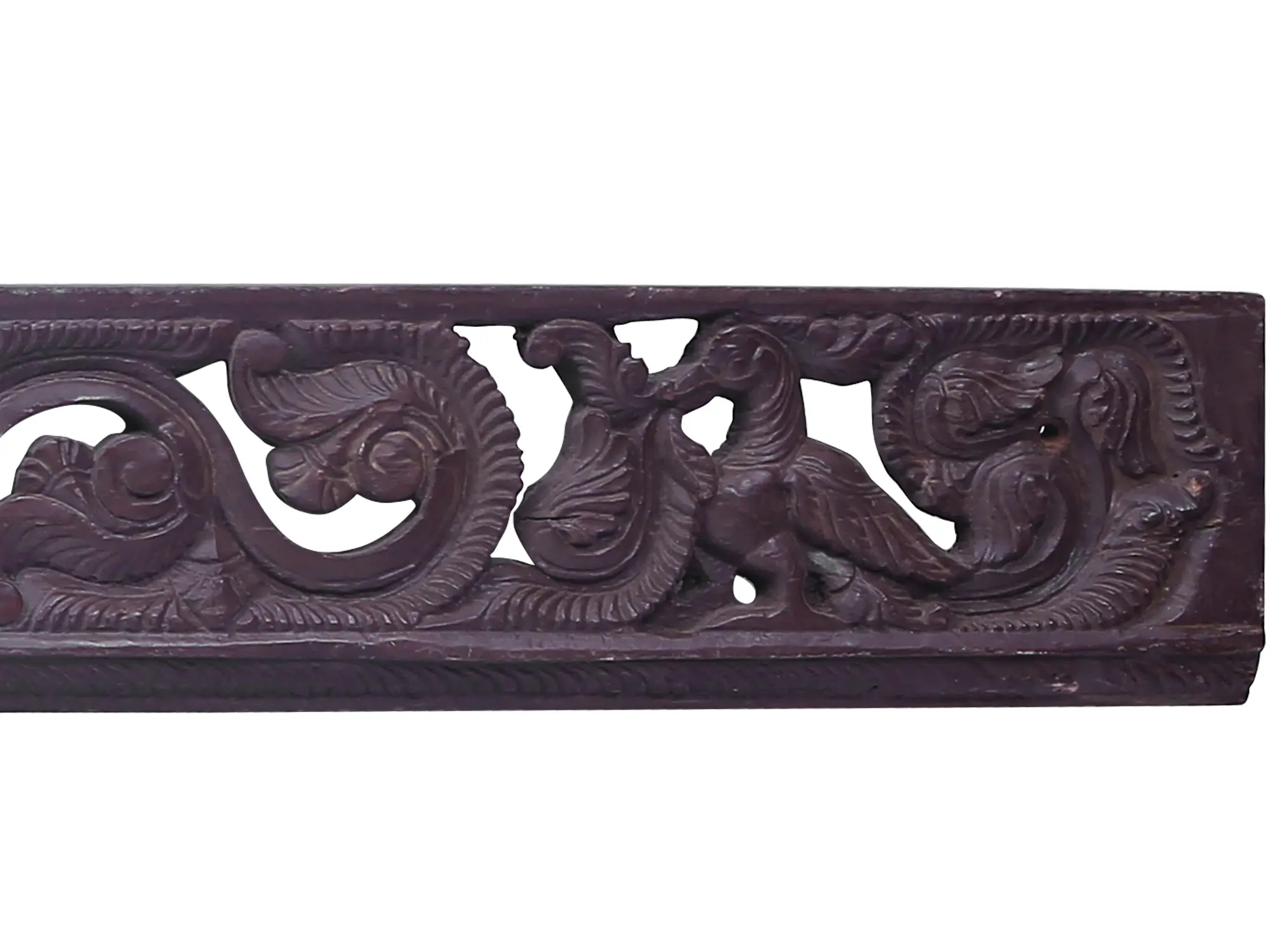 This exquisite wooden wall panel, meticulously crafted in India, is more than just a decorative piece; it's a testament to a rich cultural heritage and a gateway to spiritual contemplation. Carved from solid wood, its intricate detailing and flowing design evoke a sense of timeless elegance, making it a captivating focal point for any space. The panel features a repeating motif that hints at mythological narratives and the eternal dance of creation and protection. Look closely, and you'll discern stylized mythical creatures, possibly representing the divine guardians or celestial beings that populate ancient Indian lore. These motifs are often associated with prosperity, strength, and the cosmic order. In Hindu mythology, figures like the Garuda, a divine eagle-like creature, or the Makara, a mythical sea creature, are frequently depicted in architectural ornamentation, symbolizing power and auspiciousness. The fluid, almost ethereal curves of the carving suggest a connection to the divine realm, where these beings are said to reside.