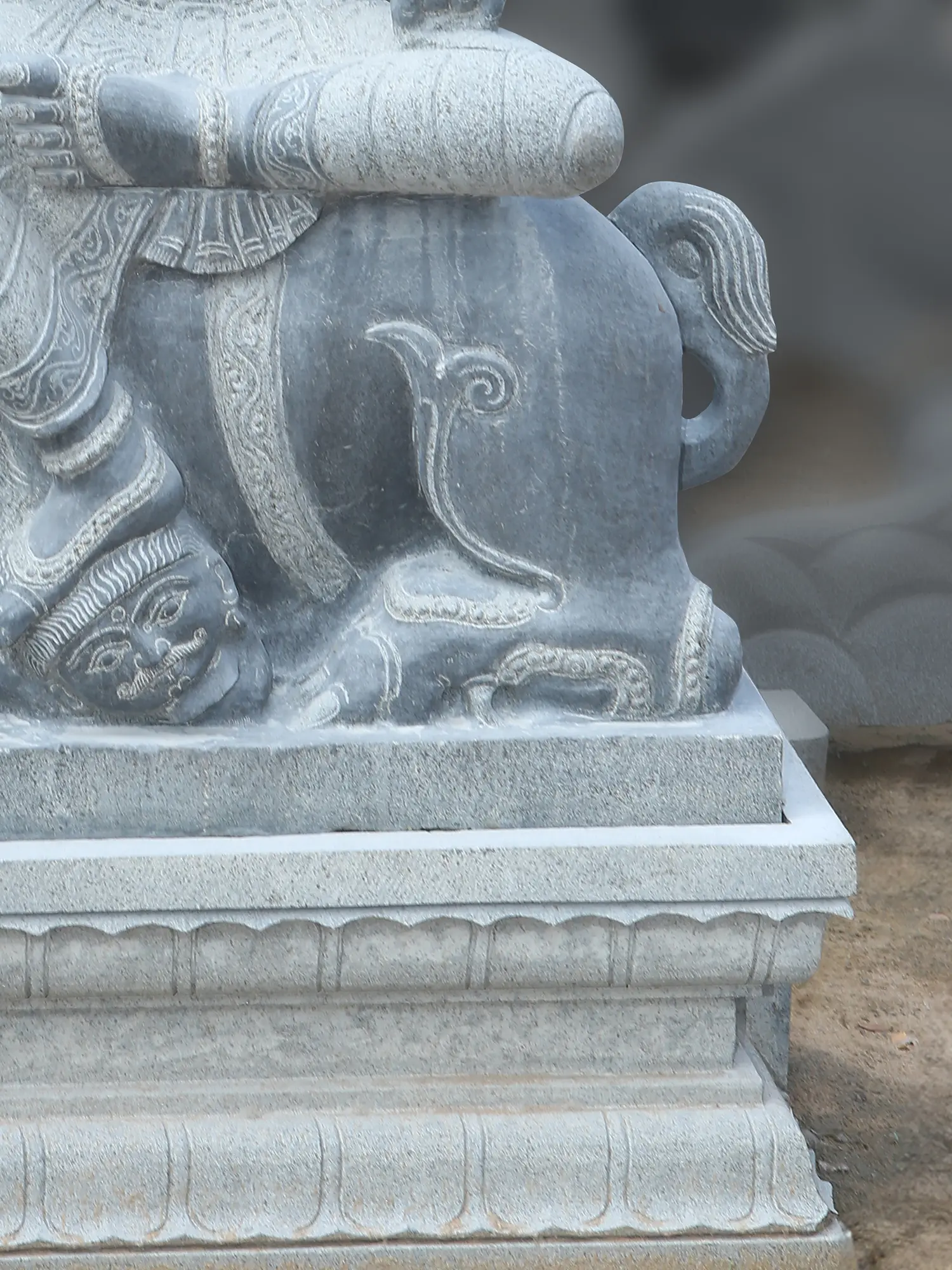 Inspired by the classic temple sculptures of Tamil Nadu and surrounding areas, the granite statue has a powerful aura, elevated by an exquisite lotus platform that allows the devotee to completely immerse themselves in the Darshana of Mariamman.