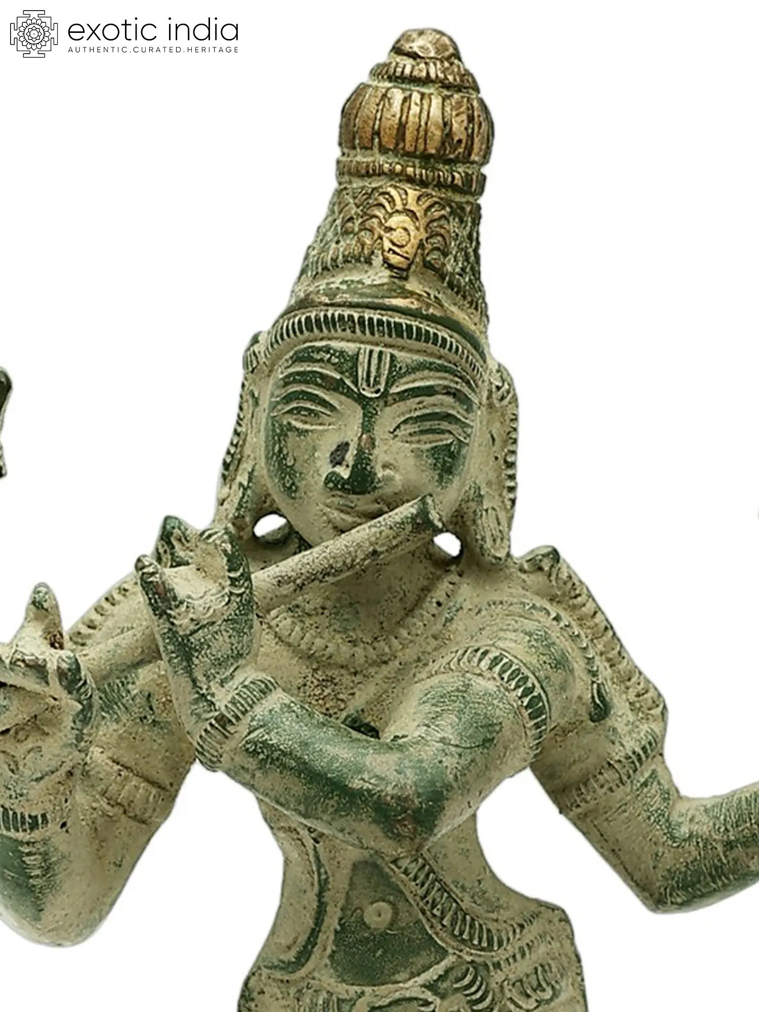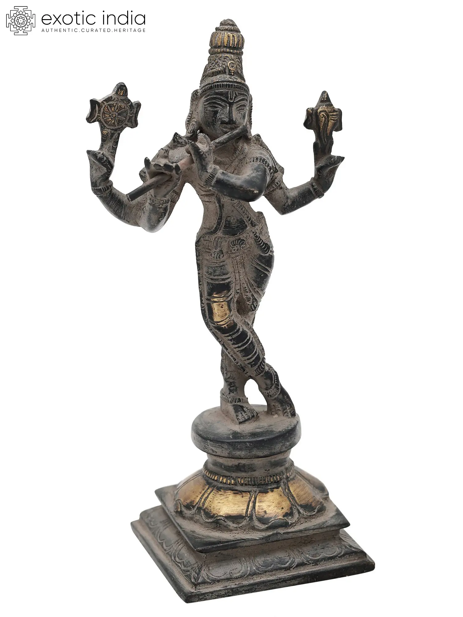In the heart of the Lord Murli Krishna brass statue lies a convergence of artistry and divine symbolism. Crafted with meticulous precision this masterpiece encapsulates the spiritual essence of Lord Krishna, adorned with a celestial flute. The brass medium lends a timeless charm to the statue, with intricate details that mirror Krishna's playful divinity. Its warm radiance creates an atmosphere that beckons a connection to the cosmic forces. Every nuance reflects a profound dedication, elevating the statue beyond mere art to a conduit for spiritual contemplation. This creation is a testament to the artisan's skill, weaving a narrative of reverence and aesthetic brilliance.
