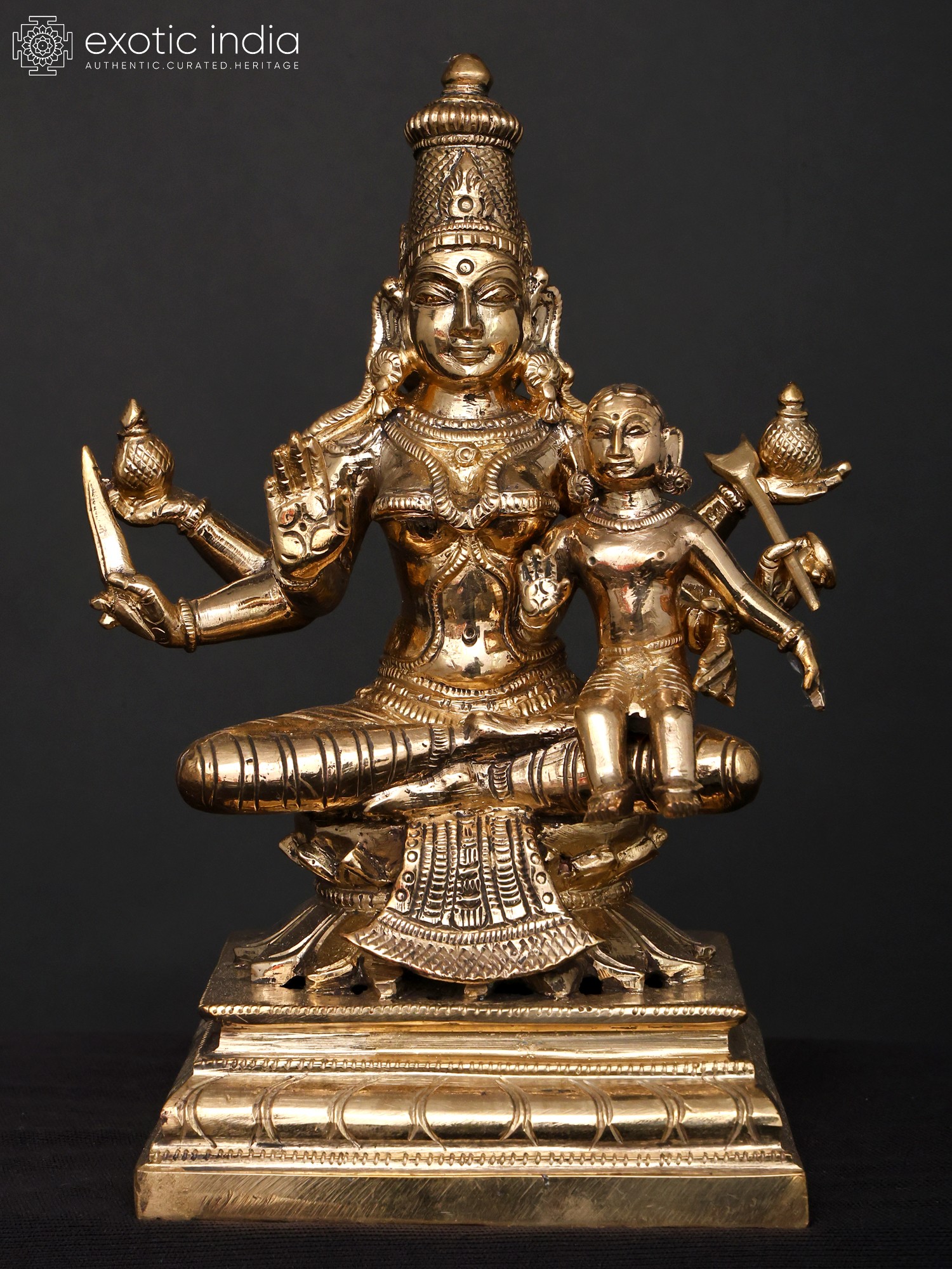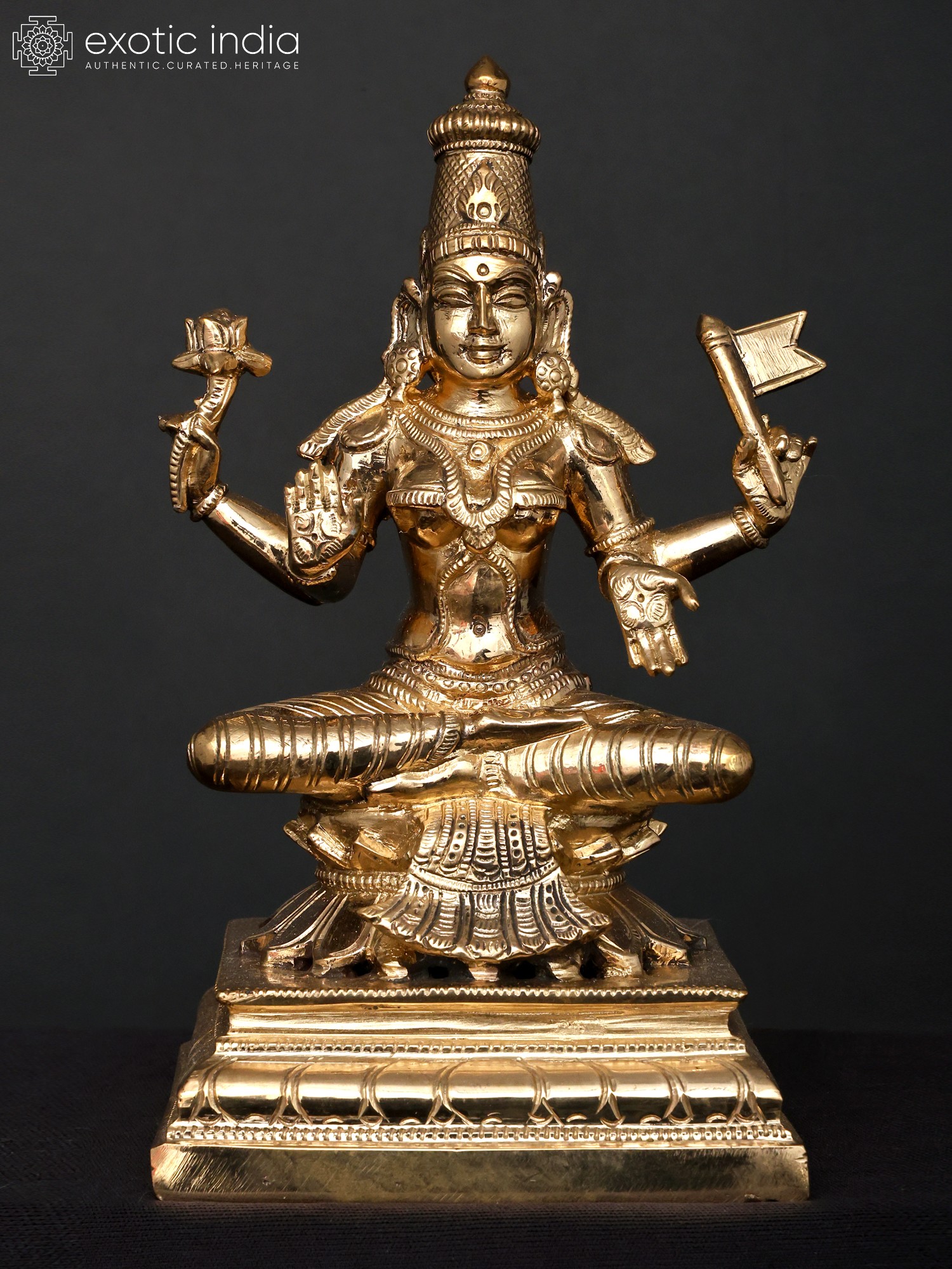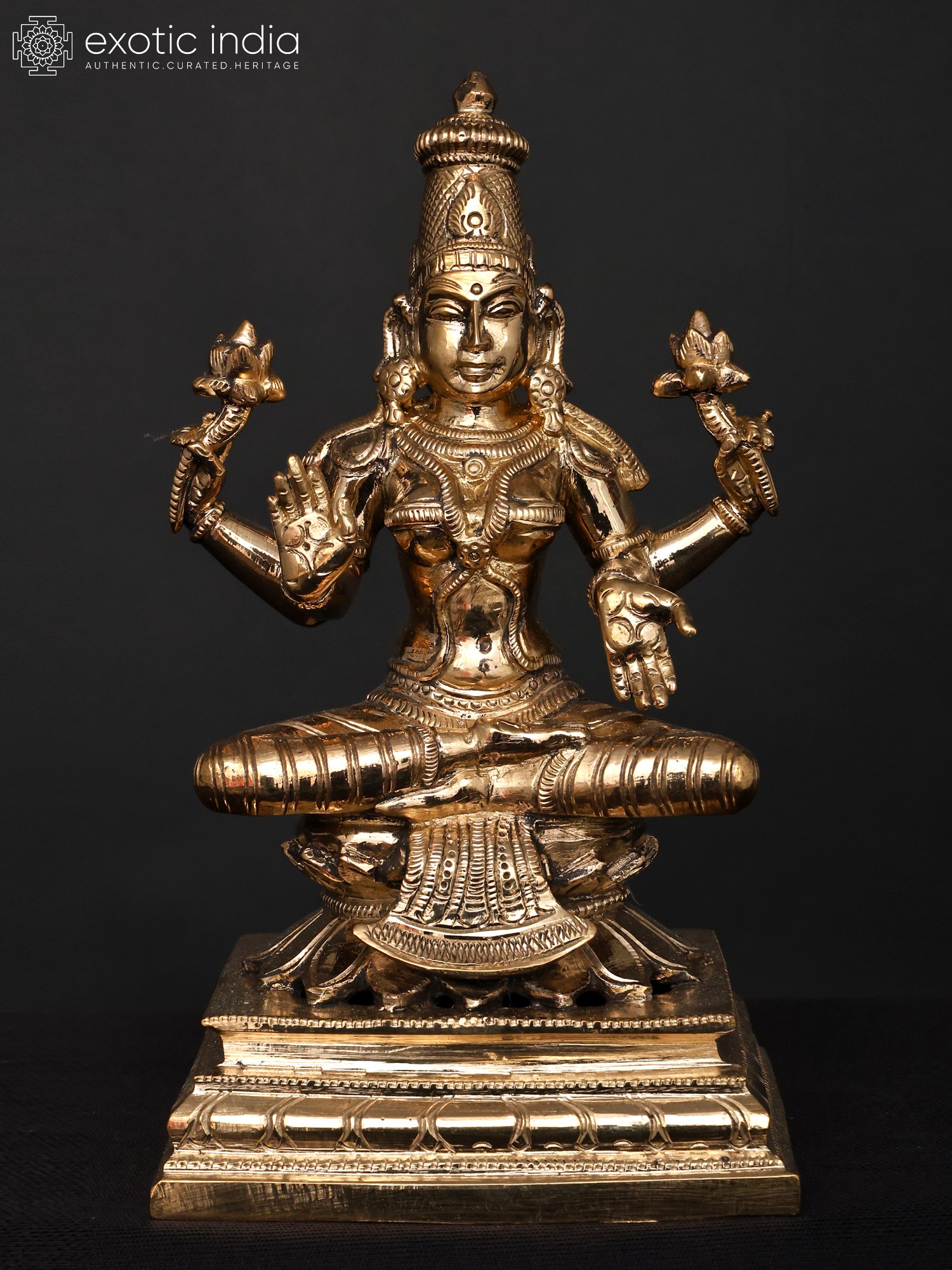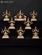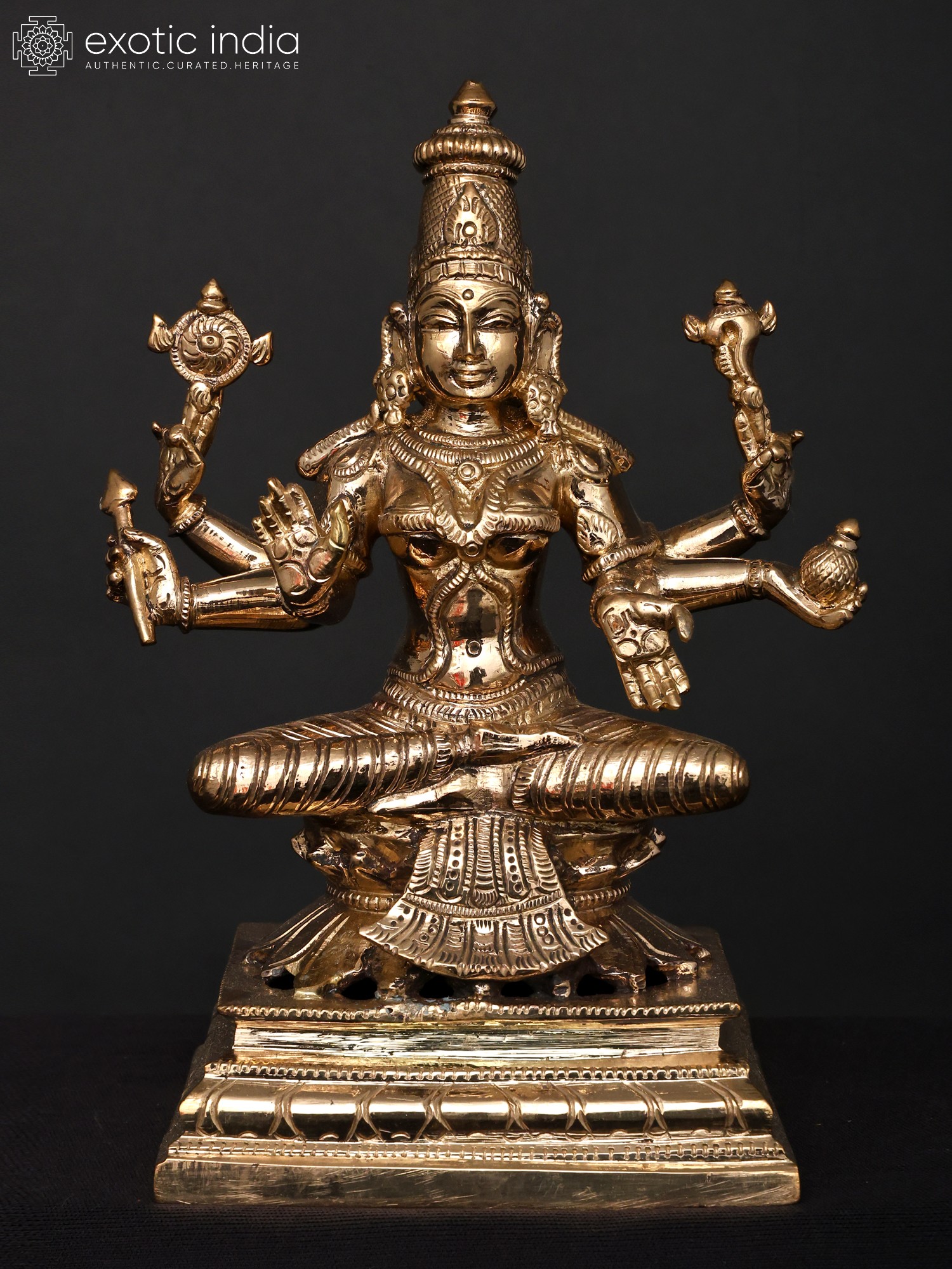 Do not be fooled by the seemingly small scale of these group of eight ‘panchaloha’ bronze images, for it is in their combined presentation that we truly witness the energetic and creative forces of the divine – the inherently female tendencies of Shakti, manifested here in the eight forms of Lakshmi.
