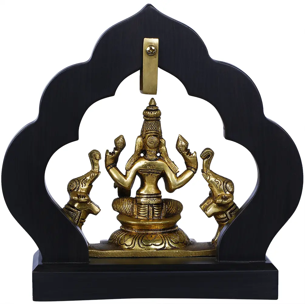 Goddess Gajalakshmi, “the ethereal embodiment of prosperity”, graces her devotees with opulence and success. Adorned in divine radiance, She enthroned upon a delicate lotus pedestal, a symbol of purity. Two majestic elephants, custodians of fortune, tenderly anoint her with sacred waters, their ritualistic gesture echoing abundance. In her right hand, She bestows the reassuring “Abhaya Mudra”, dispelling fears, while her left, poised in “Varada Mudra”, showers benevolence upon seekers. A celestial dance of elegance and grace, She manifests as the patroness of wealth, a beacon of divine affluence. Her presence is adorned with the regal Chattra, an umbrella symbolising protection and royal authority. This artwork signifies the eternal flow of wealth, success, and benevolence, as the goddess reigns supreme, an enchanting beacon of opulence in the cosmic tapestry.