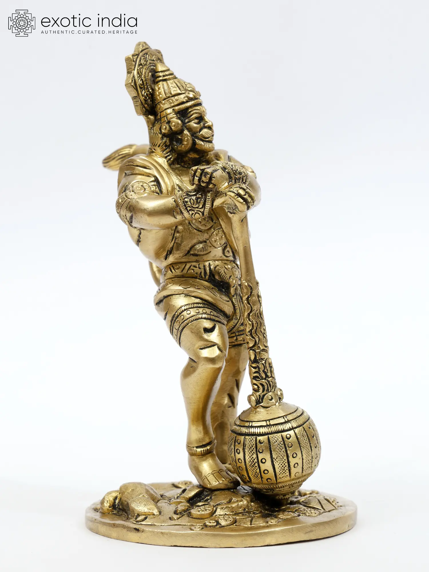 8" Superfine Standing Mahabali Hanuman in Blessing Gesture | Brass Statue with Inlay Work