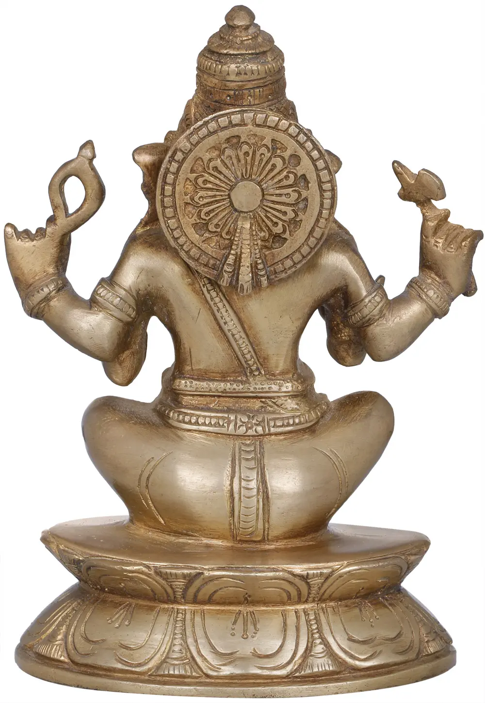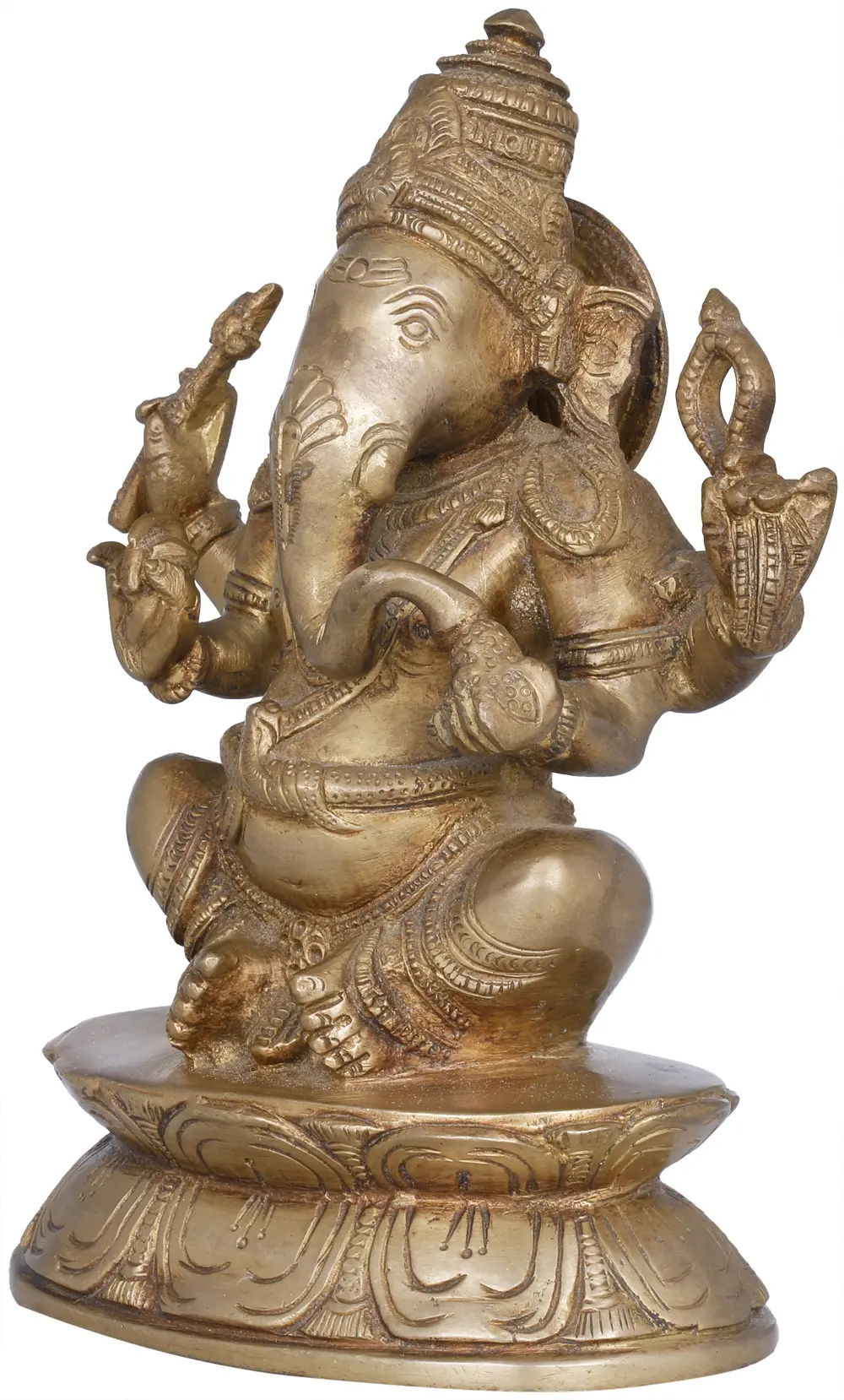 Bhagawan Ganesha, also known as the “God of Auspicious beginnings”, seated in resplendent splendour, captivates worshippers with his mighty presence. Clad in regal attire, Ganesha exudes an aura of elegance and grandeur. Ganesha holds his broken tusk in his right hand, symbolising sacrifice, wisdom, and humility. Serenely holding his goad and noose, Ganesha represents control over desires and the power to overcome obstacles. A serpent encircling his belly signifies his mastery over the “Kundalini” energy. This brass creation, a symbol of prosperity and good fortune, is a cherished centrepiece for homes, offices, and sacred spaces, inspiring devotion and fostering spiritual connection with the Almighty.