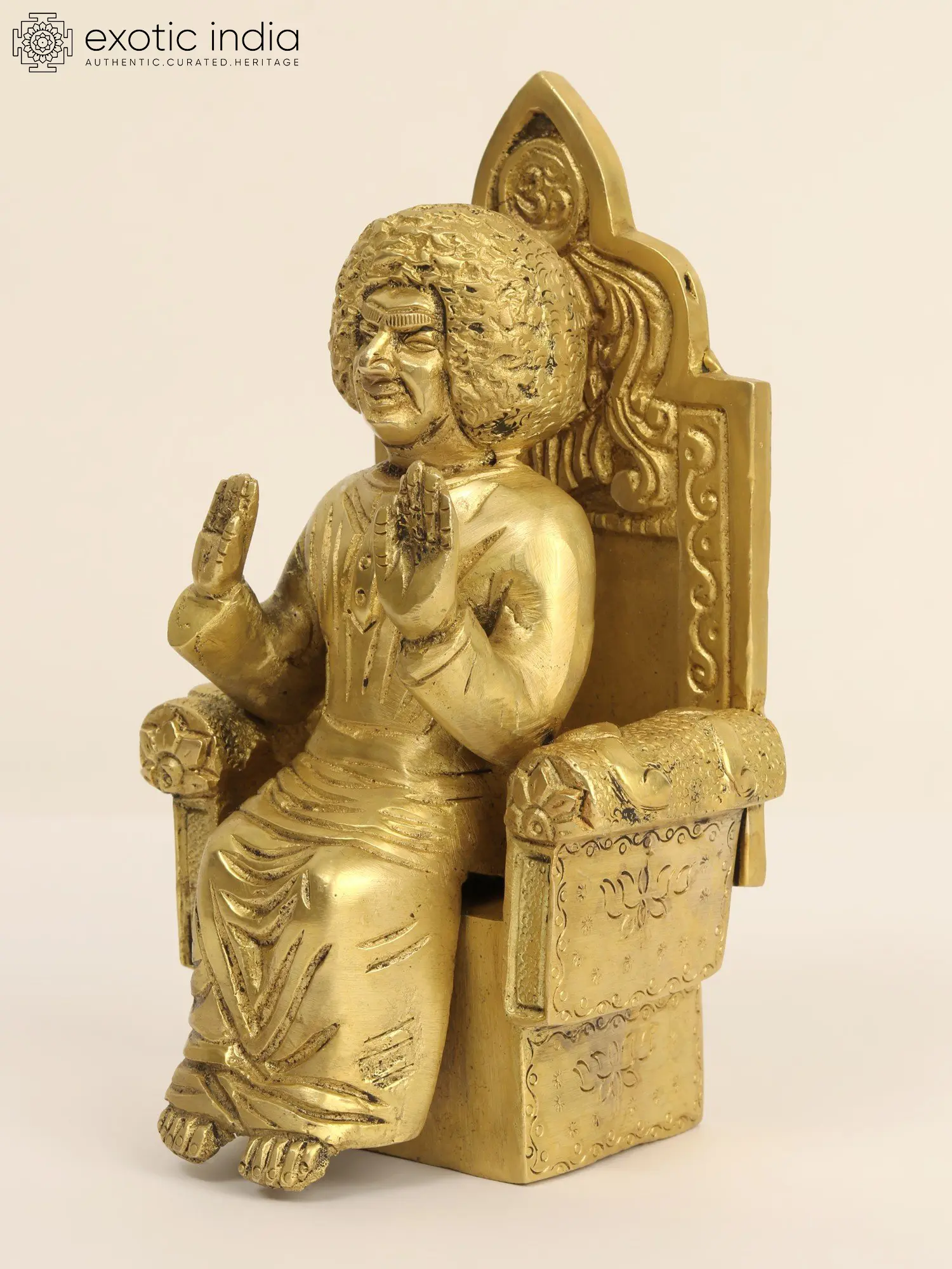 7" Sai Baba Seated on Throne In Brass | Handmade | Made In India
