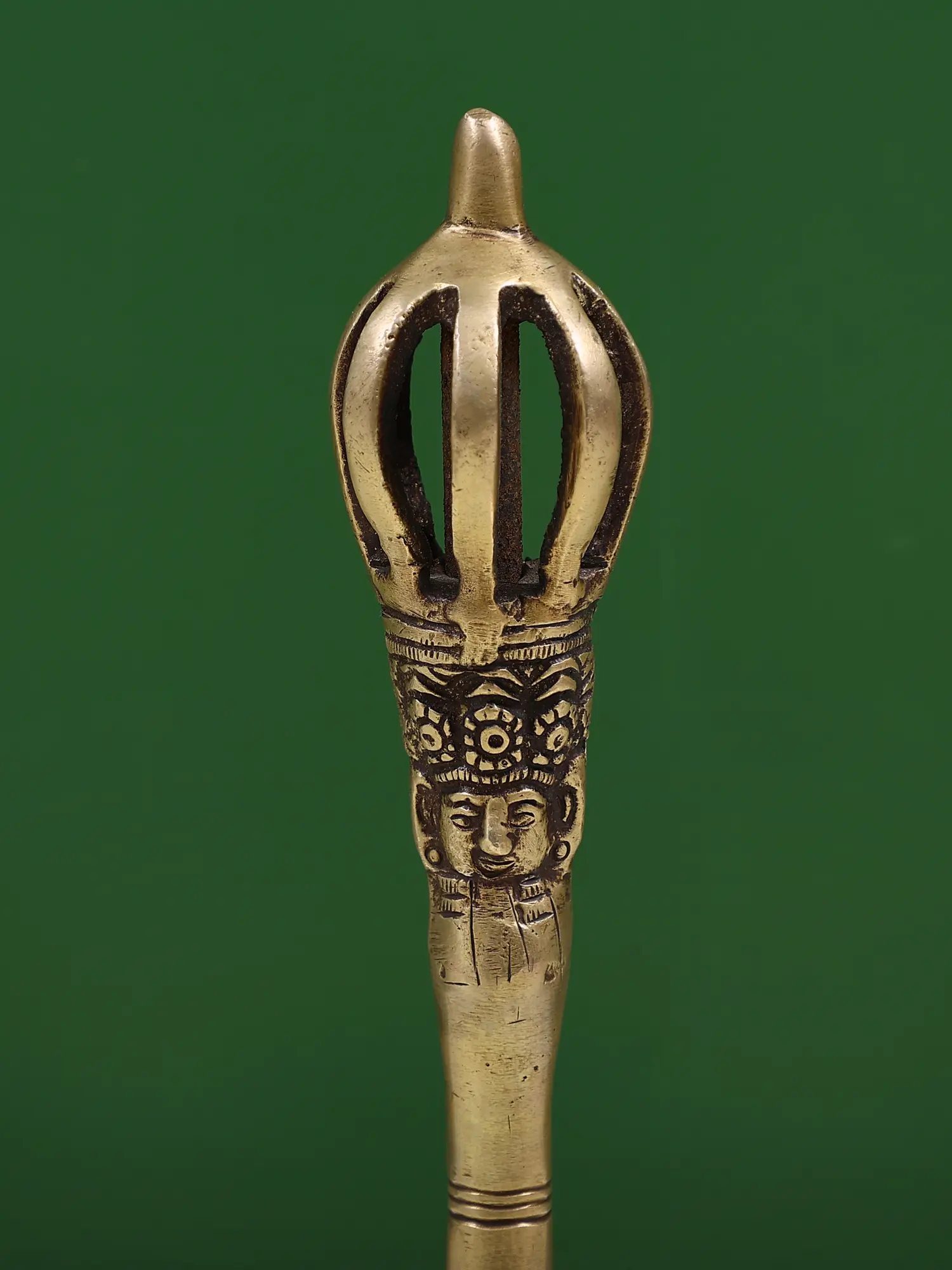 7" Brass Trishul (Trident) Ritual Handheld Bell
