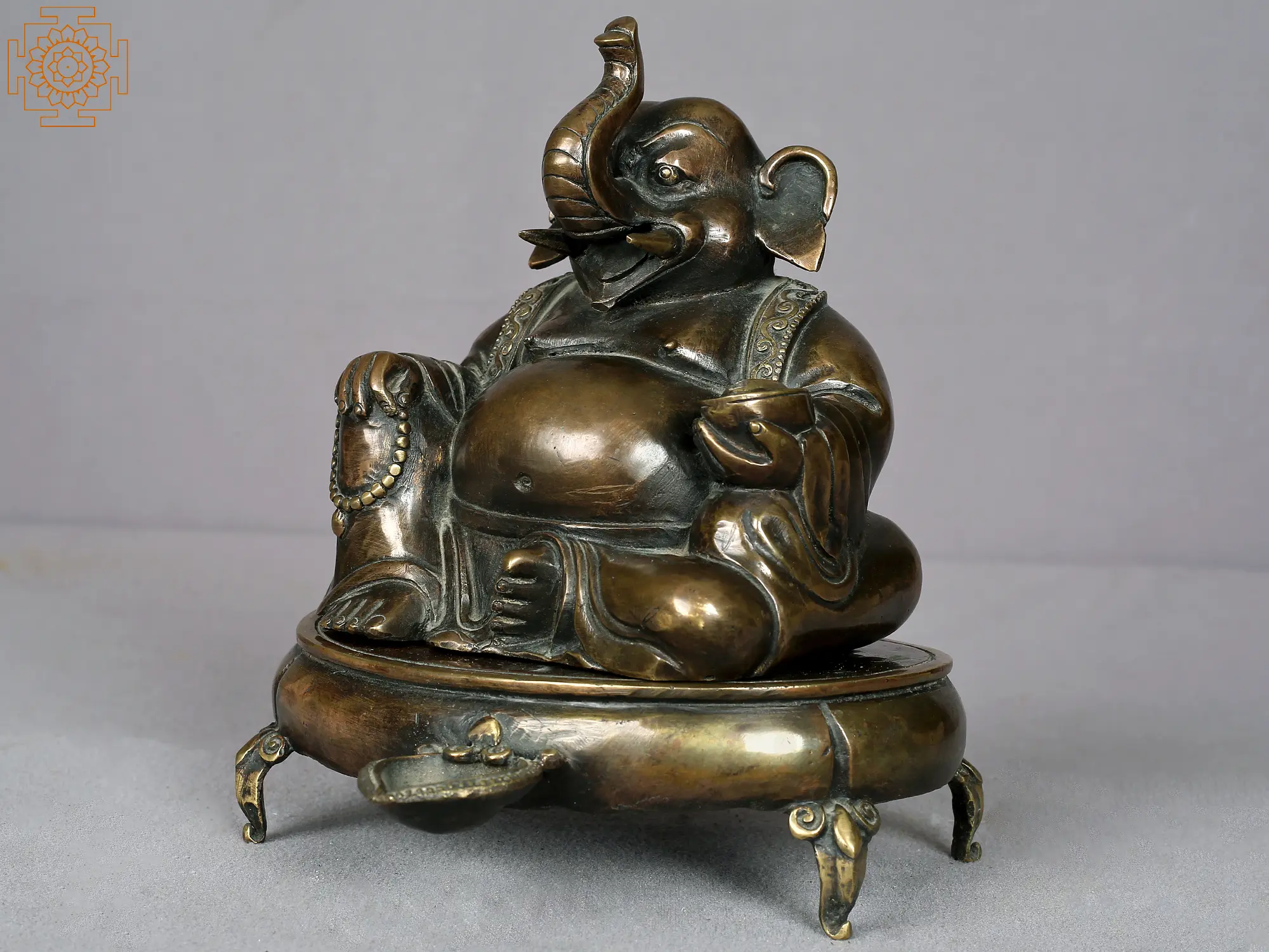 Lord Ganesha, renowned as the remover of obstacles and a spiritual guide, carries profound symbolism, each element associated with him imbuing spaces with power and positivity. He is the bestower of wisdom and prosperity. Lord Ganesha cradles a rosary in his right hand and a bowl of sweets in his left. His trunk points forward, signifying the openness of the Sushumna Nadi, the central axis of the human body, aligning with oneself, making it an ideal aid for meditation. His elephantine head embodies wisdom, while his ears, resembling winnowing baskets, serve to separate the undesirable from the beneficial. Ganesha's trunk, akin to an elephant's, possesses the ability to clear obstructions from one's life path, exemplifying his role as the remover of obstacles.