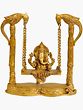 In the Lord Ganesha on a Parrot Swing, the elephant-headed deity is depicted as a playful and compassionate figure. Seated on a swing with a parrot perched on his finger, Lord Ganesha represents the removal of obstacles and the unfolding of life's beauty. His broken tusk symbolizes sacrifice for wisdom, and the sweets in his other hand remind us of the sweet fruits of patience and perseverance. This charming brass sculpture serves as a reminder that even in life's ups and downs, we can find joy and grace.