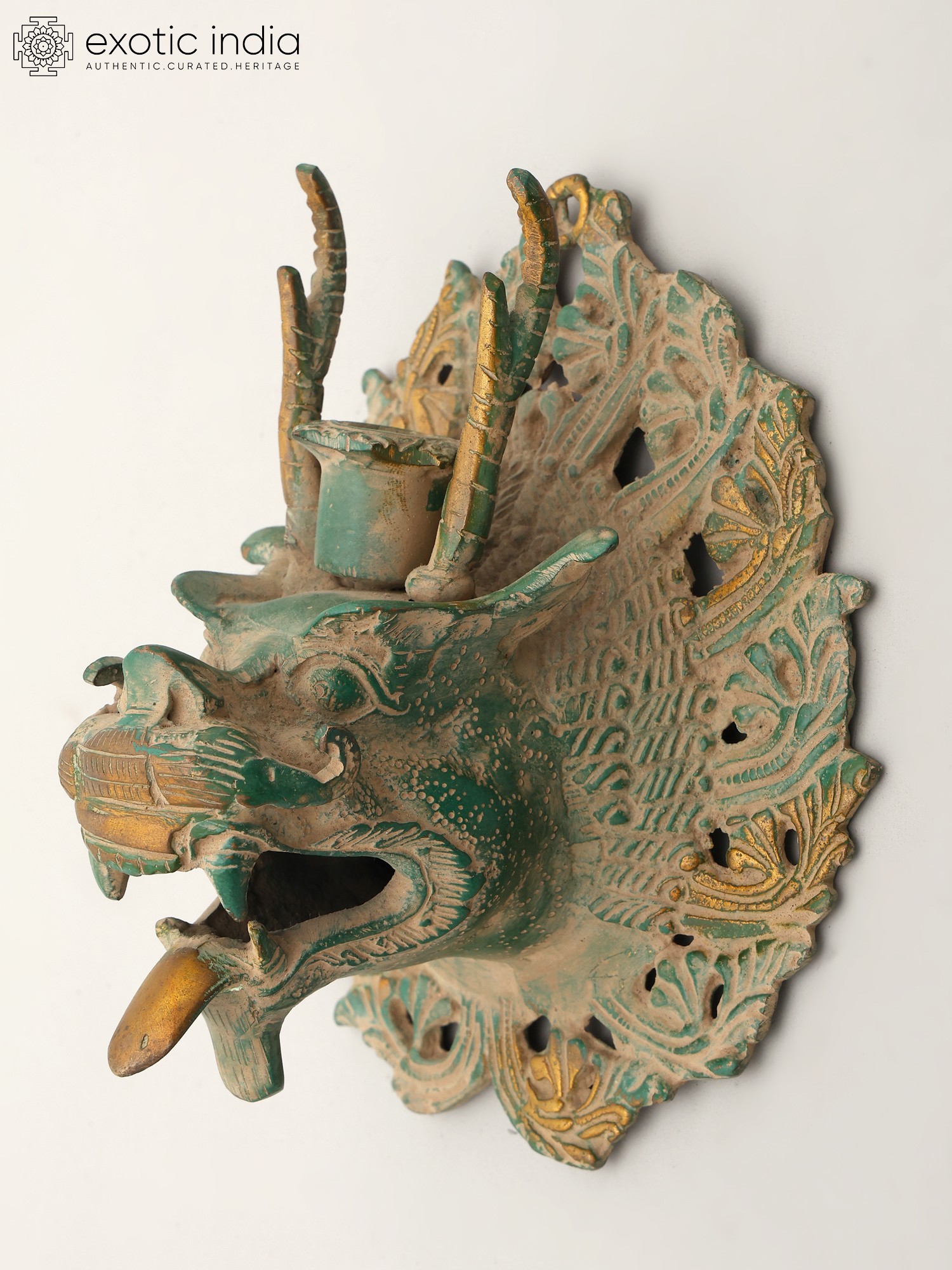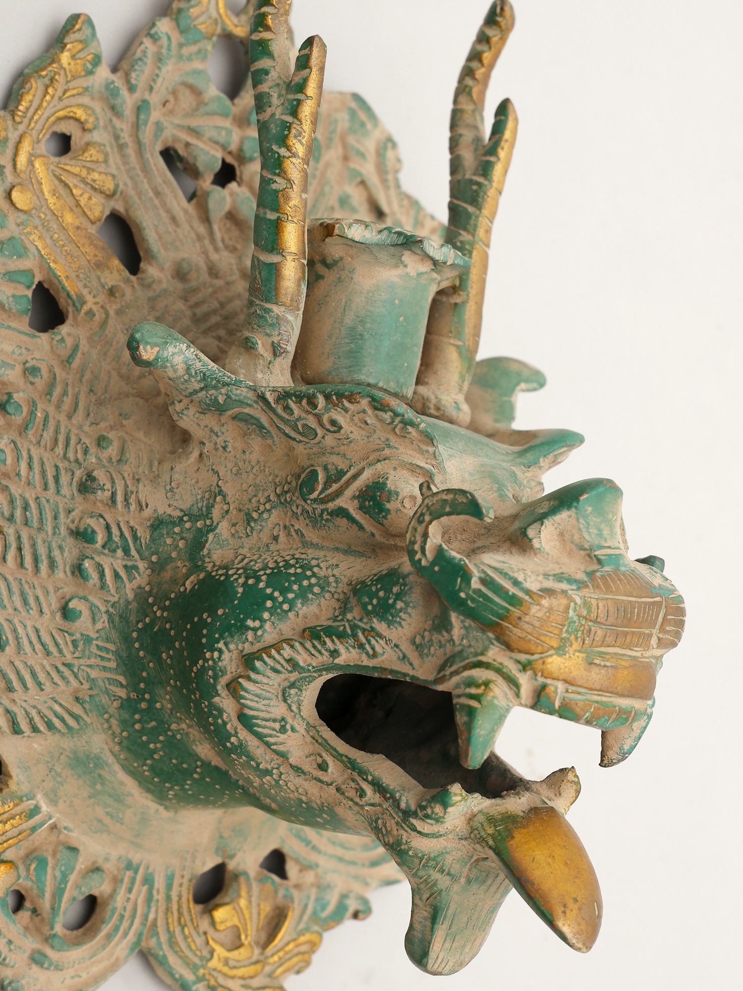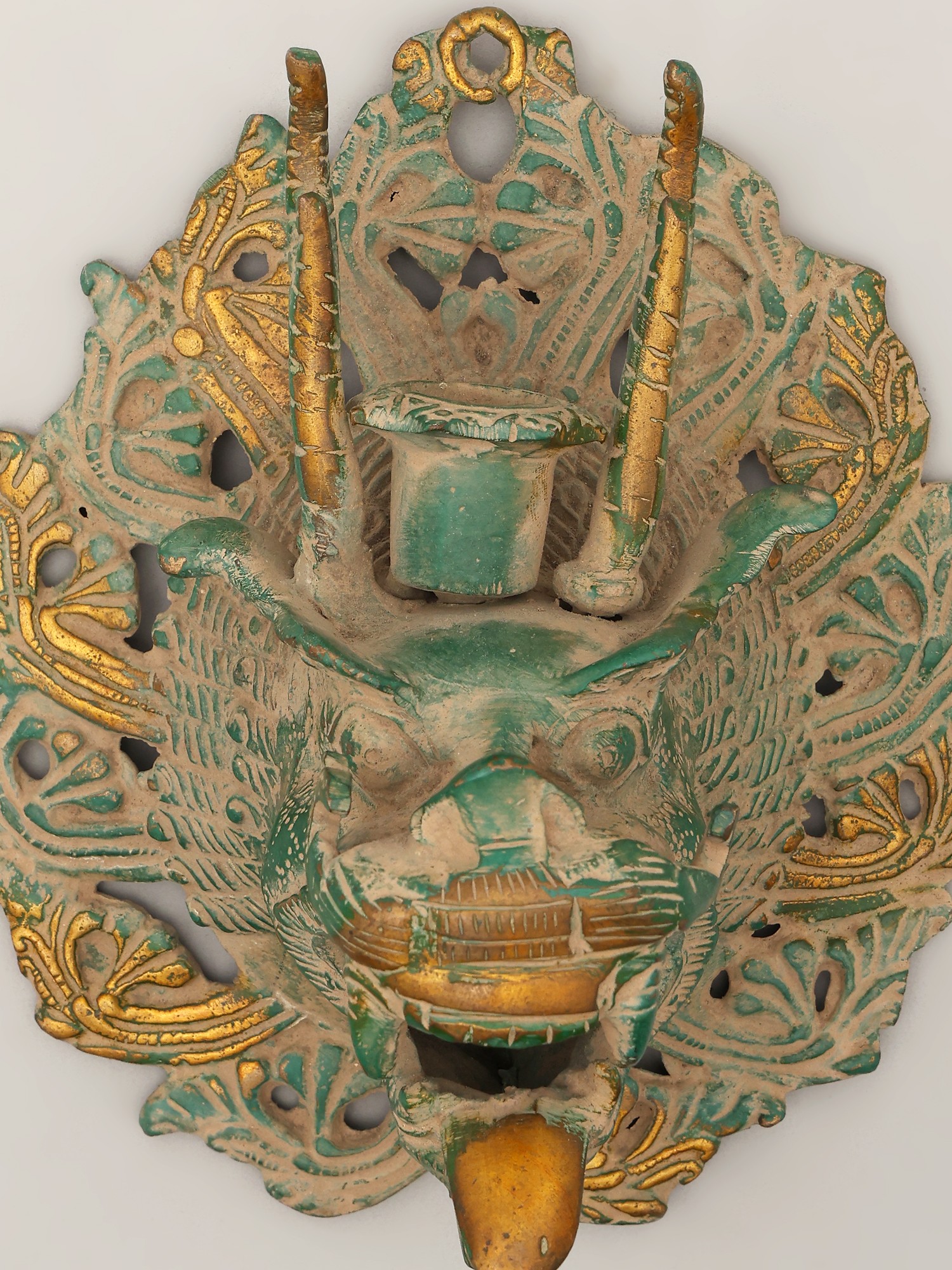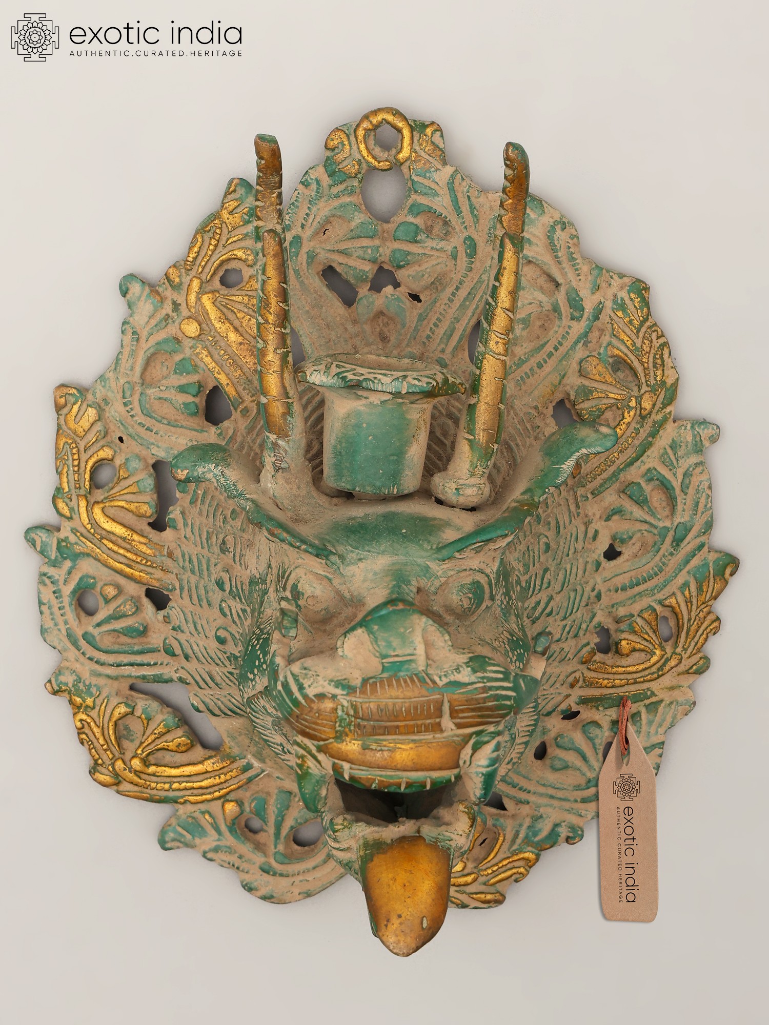 8" Brass Goddess Durga Mask with Fish Shaped Earrings | Wall Hanging
