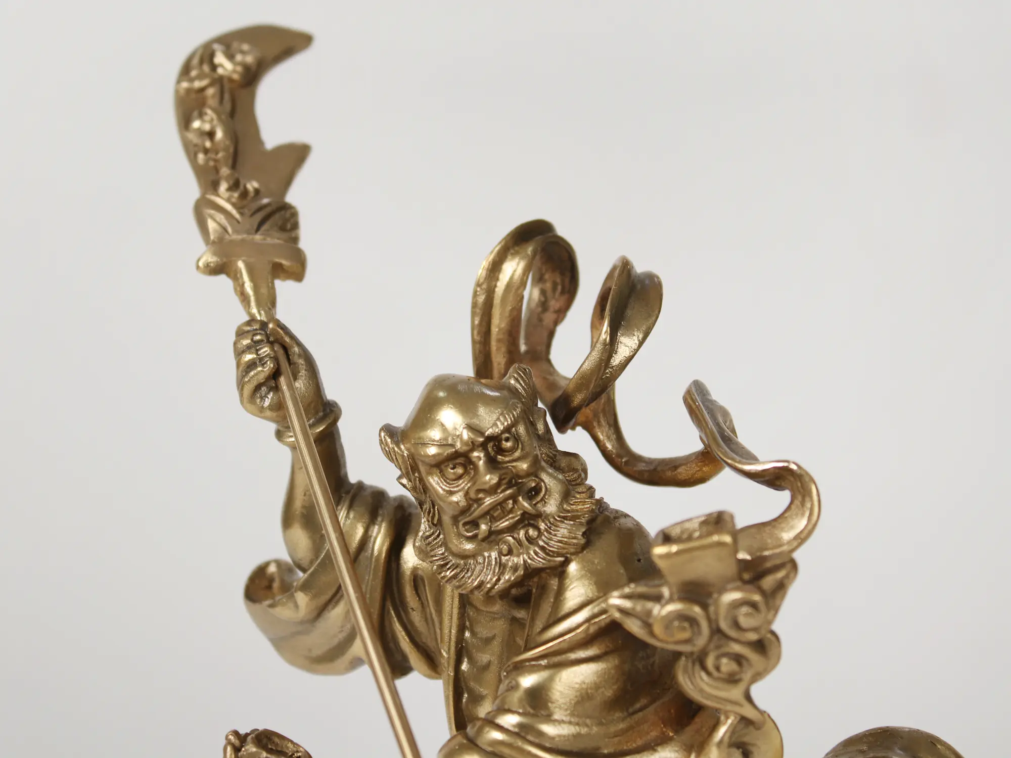 Kui Xing's legendary journey began with a tragic rejection. In tales passed down through generations, Kui Xing, a physically deformed but intellectually brilliant scholar, was denied his rightful place in the imperial examinations due to his appearance. In a fit of despair, he threw himself into the sea, only to be transformed by heavenly intervention into a celestial being. He was granted the task of overseeing the civil service examinations, ensuring fairness and rewarding merit. His distinctive appearance, often portrayed with a hunchback and an untamed beard, signifies his triumph over adversity and his unique position in the celestial bureaucracy. This figurine, with its robust bronze casting, captures the raw power and determination that propelled him to his divine status, serving as an inspiration to all who face challenges in their pursuit of excellence.