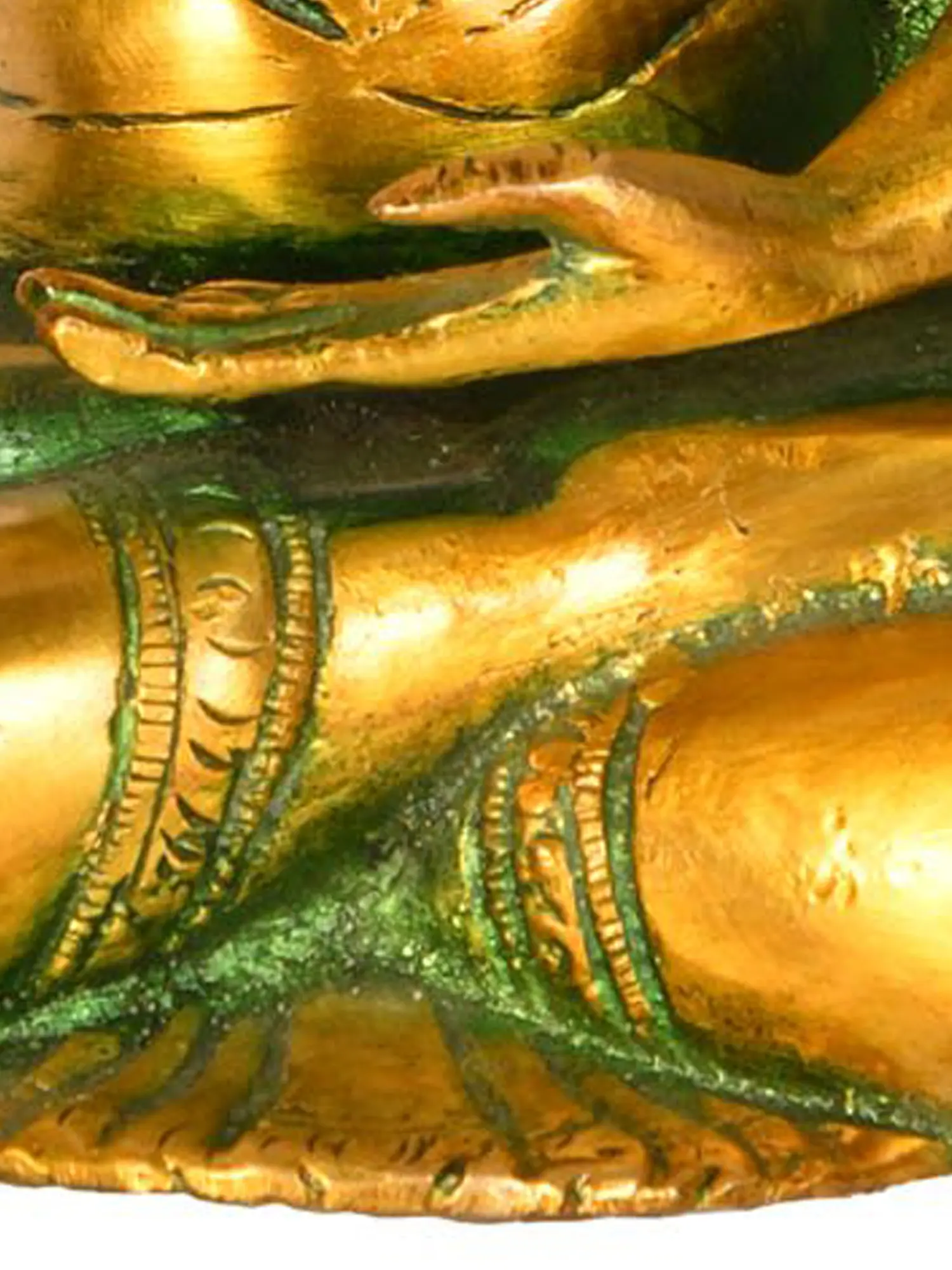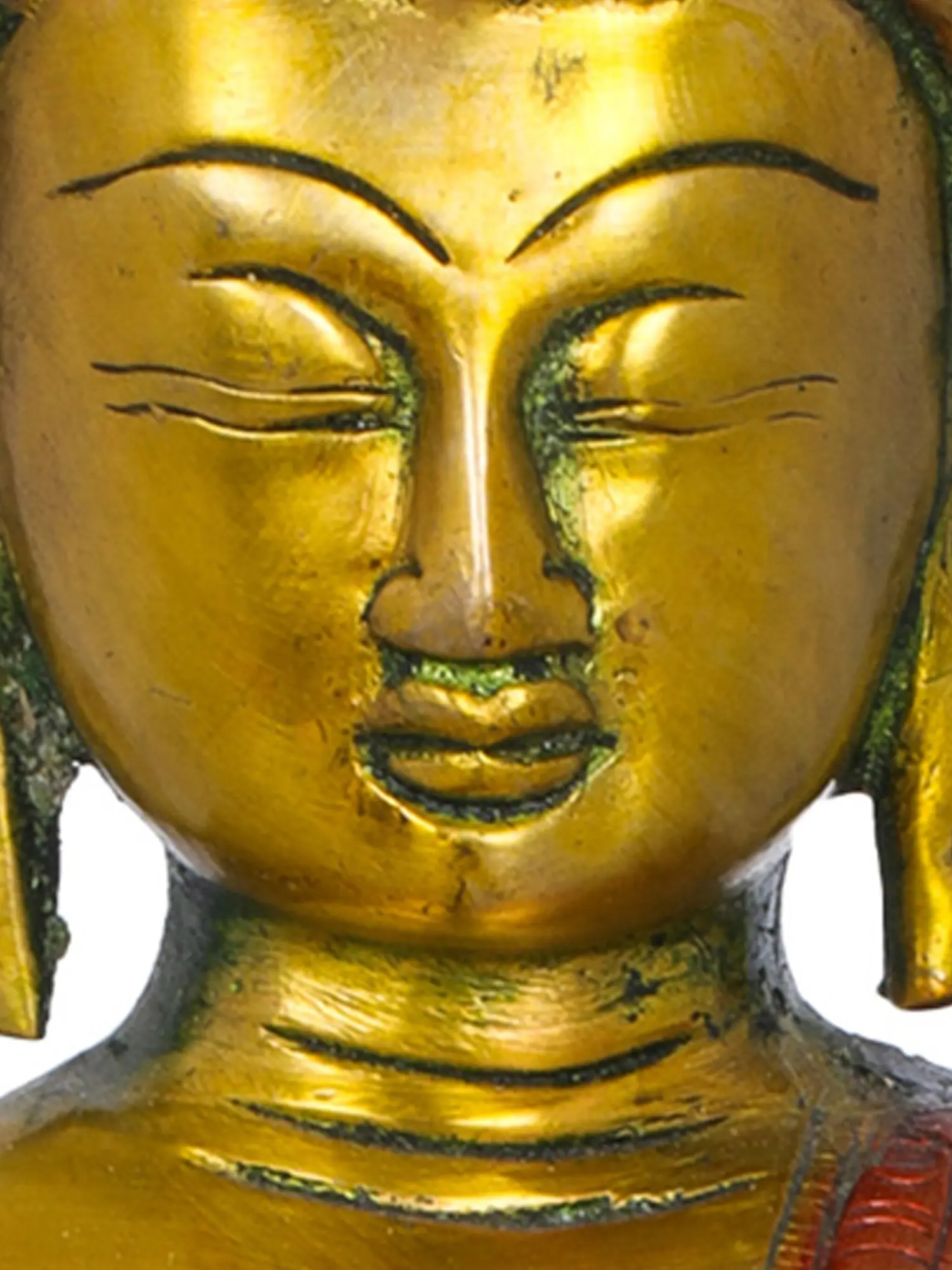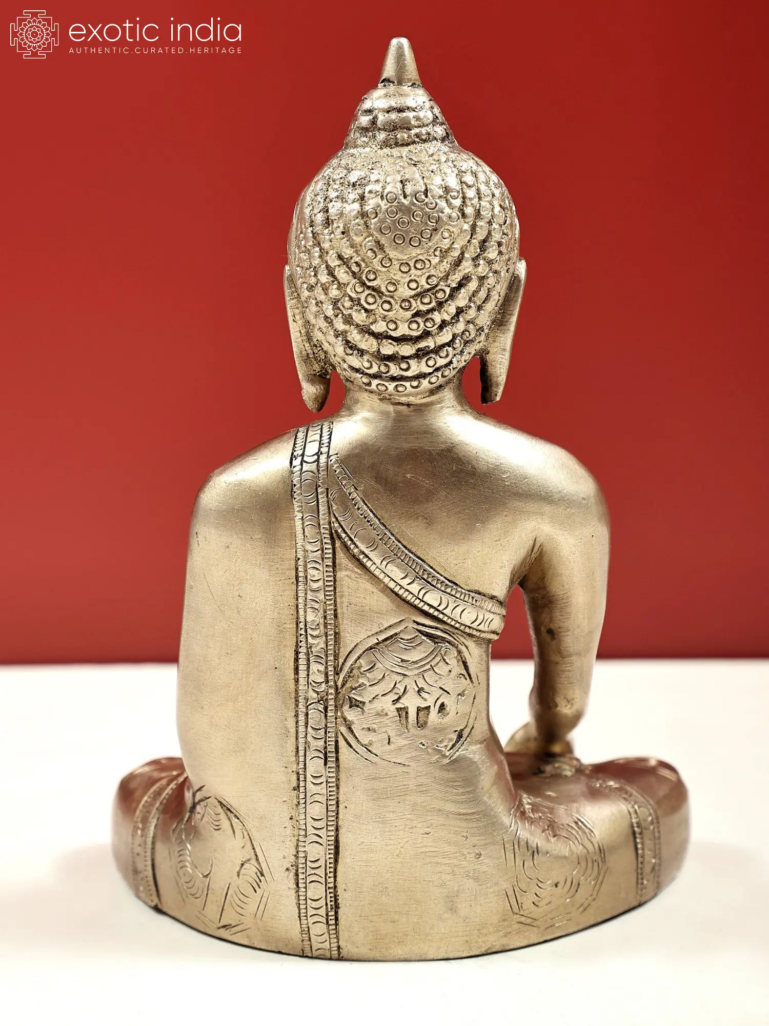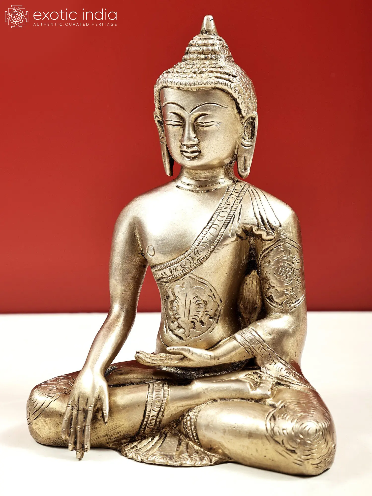 Crafted with meticulous attention to detail by skilled artisans in India, this statue embodies the rich artistic heritage of the subcontinent. The gleaming brass not only lends a timeless elegance to the piece but also holds symbolic meaning in many cultures, often associated with purity, prosperity, and divine energy. The serene facial expression, with its closed eyes and gentle smile, conveys a deep sense of peace and wisdom. The intricate carving of the monastic robe, adorned with delicate patterns, speaks to the craftsmanship and dedication involved in its creation. The posture, seated in a meditative cross-legged position, further enhances the aura of tranquility and focus. ––––––––––––––––––