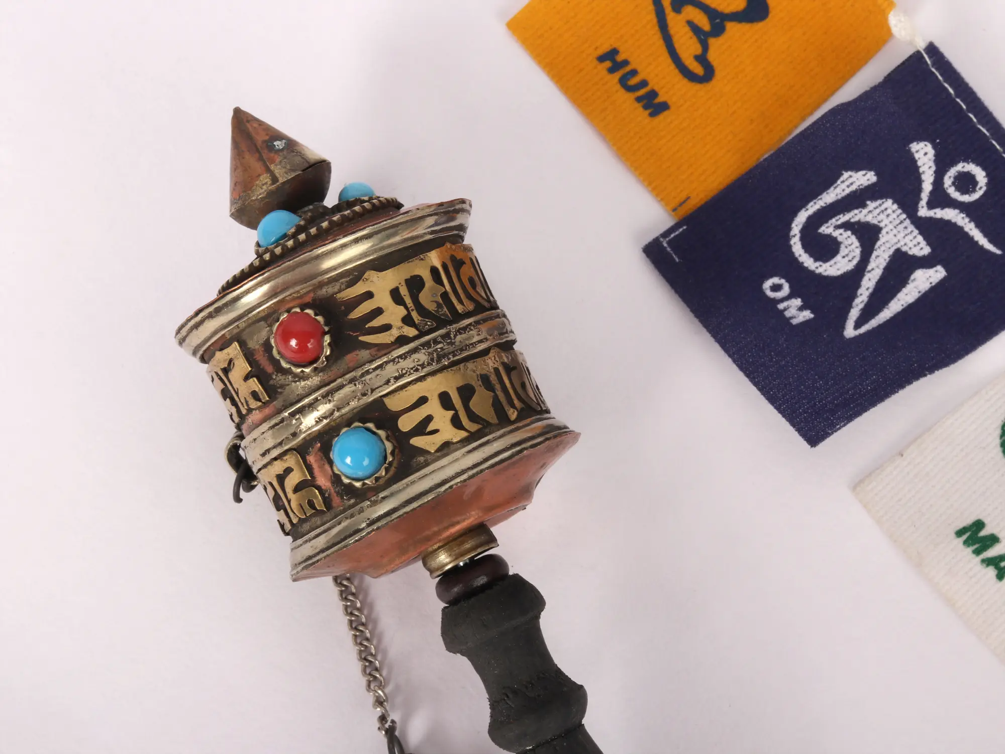 Within the heart of the prayer wheel resides a scroll, typically inscribed with the sacred mantra "Om Mani Padme Hum." This mantra, a cornerstone of Mahayana Buddhism, is believed to embody the essence of all Buddhist teachings. Each turn of the wheel is said to multiply the merit generated by reciting this mantra countless times. The mantra itself is a profound expression of compassion, wisdom, and the inseparability of the lotus (representing purity and enlightenment) and the jewel (representing the attainment of Buddhahood). It is said that when the Buddha’s teachings first spread from India to Tibet, the practice of turning prayer wheels became an integral part of devotional life, allowing practitioners to accumulate merit even when unable to perform extensive rituals.