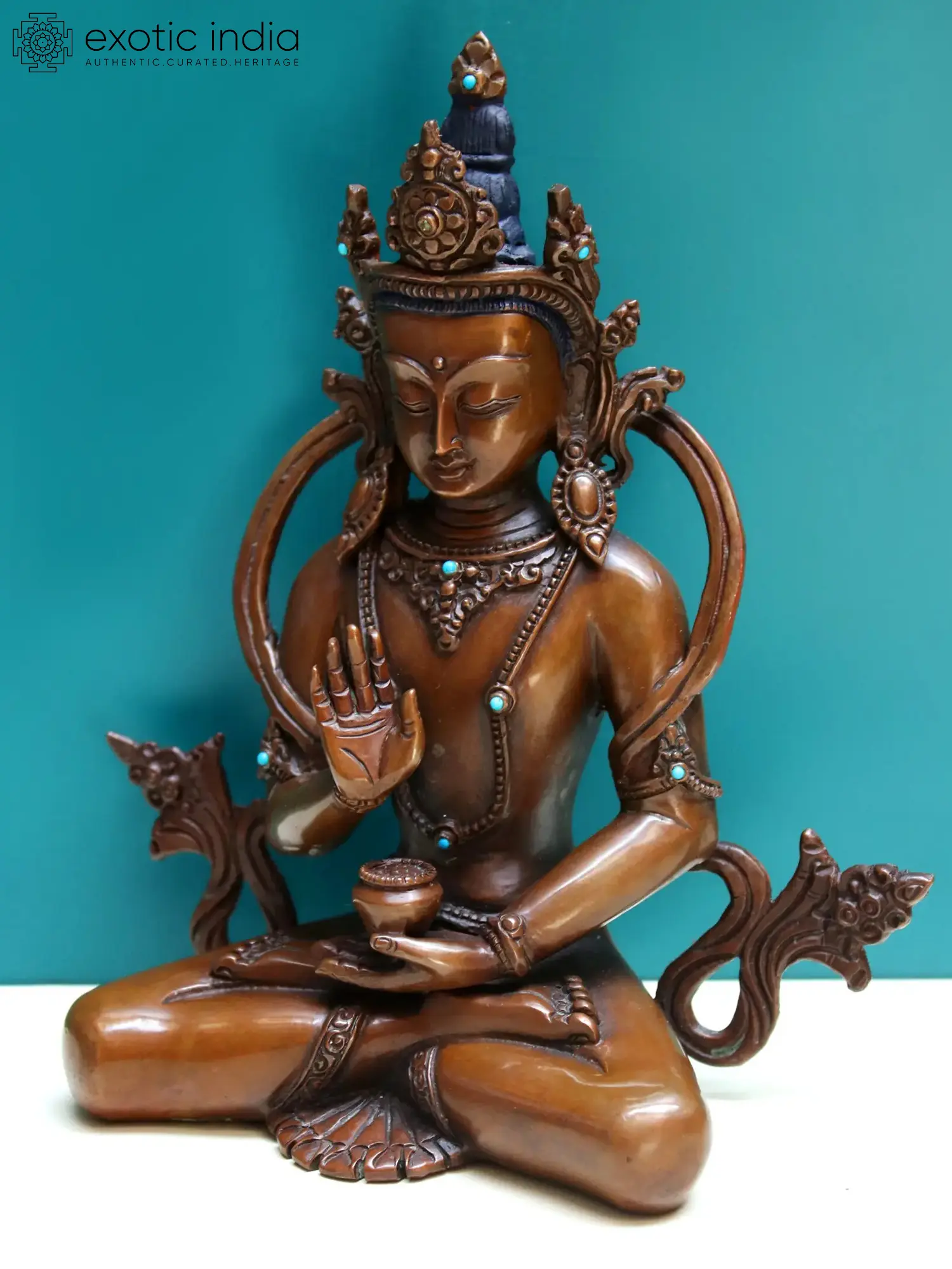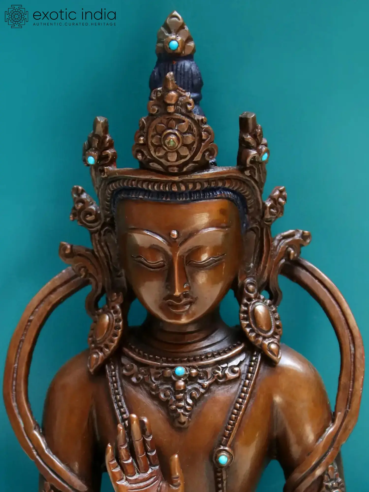 14" Crowned Buddha Statue from Nepal | Nepalese Copper Statue