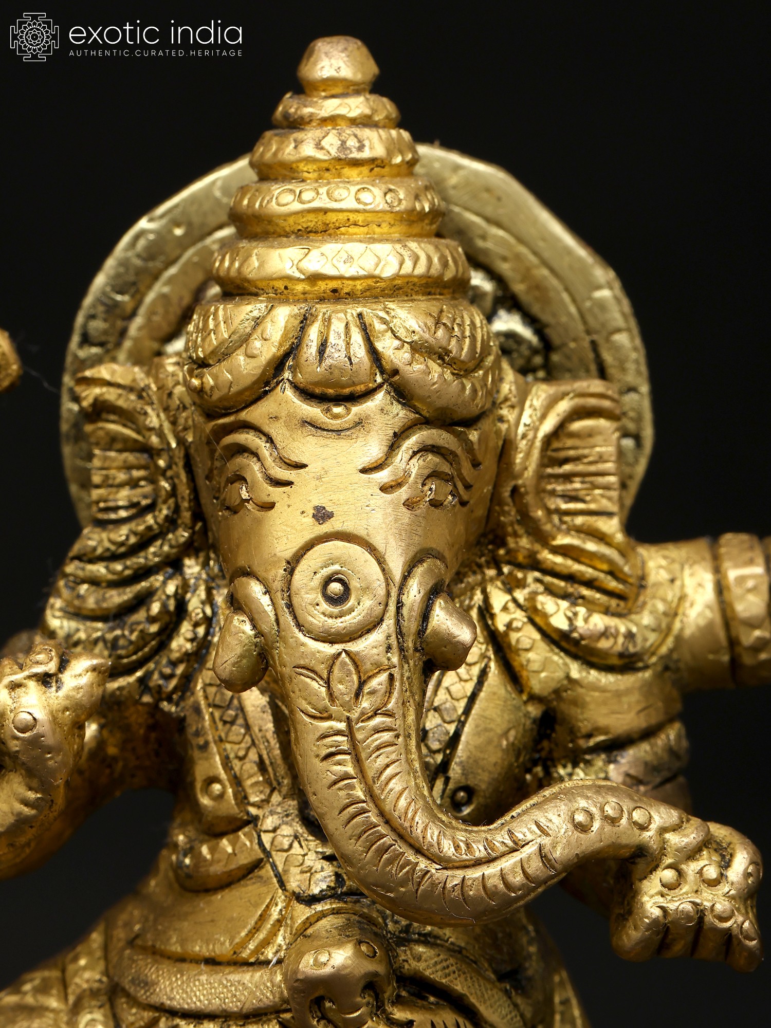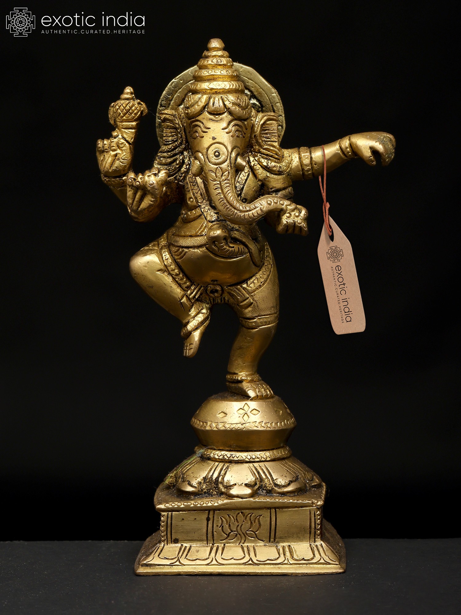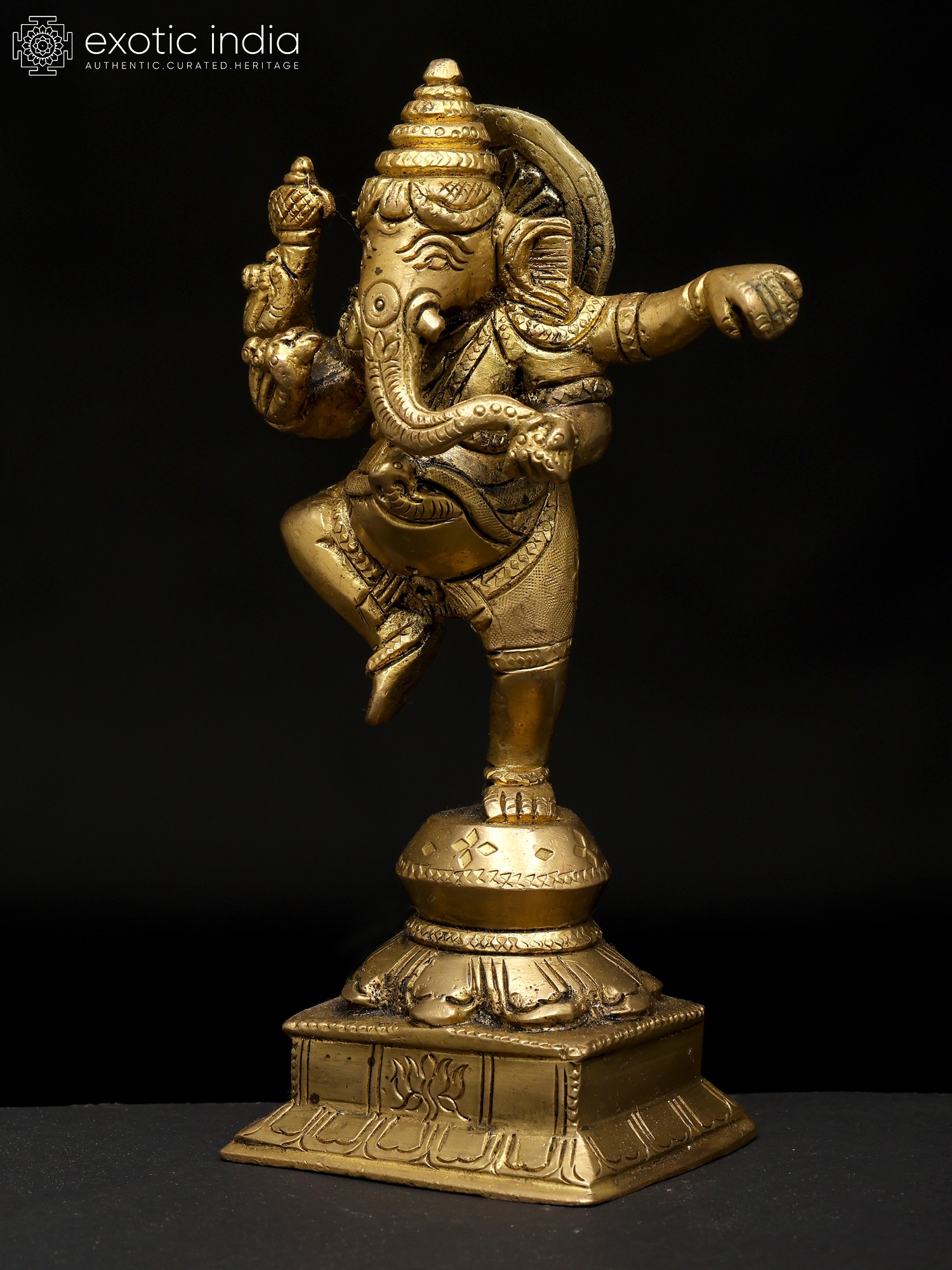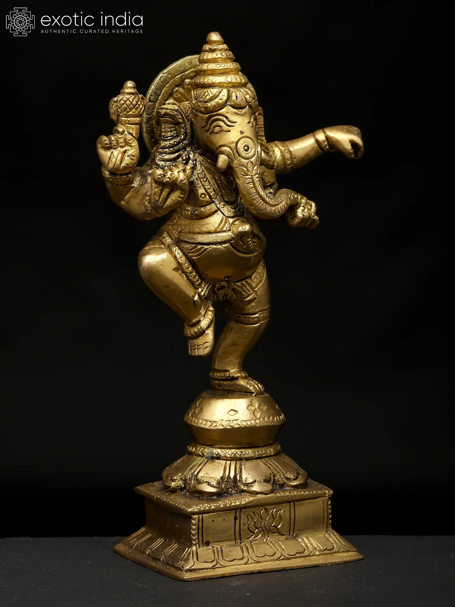 9" Dancing Ganesha Brass Sculpture | Handmade | Made in India