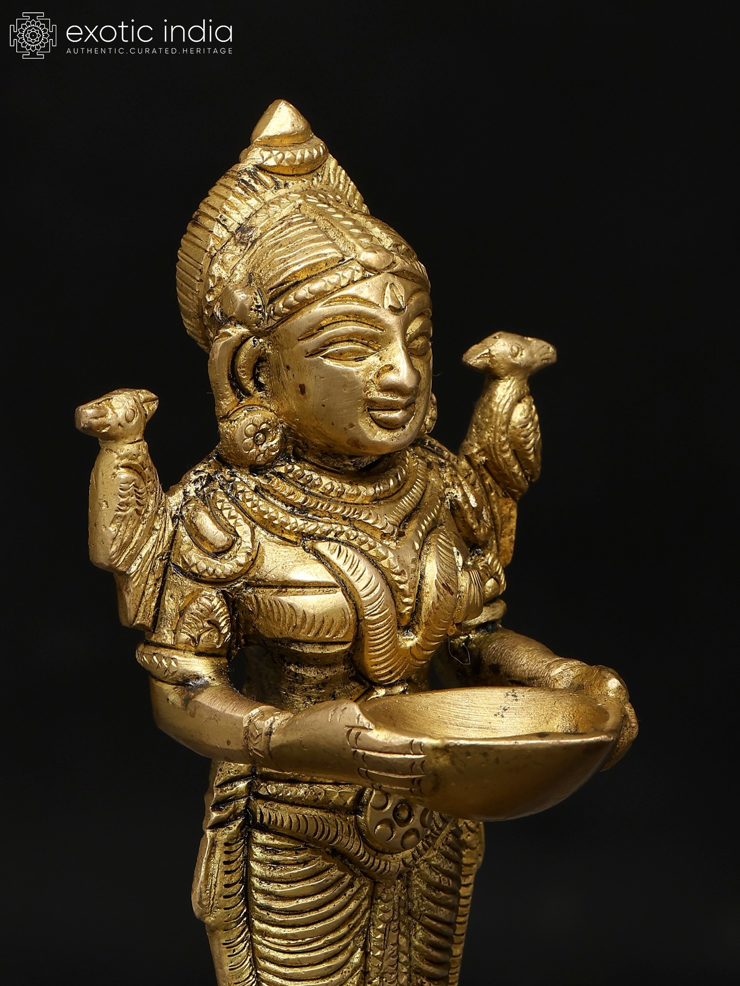 14" Pair of Deep Lakshmi Brass Statues with Inlay Work
