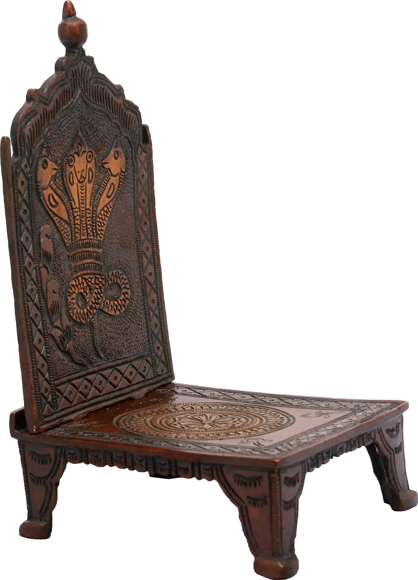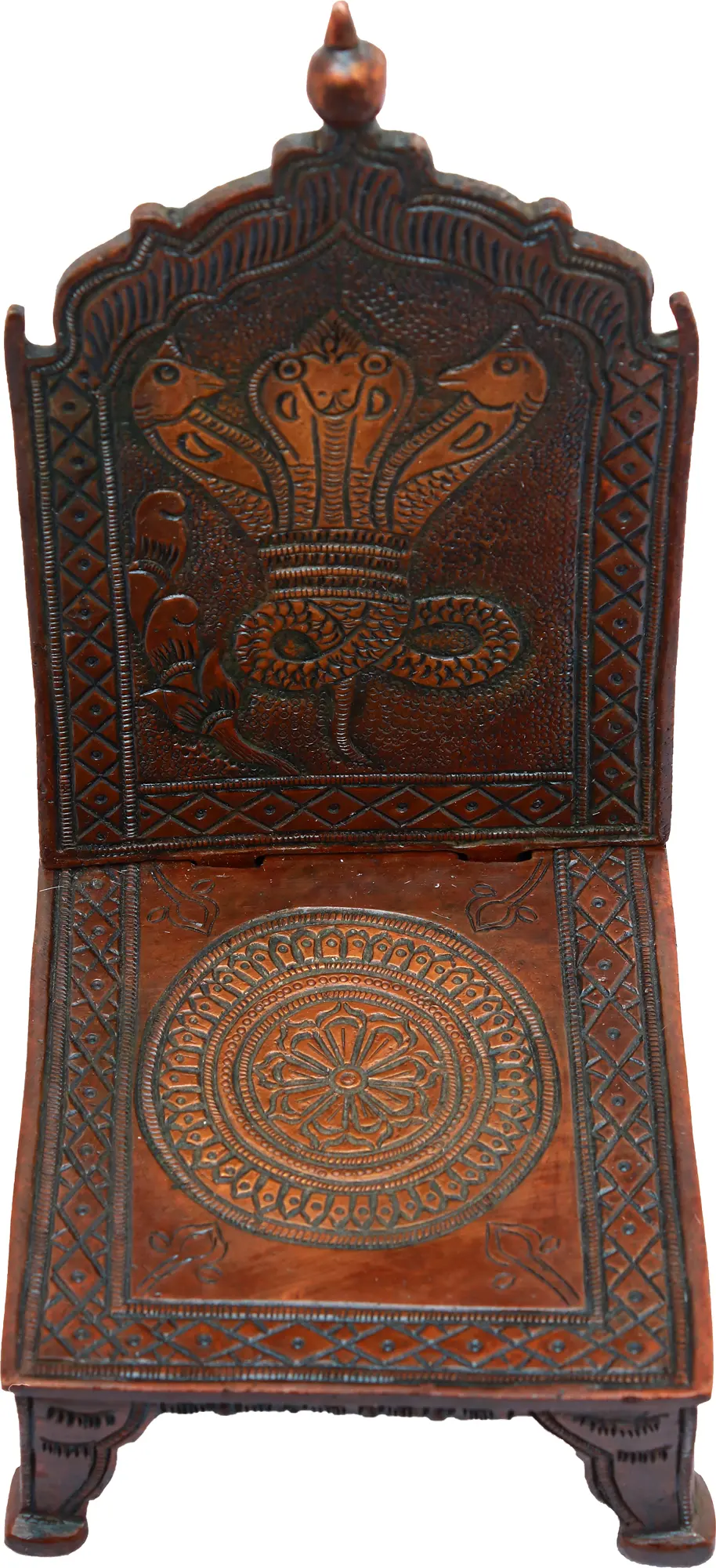 This Deity Throne with Naga Design is more than just a seat; it's a symbol of divinity and connection. Handmade with love in India, it represents the celestial serpent Naga, a guardian of treasures and wisdom. Placing your deity on this throne signifies their elevated status and the sacred bond you share. Let it remind you of the interconnectedness of all beings and the wisdom that flows through your spiritual journey.