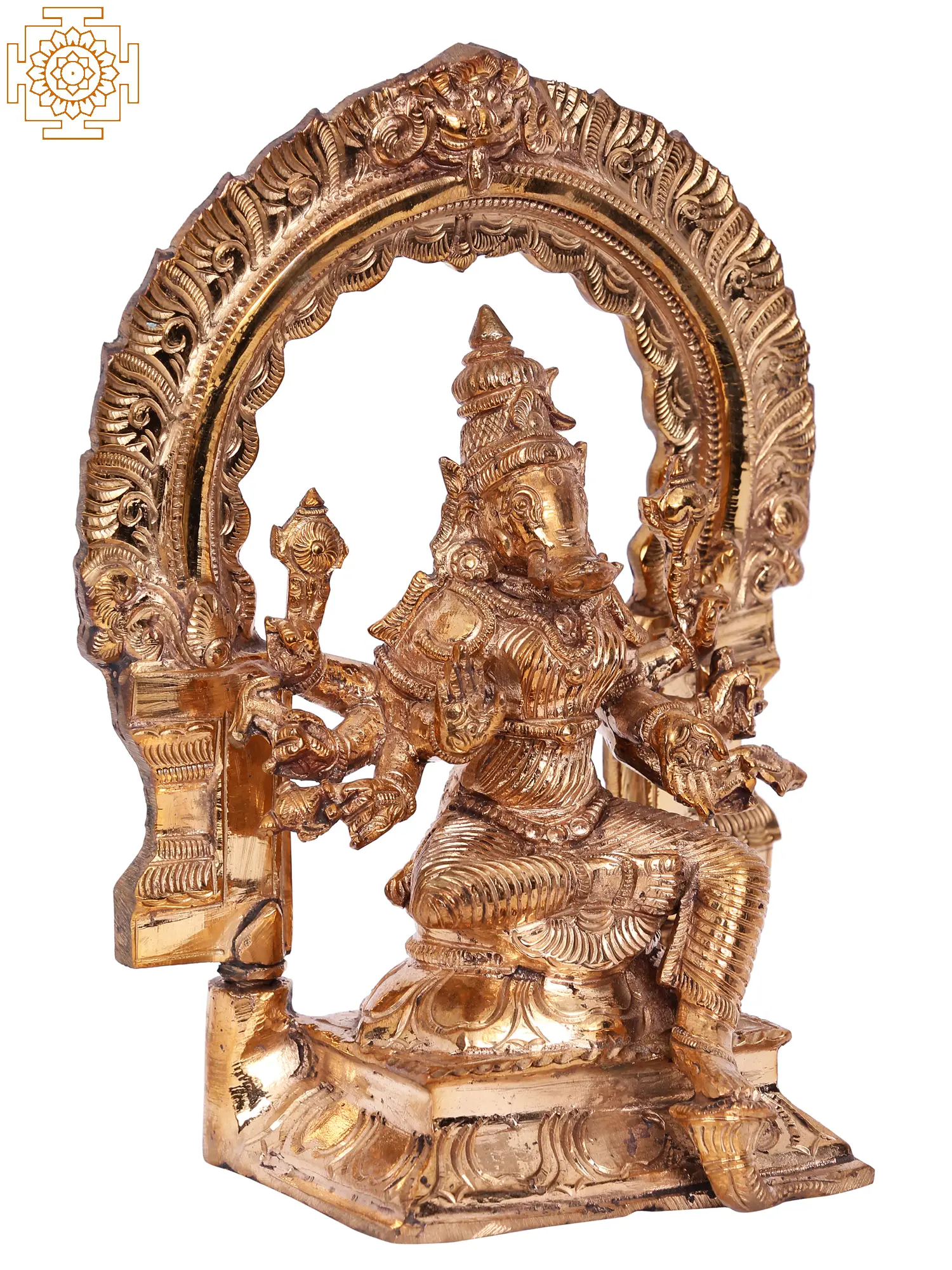 5" Blessing Goddess Varahi Seated on Kirtimukha Throne | Bronze Statue