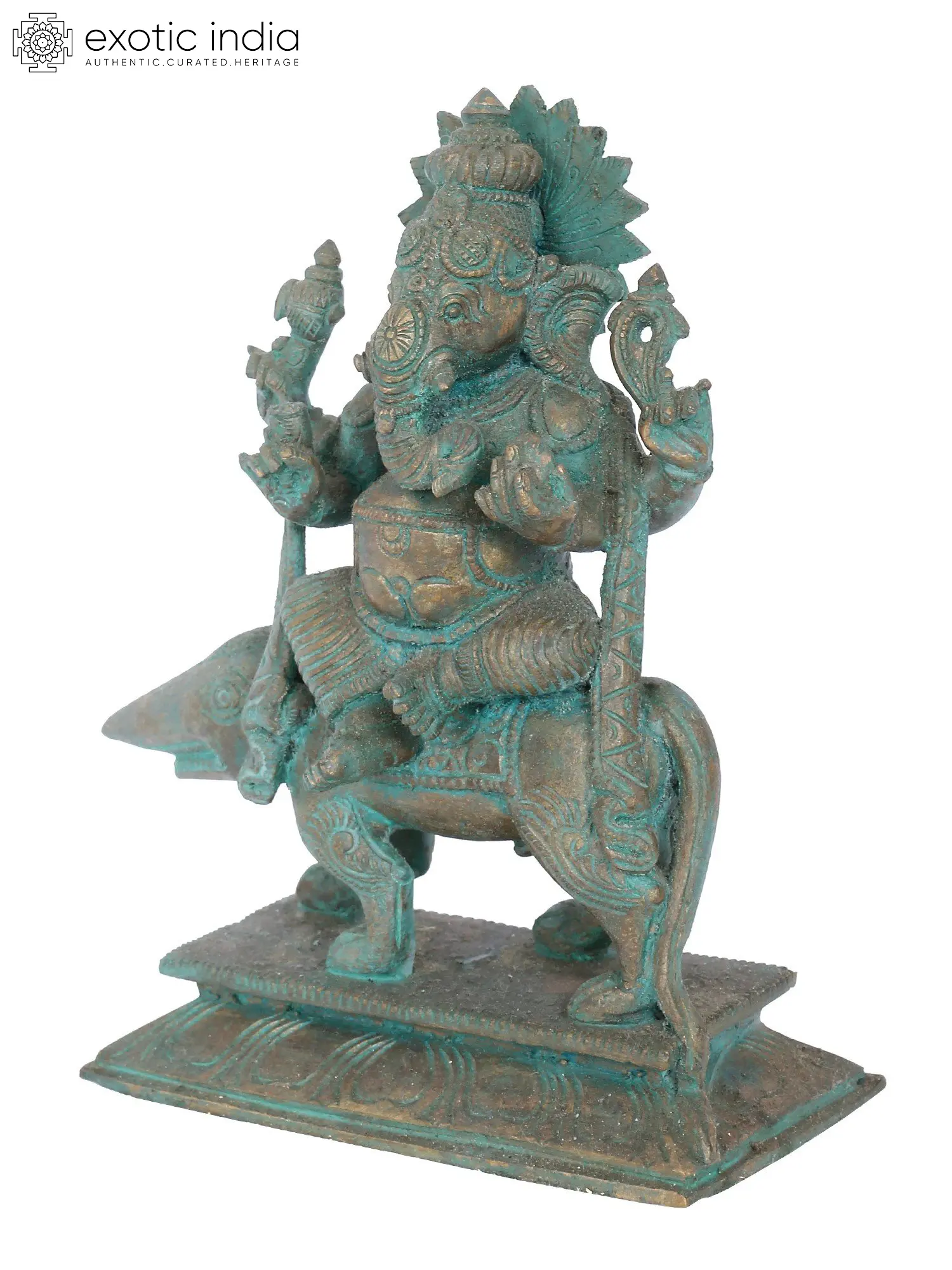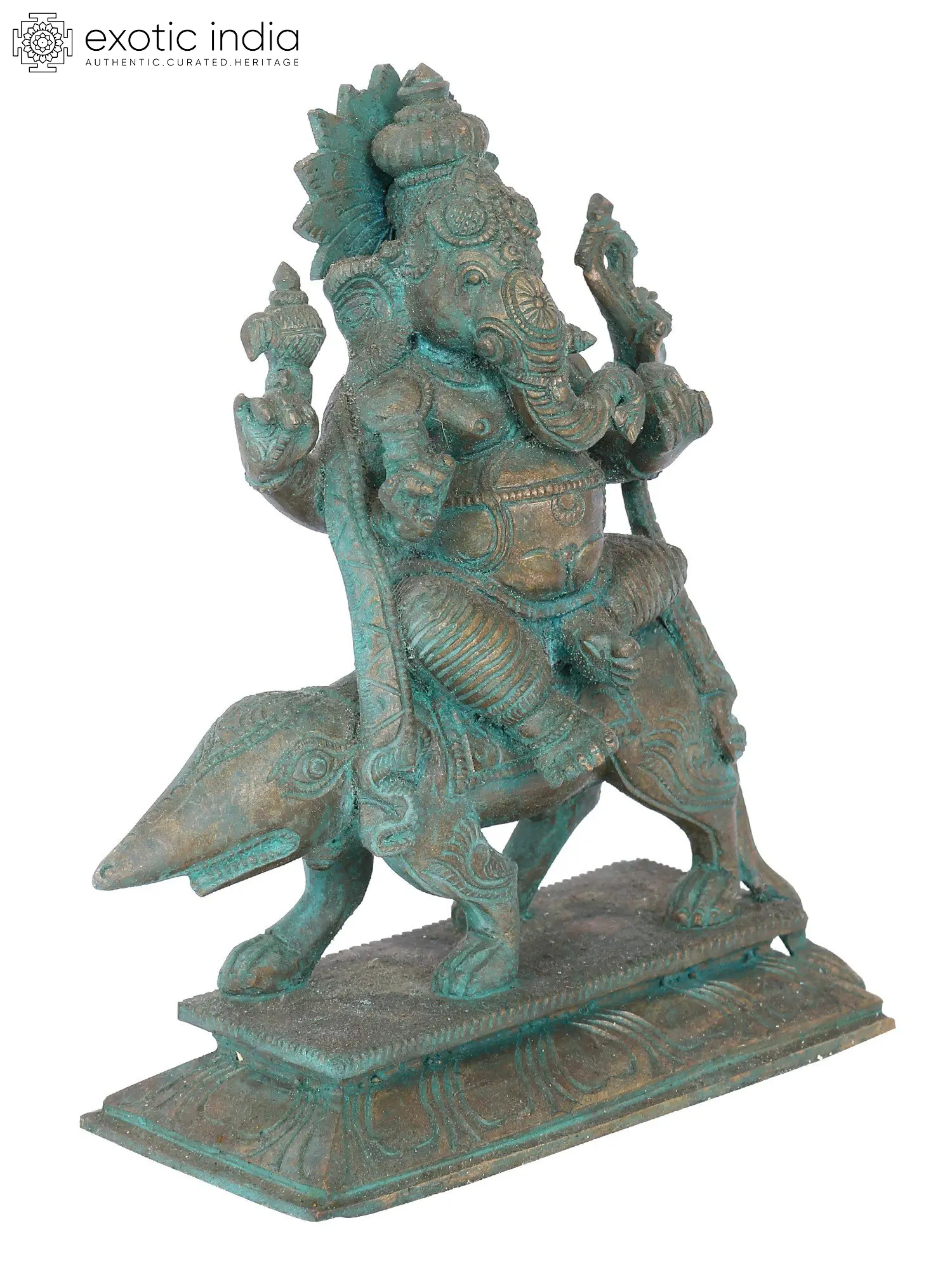 Delve into the essence of the primordial sound with Ekakshara Ganapati, a profound sculpture meticulously crafted through Madhuchista Vidhana in the revered Panchaloha Bronze from Swamimalai. "Ekakshara" symbolizes the one-syllable cosmic sound, inviting devotees to connect with the divine vibrations reverberating through the universe. Lord Ganapati is considered the seventeenth of the thirty-two manifestations of Ganapati. "Ekam" or "Eka" means “one," and "Akshara" means "the letter." As a result, Eka Akshara denotes a single syllable and stands for the Beejakshara, sometimes referred to as the "seed letter" or "Gam."