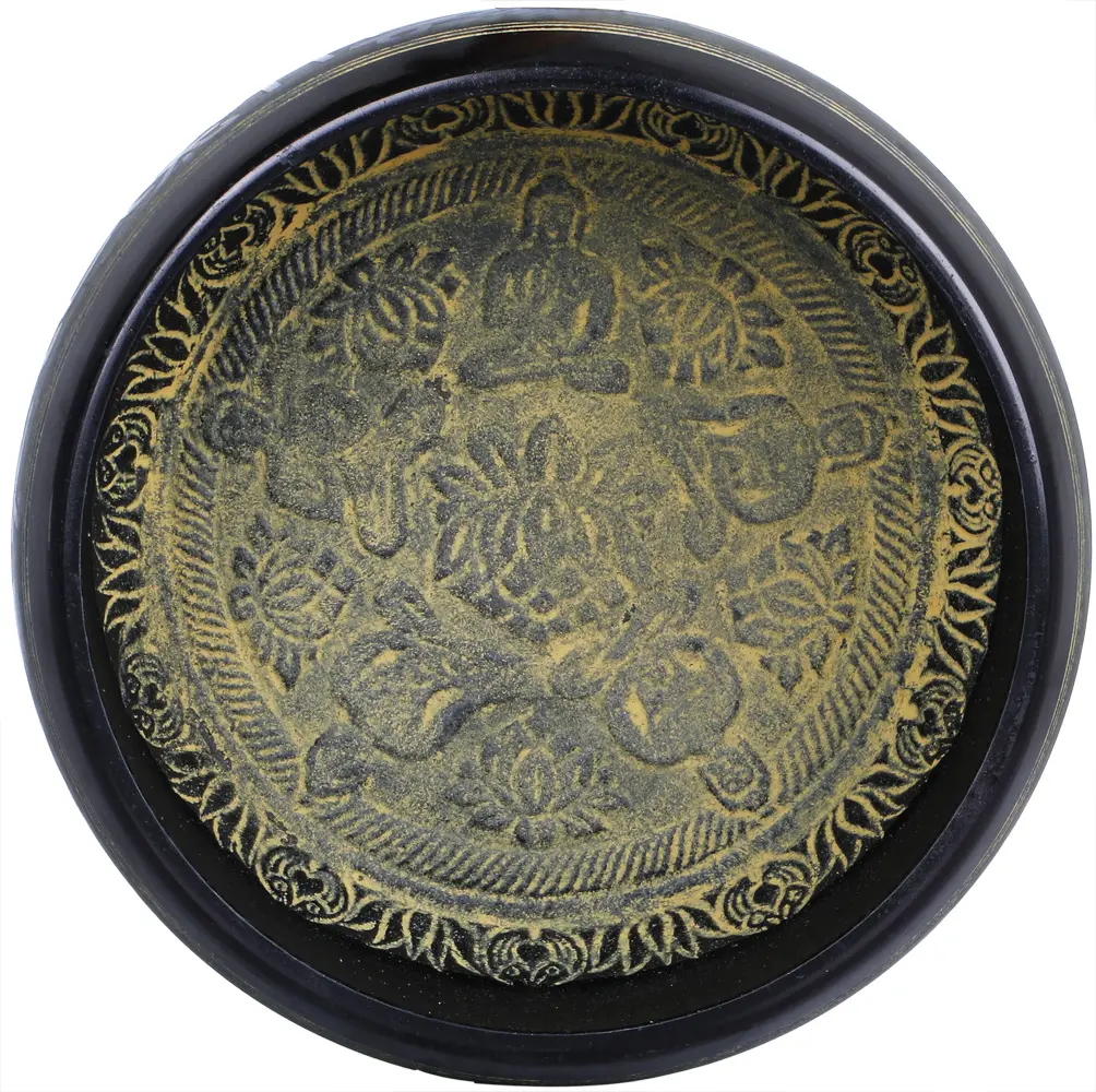 The presence of the Five Dhyani Buddhas, also known as the Five Tathagatas, on this singing bowl imbues it with an aura of cosmic balance and enlightened awareness. Each Dhyani Buddha represents a fundamental aspect of Buddhahood and a corresponding element. Vairochana embodies the wisdom of the Dharma-Dhatu and the element of space; Akshobhya represents the wisdom of mirroring and the element of water; Ratnasambhava signifies the wisdom of equanimity and the element of earth; Amitabha embodies the wisdom of discernment and the element of fire; and Amoghasiddhi represents the wisdom of accomplishment and the element of air. Their collective presence symbolizes the completeness of enlightenment, offering a powerful reminder of our own potential for spiritual awakening. ––––––––––––––––––––