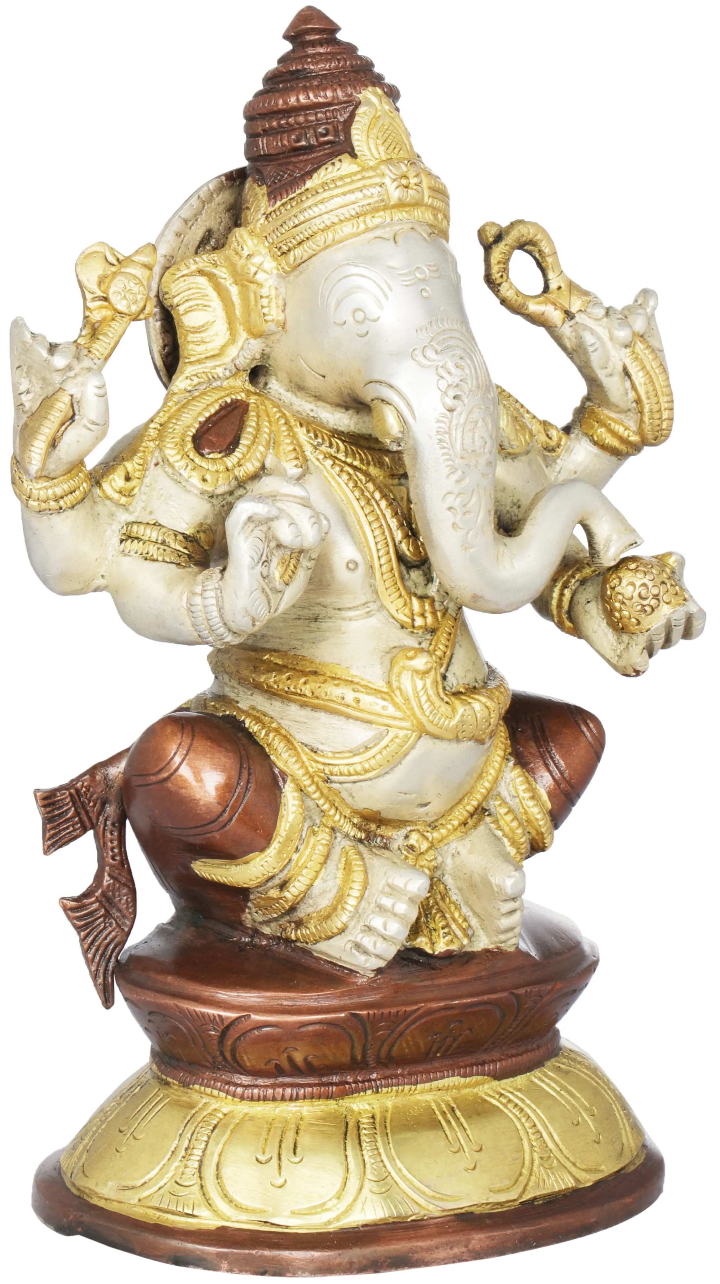 In this sculpture, Lord Ganesha sits gracefully on a double lotus pedestal, symbolizing purity and spiritual growth. Ganesha is revered as the Remover of Obstacles and the God of Beginnings. With his elephant head and a human body, Ganesha is known for his wisdom, intellect, and benevolence. He holds various symbolic attributes such as the broken tusk, which symbolizes sacrifice, and the Modaka, a sweet delicacy representing the reward of spiritual wisdom. Ganesha uses the noose to eliminate negative forces that hinder spiritual progress or success. The serpent wrapped around Ganesha’s belly represents the kundalini energy, signifying his ability to transform and transmute negative energies into positive ones. Adorn your sacred space with this brass creation, embracing Ganesha’s blessings of prosperity and success.