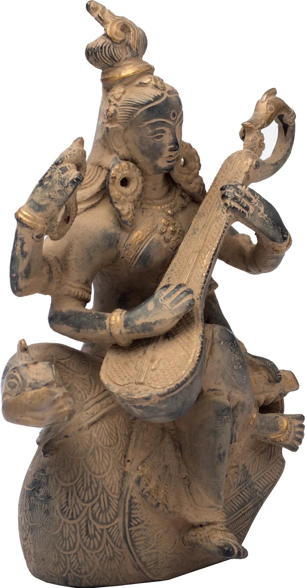 Explore the exquisite artistry of this Saraswati statue and delve into the world of Saraswati's wisdom, creativity, and spiritual depth, beautifully captured in this portrayal.