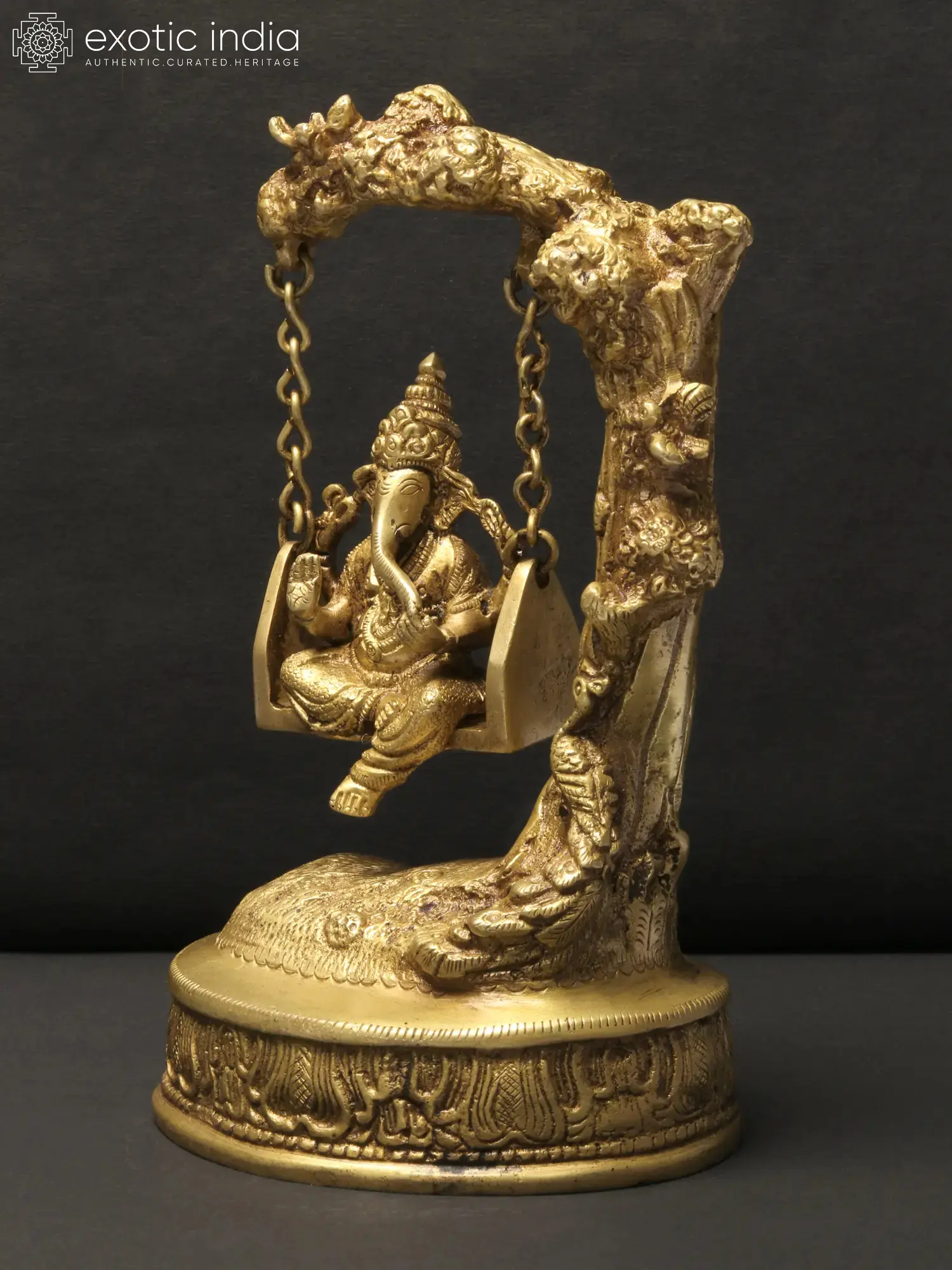 12" Lord Ganesha on a Swing In Brass | Handmade | Made In India