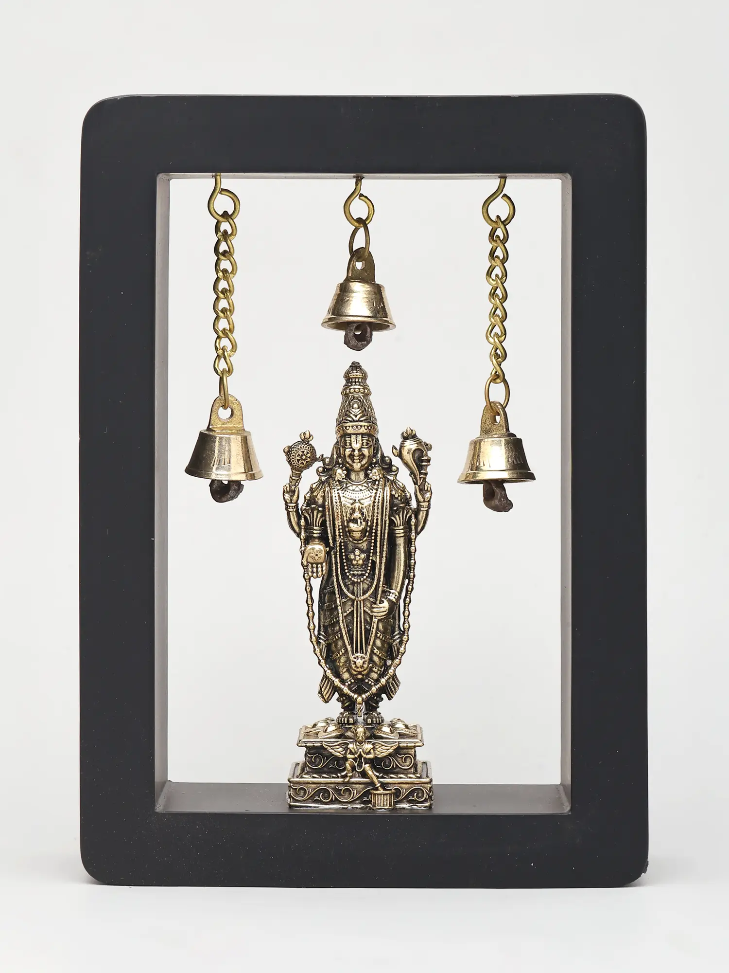 9" Lord Venkateswara with Goddess Lakshmi | Tirupati Balaji Brass Statue with Wood