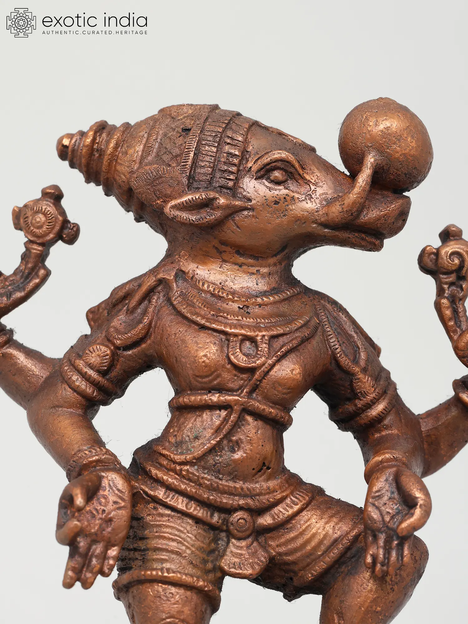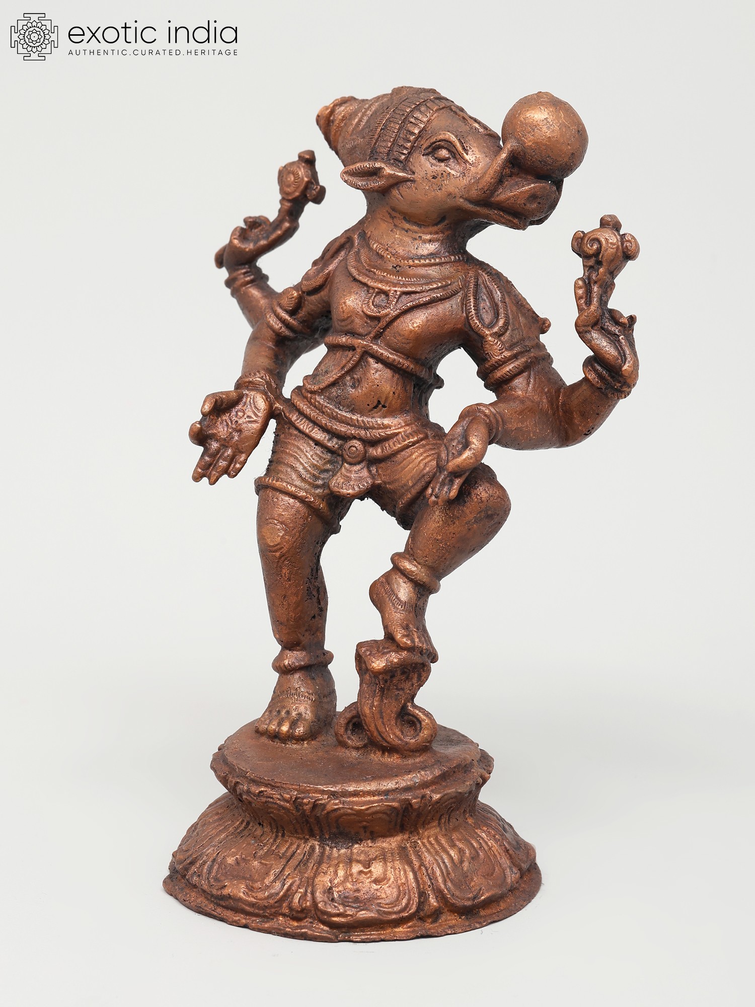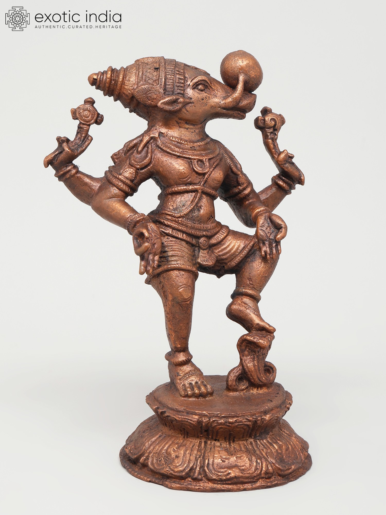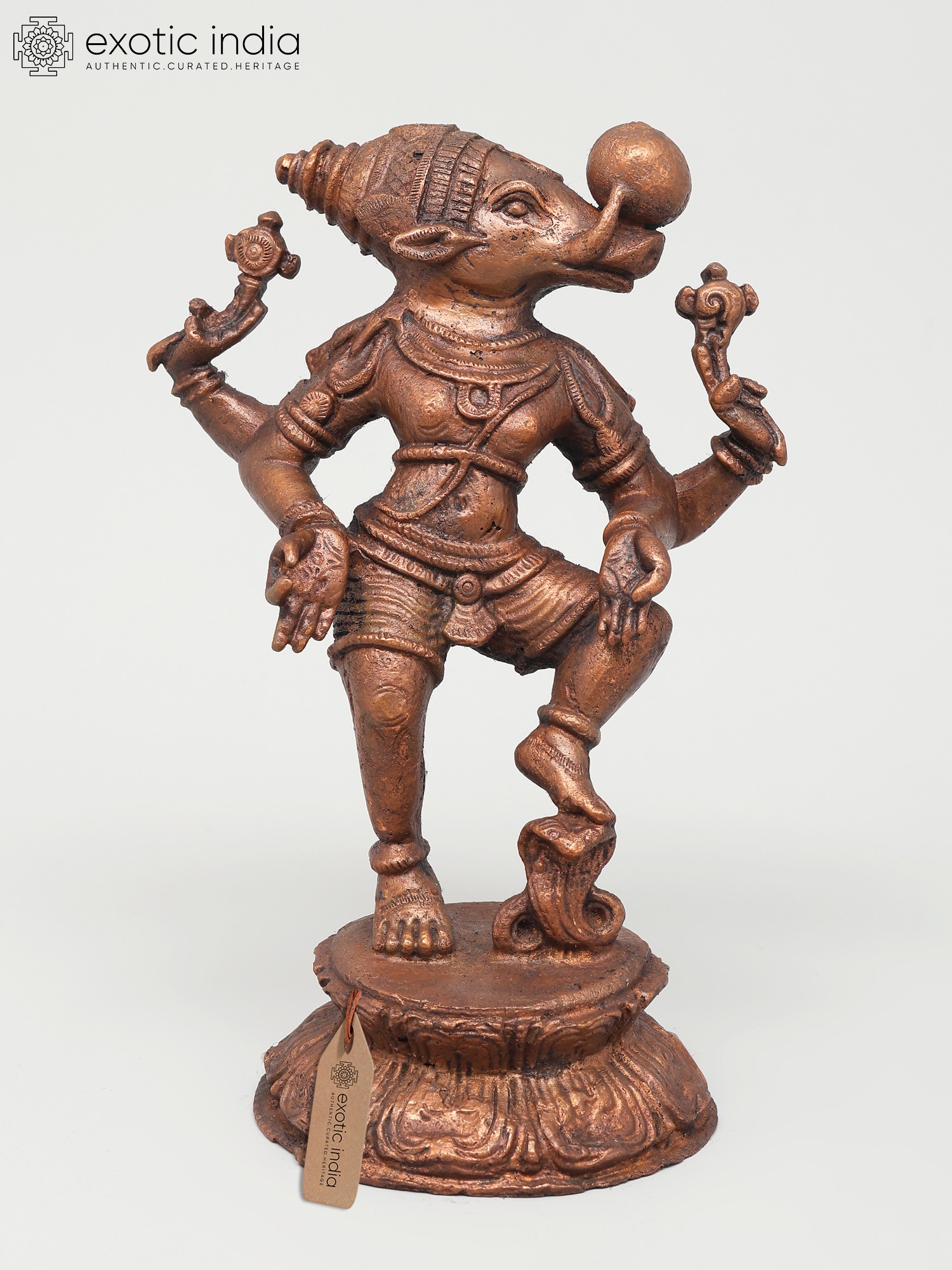6" Small Standing Lord Varaha with Protecting Naag | Copper Statue
