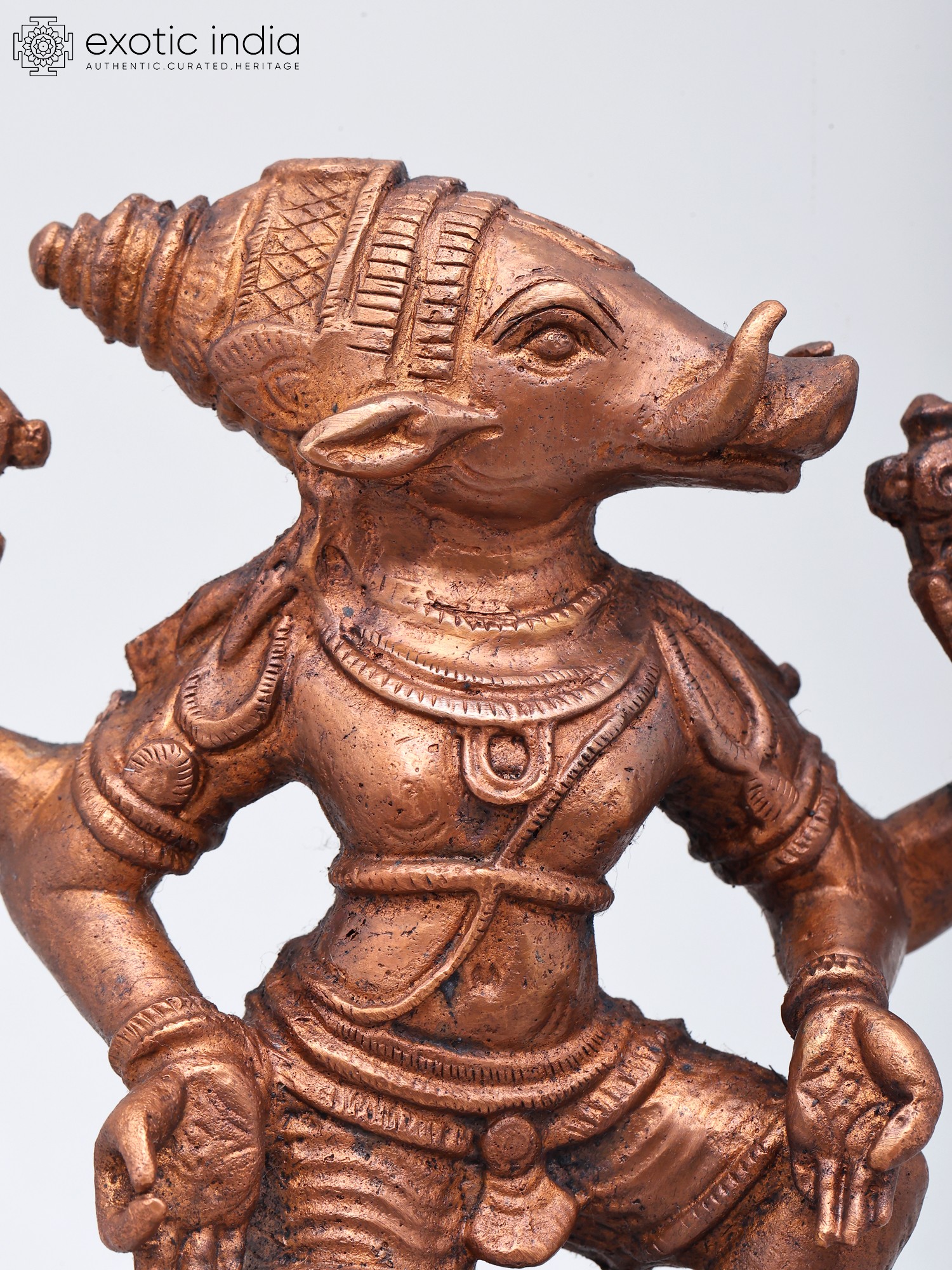5" Small Lord Varaha with Devi Lakshmi | Copper Statue