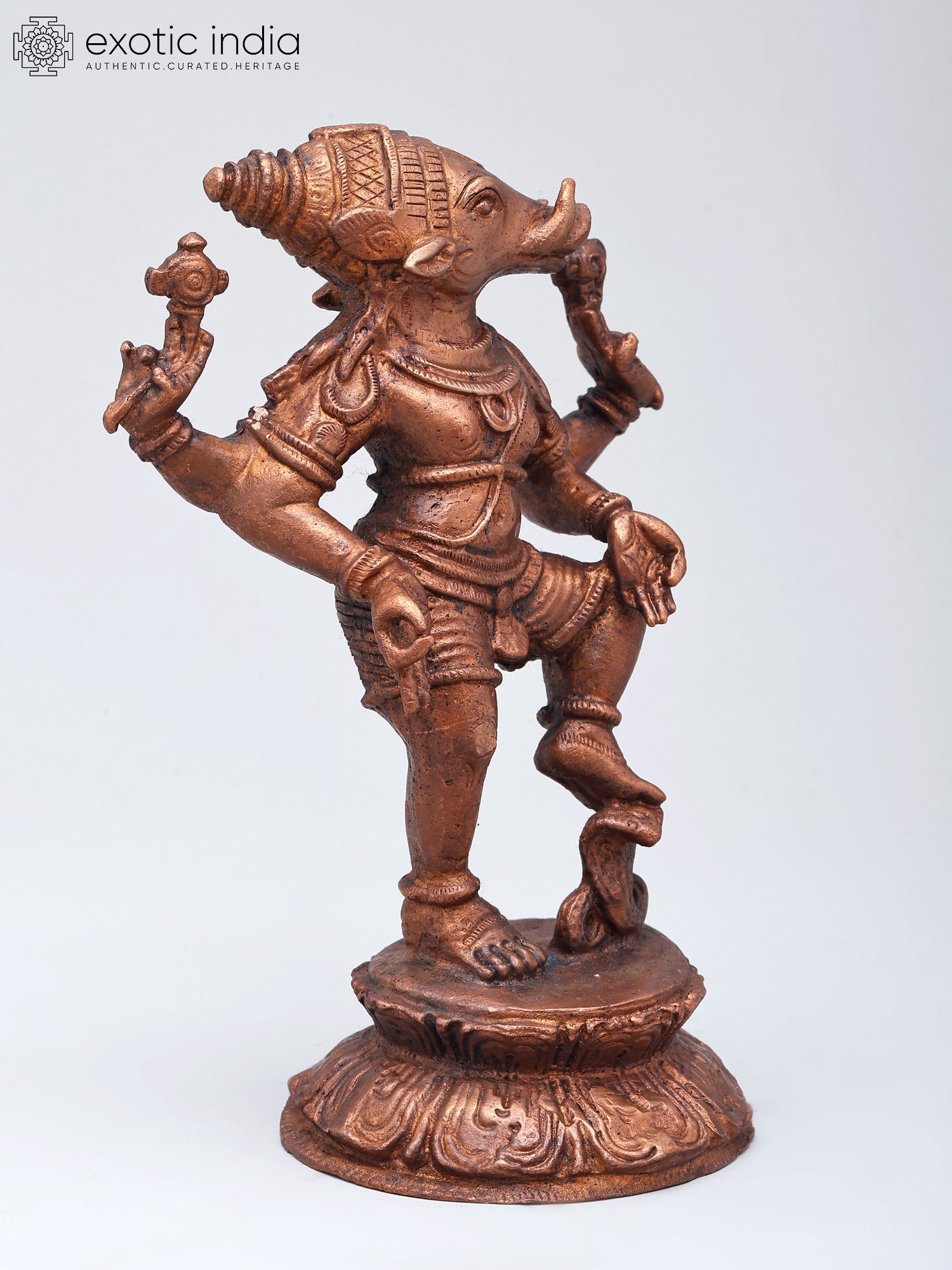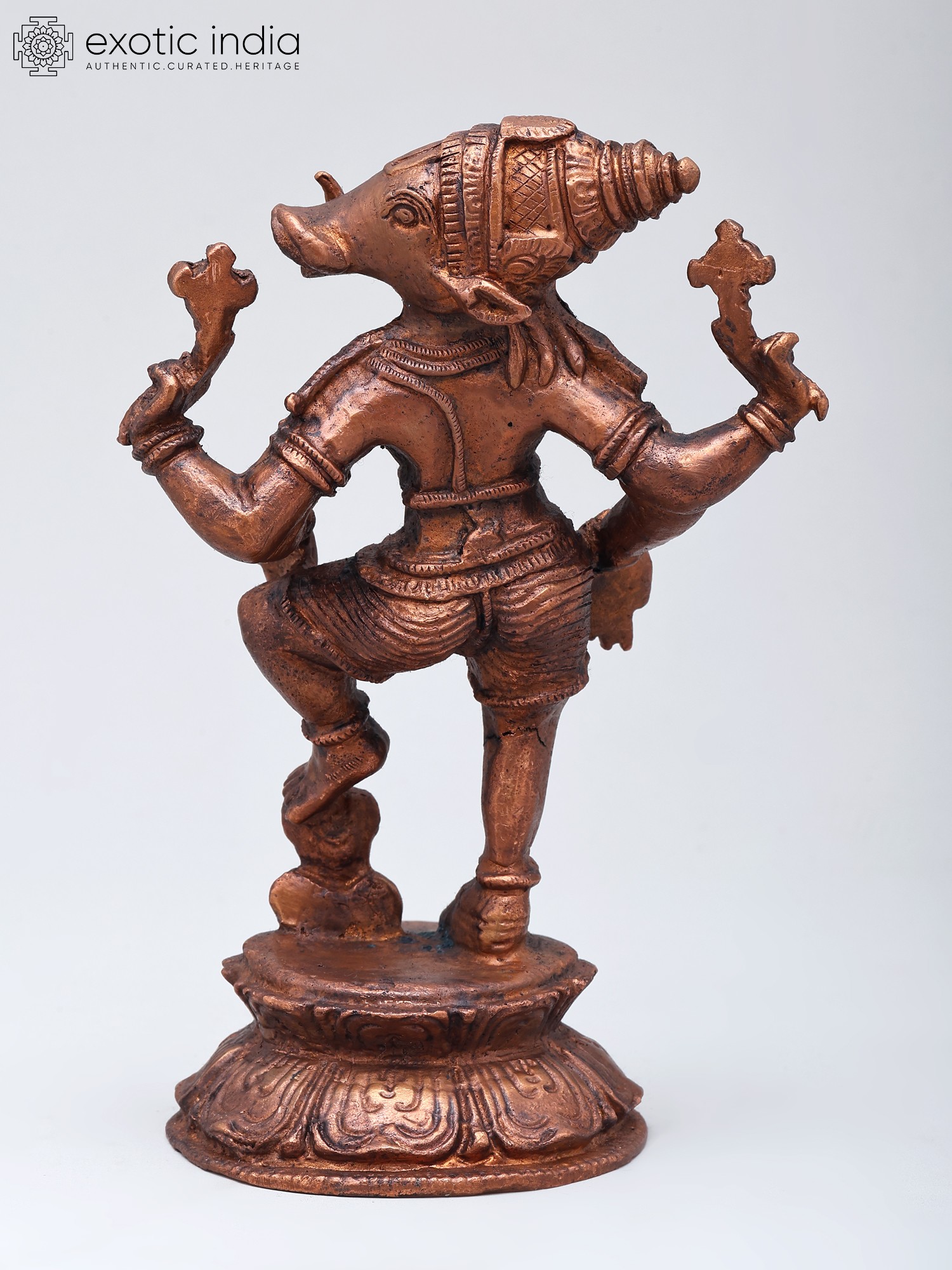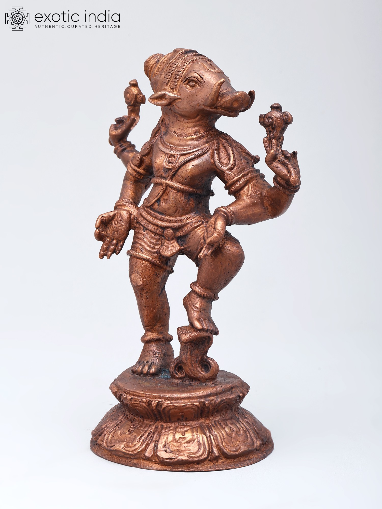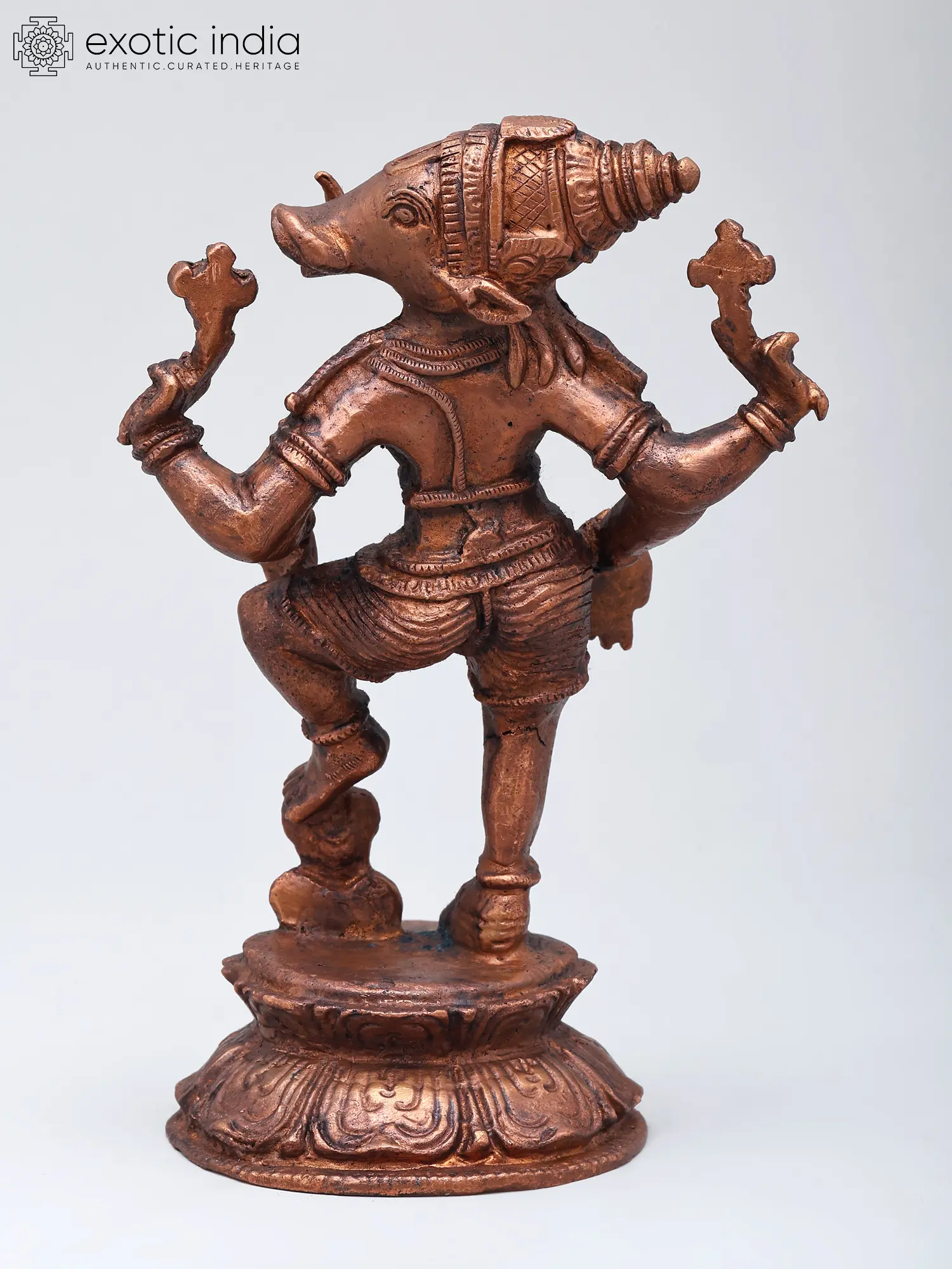 4" Small Standing Lord Varaha and Devi Lakshmi Copper Statue
