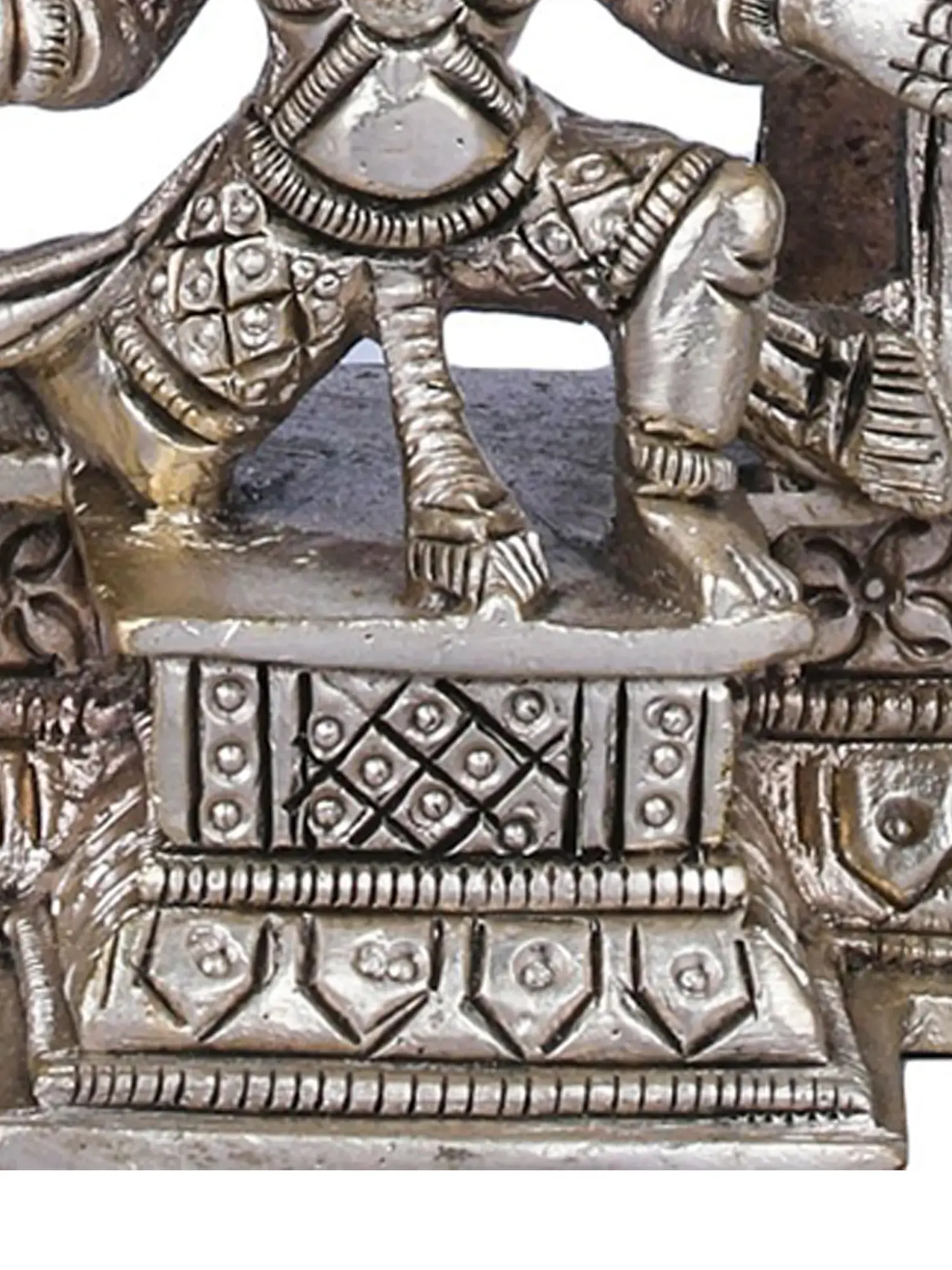 The sculpture is elevated by the commanding presence of the Garuda pedestal. Garuda, the divine eagle-like mount of Lord Vishnu, is a powerful symbol of speed, strength, and loyalty. He is known for his unwavering devotion to Vishnu and his role in defeating evil forces. The Garuda's dynamic posture and keen gaze in this sculpture convey a sense of readiness and vigilant protection, reflecting Vishnu's swift intervention in times of need. The entire composition is framed by an ornate arch, intricately carved with traditional motifs, further enhancing the divine aura of the deities. The medium of brass adds a significant dimension to this masterpiece. Brass, an alloy of copper and zinc, has been a favored material for religious idols and decorative art in India for centuries. Its durability, malleability, and ability to take on intricate details make it ideal for capturing the finest nuances of divine forms. The skilled artisans have employed age-old techniques to bring this piece to life, imbuing it with a spiritual resonance that transcends the material. The warm, golden hue of the brass symbolizes auspiciousness and purity, making this sculpture a captivating addition to any sacred space or a cherished piece of art. This handmade creation is not merely an object but a conduit to the divine, a reminder of the eternal principles of dharma, prosperity, and earthly sustenance.
