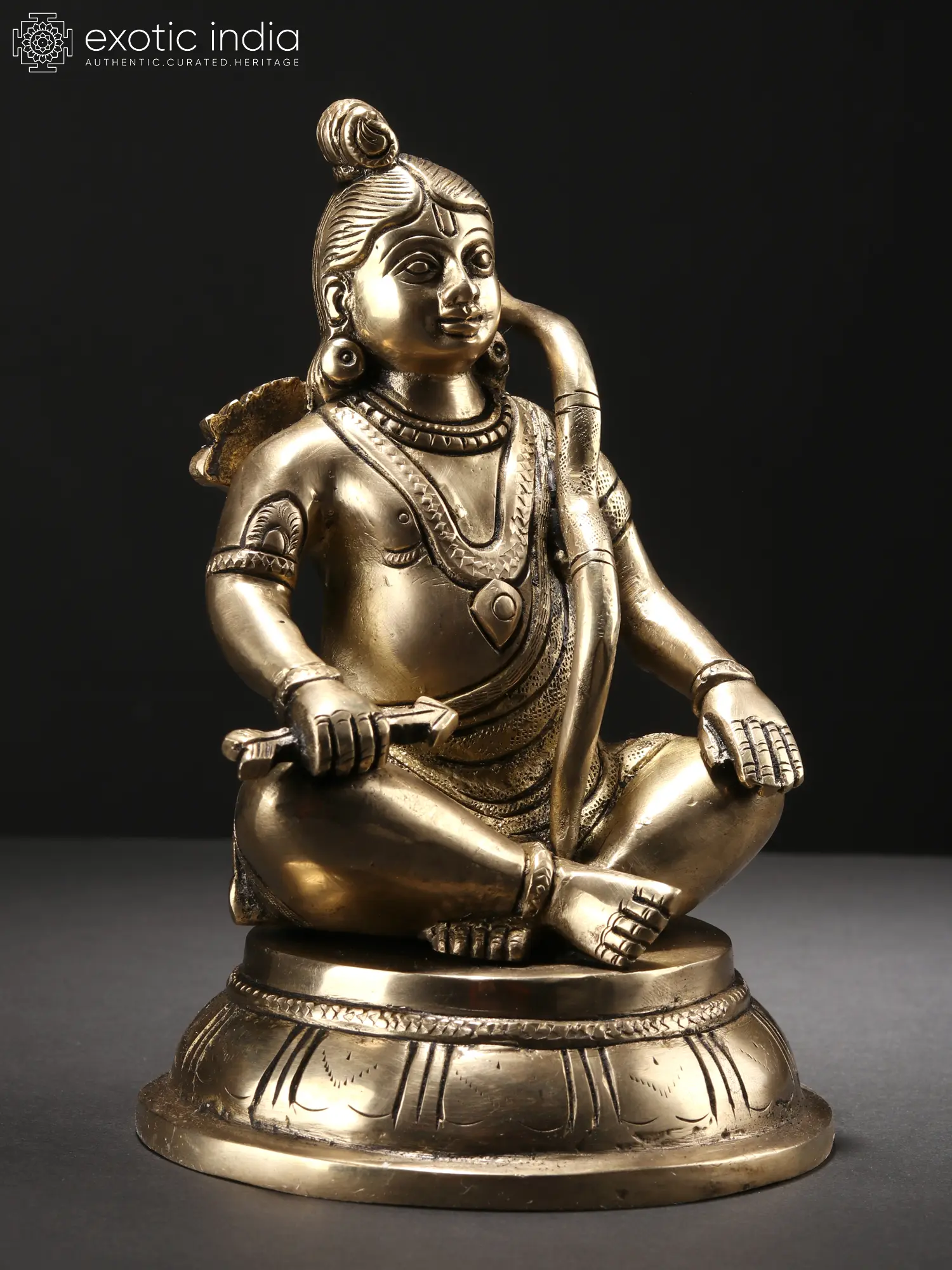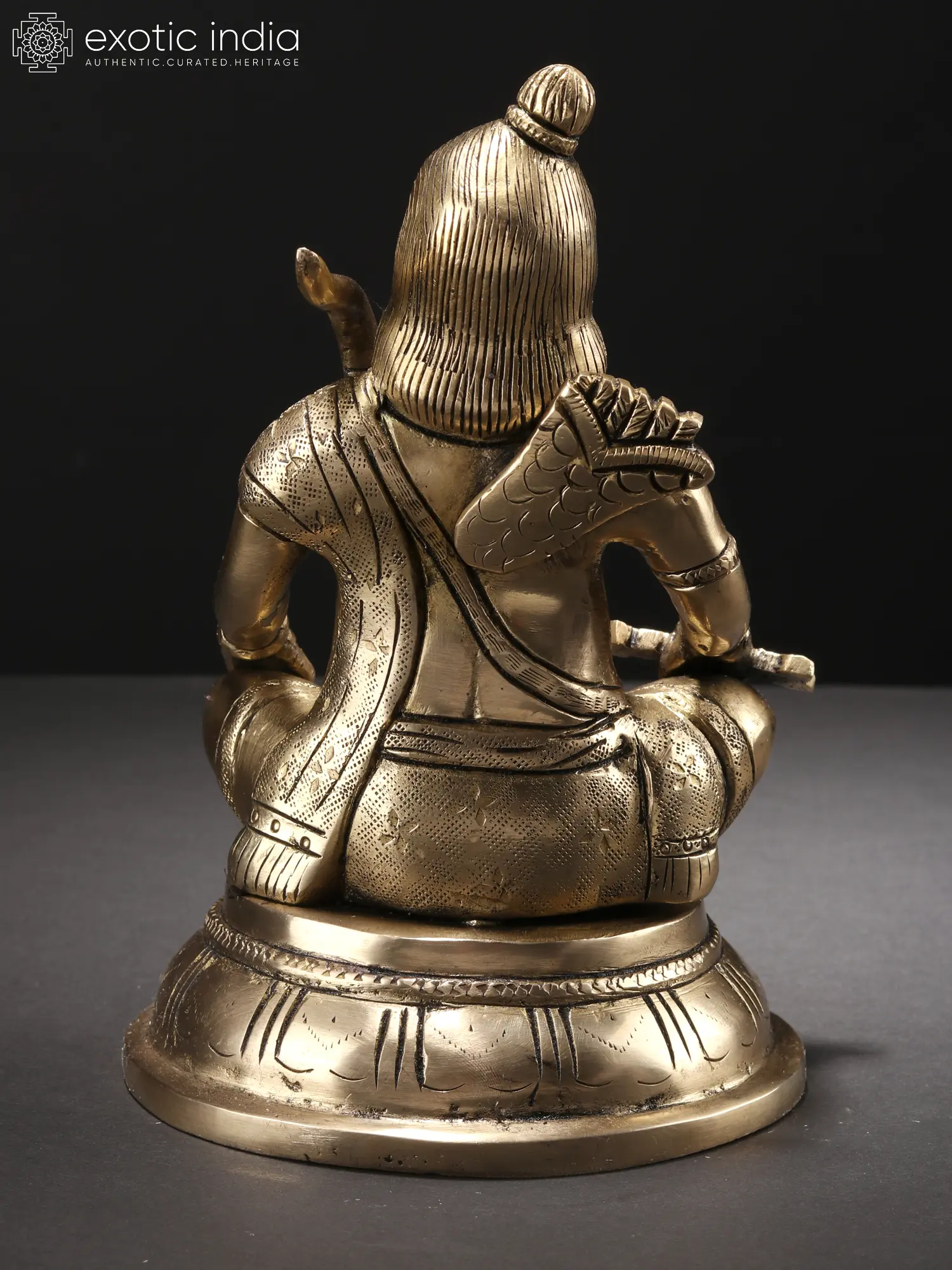 This Sitting Prabhu Shri Rama Brass Statue beautifully captures the regal essence of Lord Rama in his Sanyasi attire. Narada, in ancient scriptures, extols the regal characteristics of Rama, and this statue reflects a unique depiction of the revered deity. Adorned in the distinctive attire of a Sanyasi, Lord Rama wears his hair in an uplifted hair bun, draped in the sacred Bhagva Vastra and embellished with a Rudraksha necklace.