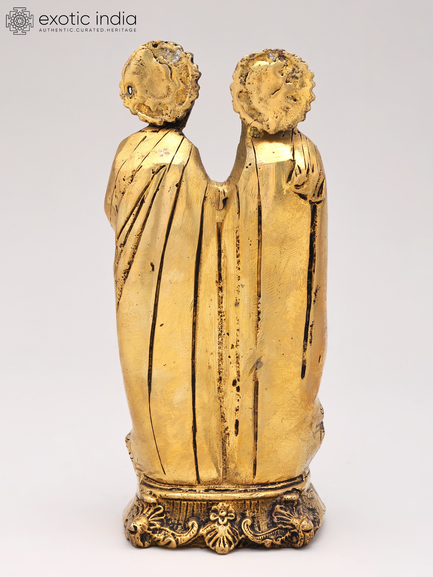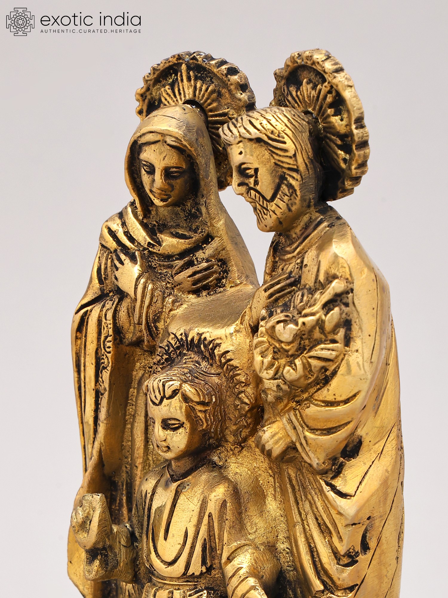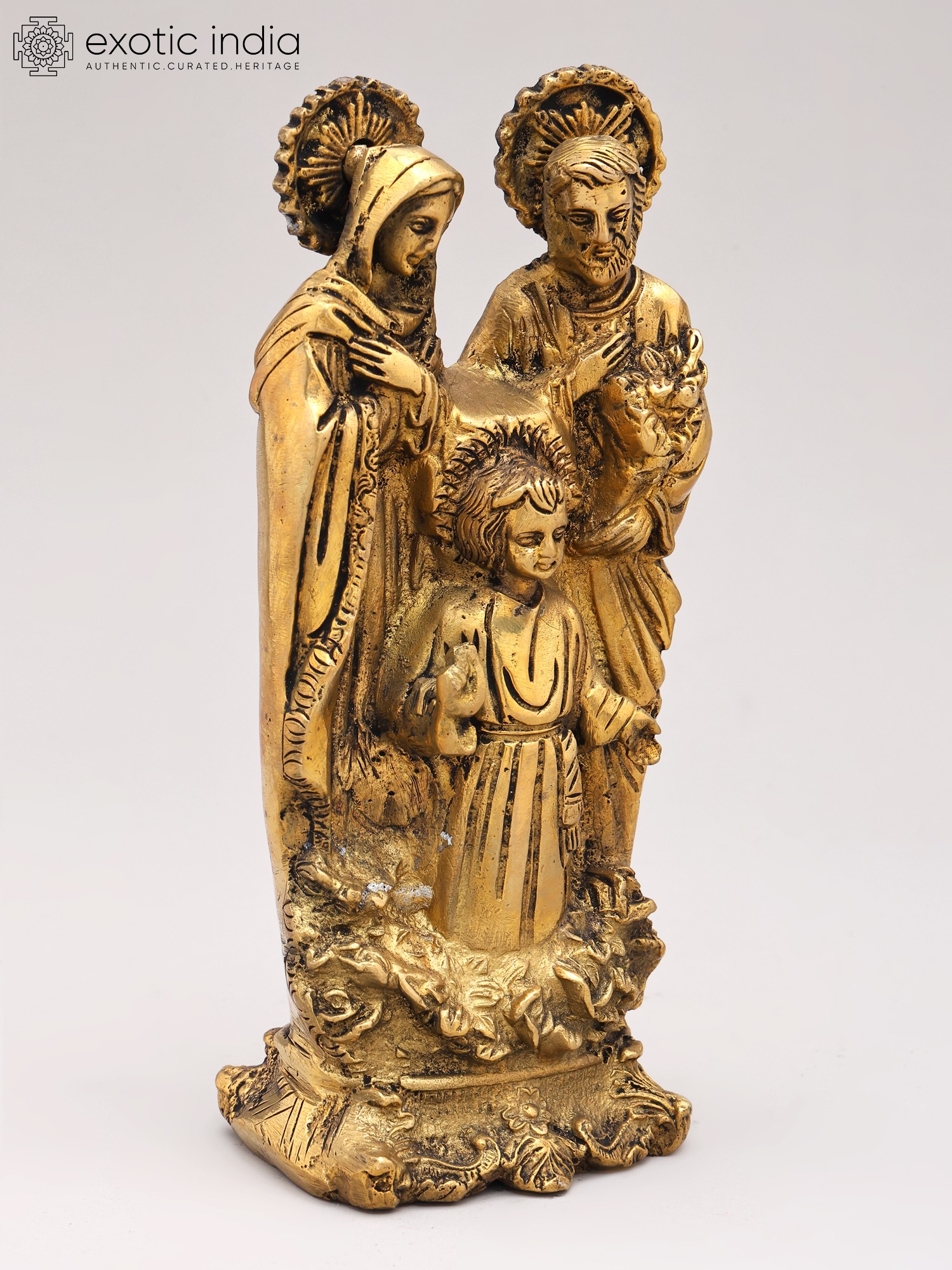 Each element of this handmade brass statue speaks to a rich tradition of artistic dedication. The intricate detailing on the robes, the delicate features of the faces, and the ornate halos all contribute to the profound spiritual resonance of the piece. The base, adorned with floral motifs, further enhances the visual appeal and symbolizes the flourishing of faith and life. Brass, a material known for its durability and inherent beauty, is perfectly suited to immortalize such a revered subject. In many cultures, brass is associated with purity, prosperity, and auspicious beginnings, making it an ideal medium for a religious artifact. The iconography of the Holy Family has deep roots in Christian art and theology. Their story, beginning with the Annunciation and culminating in the flight to Egypt and their humble life in Nazareth, is a narrative of divine intervention, unwavering faith, and profound love. Saint Joseph, in particular, is often revered as the patron saint of workers, fathers, and the universal Church, a figure of silent strength and righteous action. This sculpture serves as a tangible reminder of these spiritual figures and their significant roles in the salvation history.