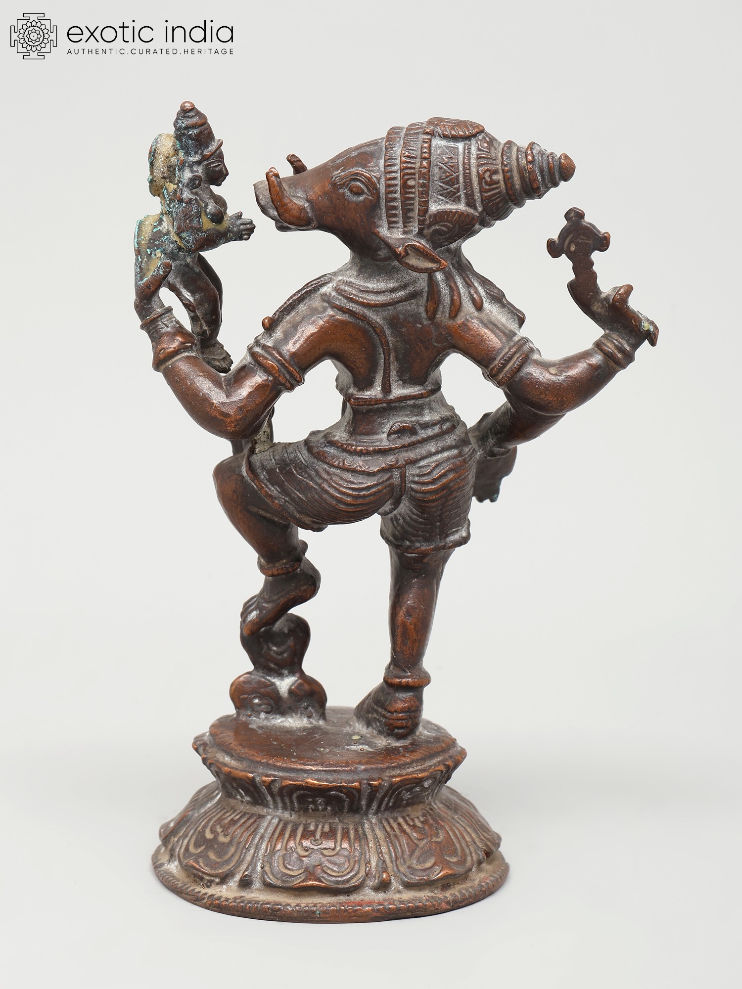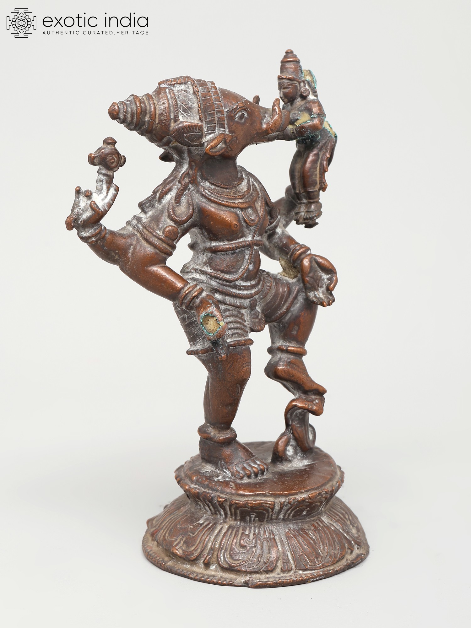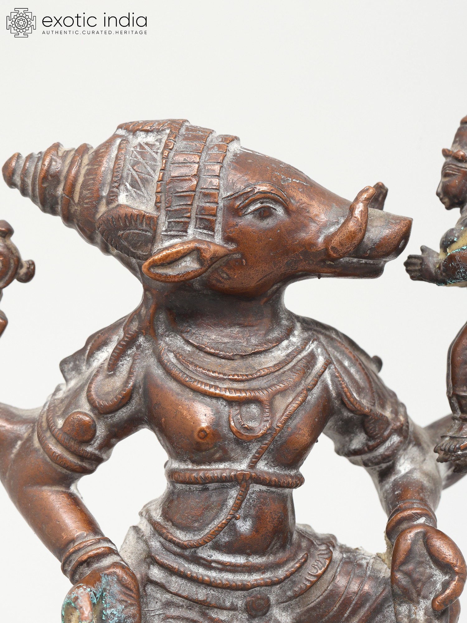 4" Small Standing Lord Varaha and Devi Lakshmi Copper Statue