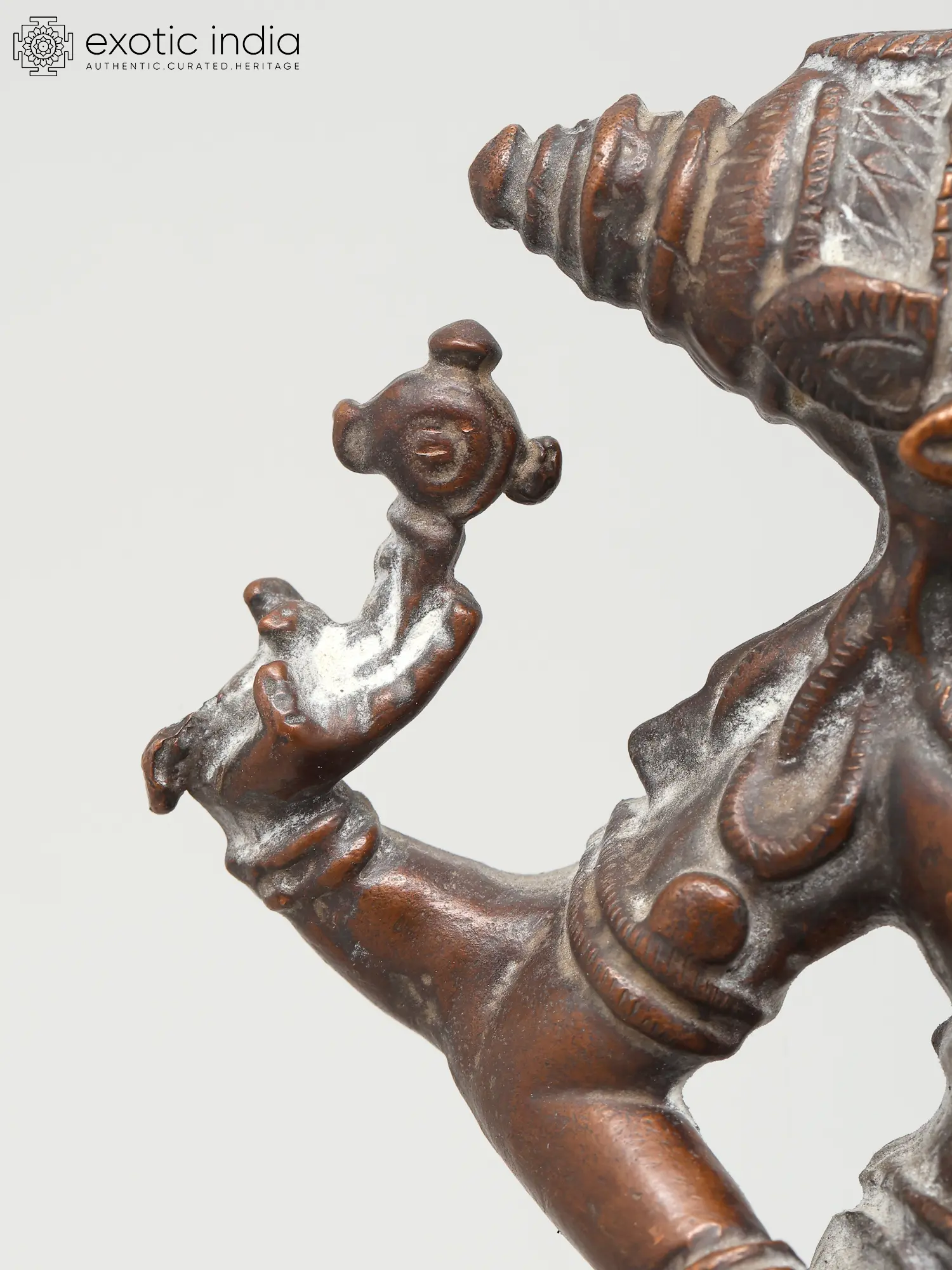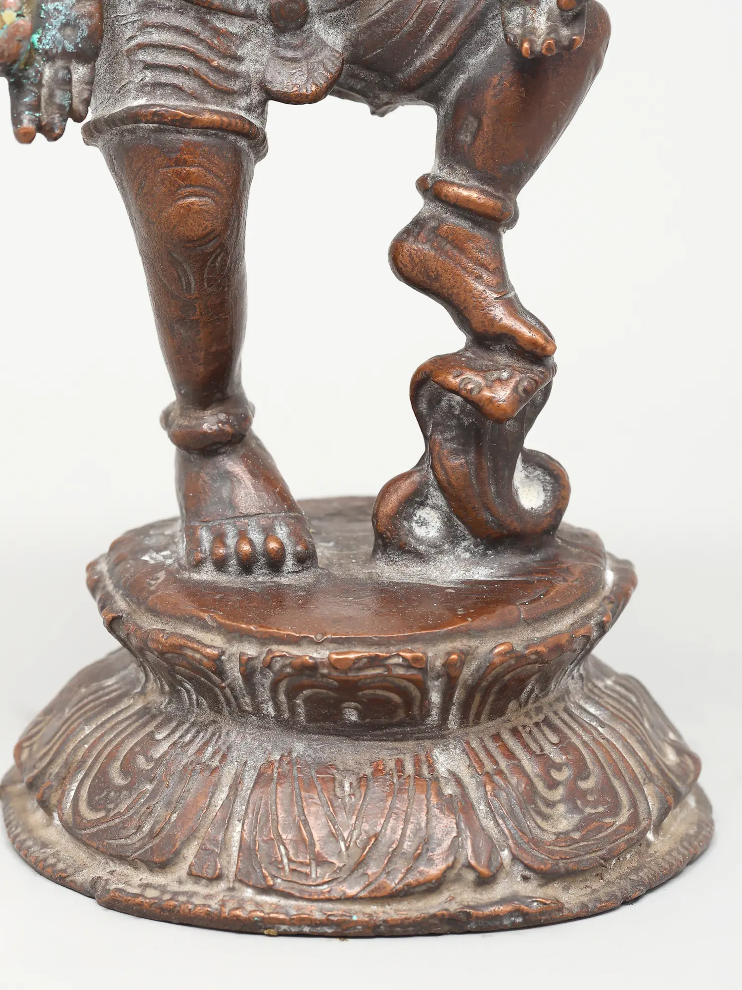 6" Small Standing Lord Narasimha - The Fourth Avatar of Lord Vishnu | Copper Statue with Silver