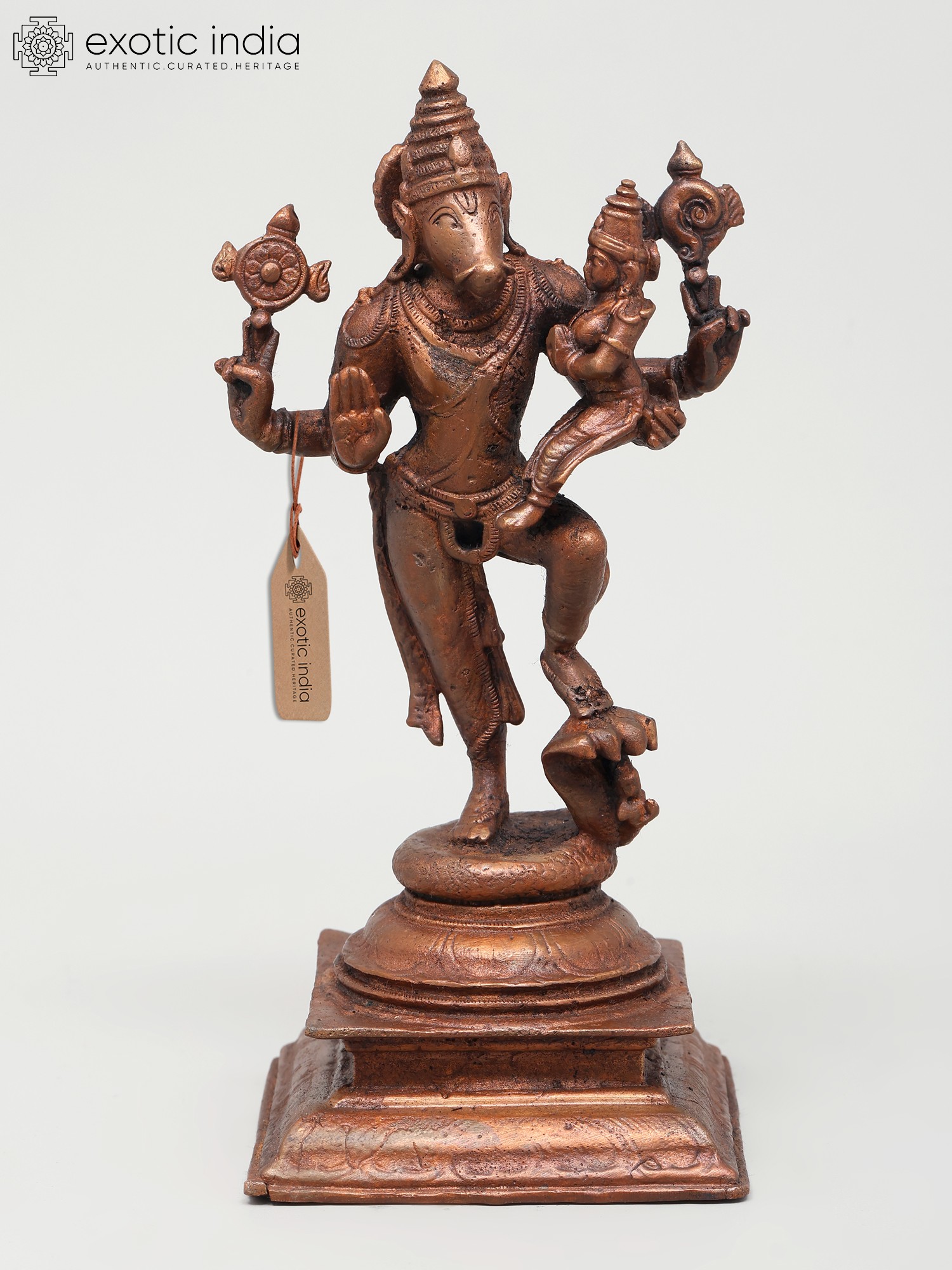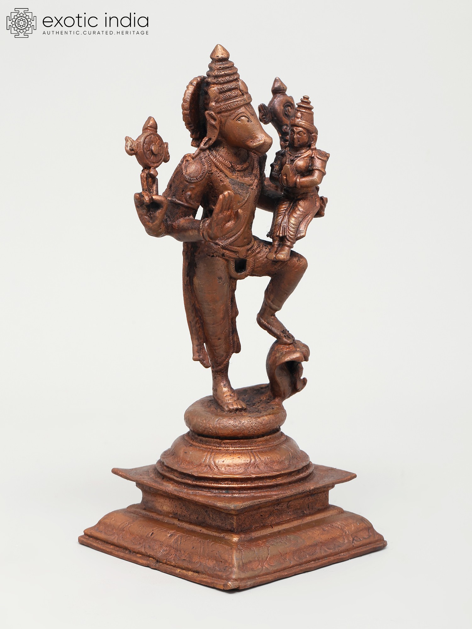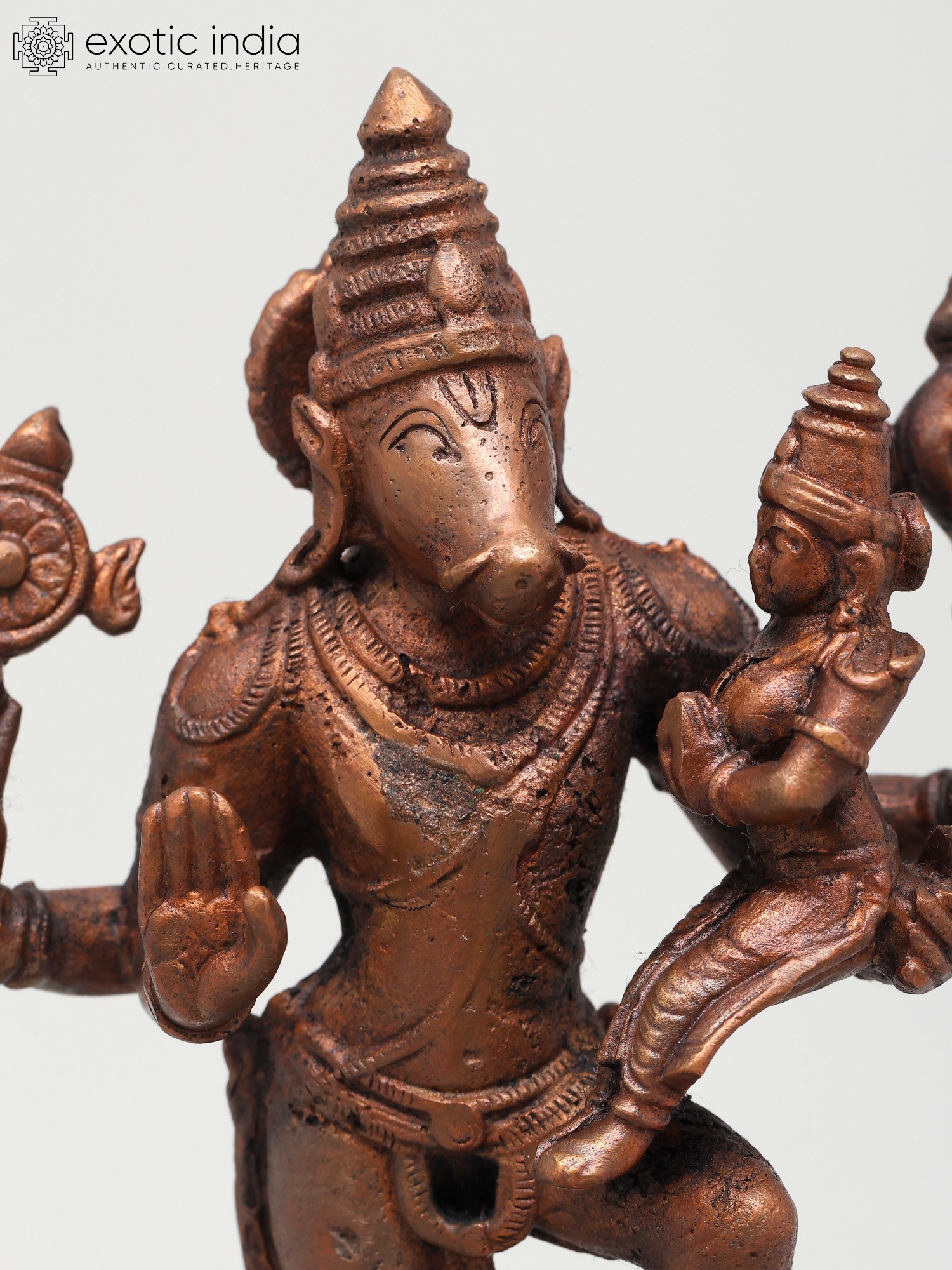 4" Small Standing Lord Varaha and Devi Lakshmi Copper Statue