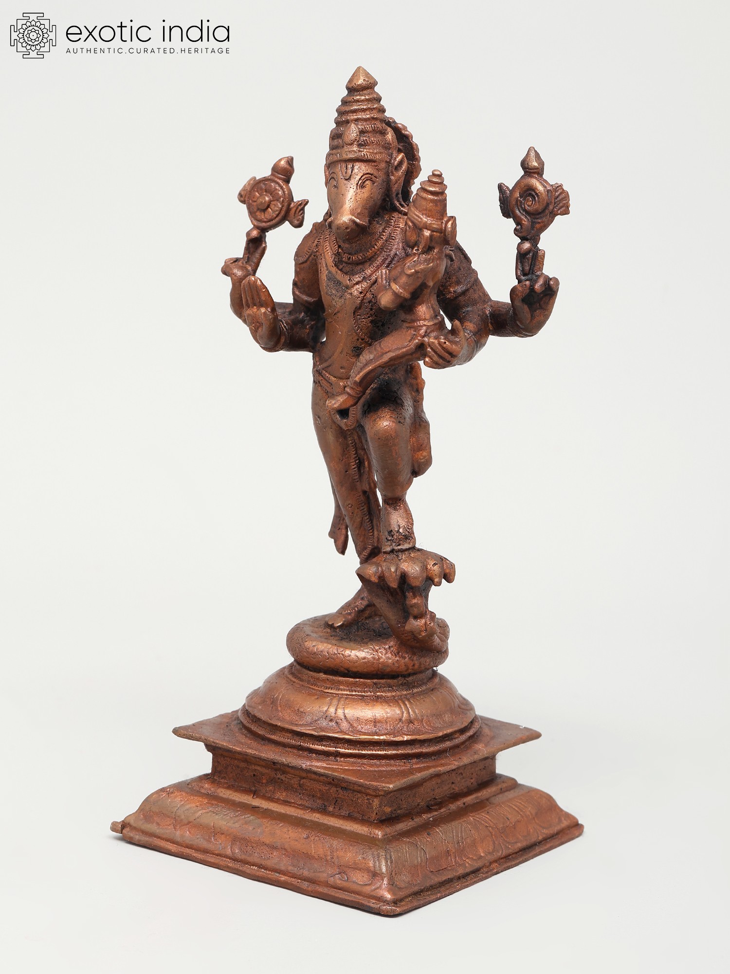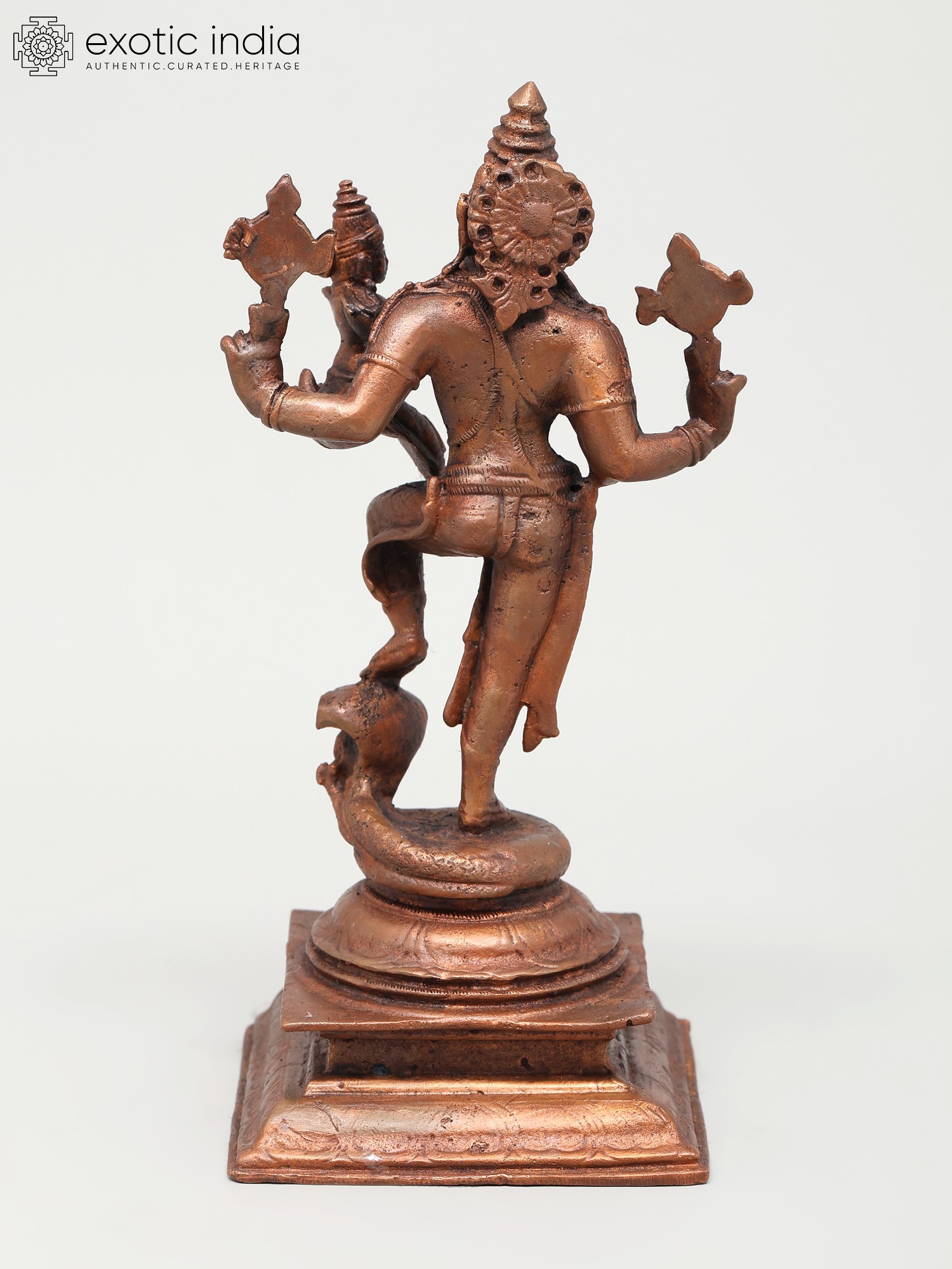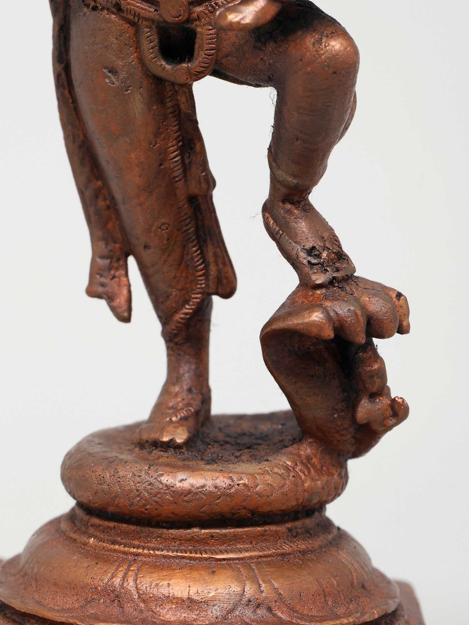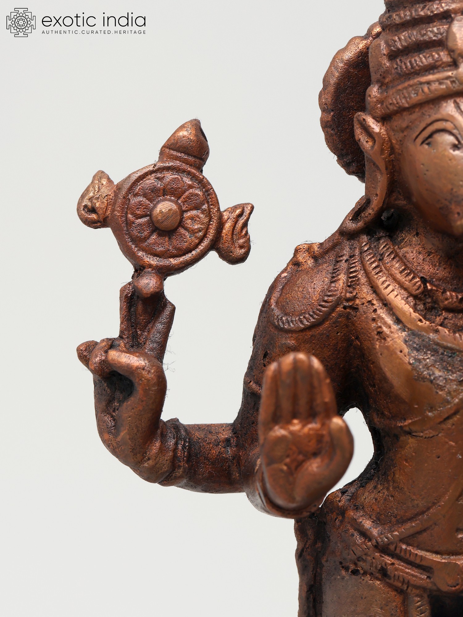 6" Small Lord Vishnu Copper Idol - Asura Vadh with Sudarshan Chakra