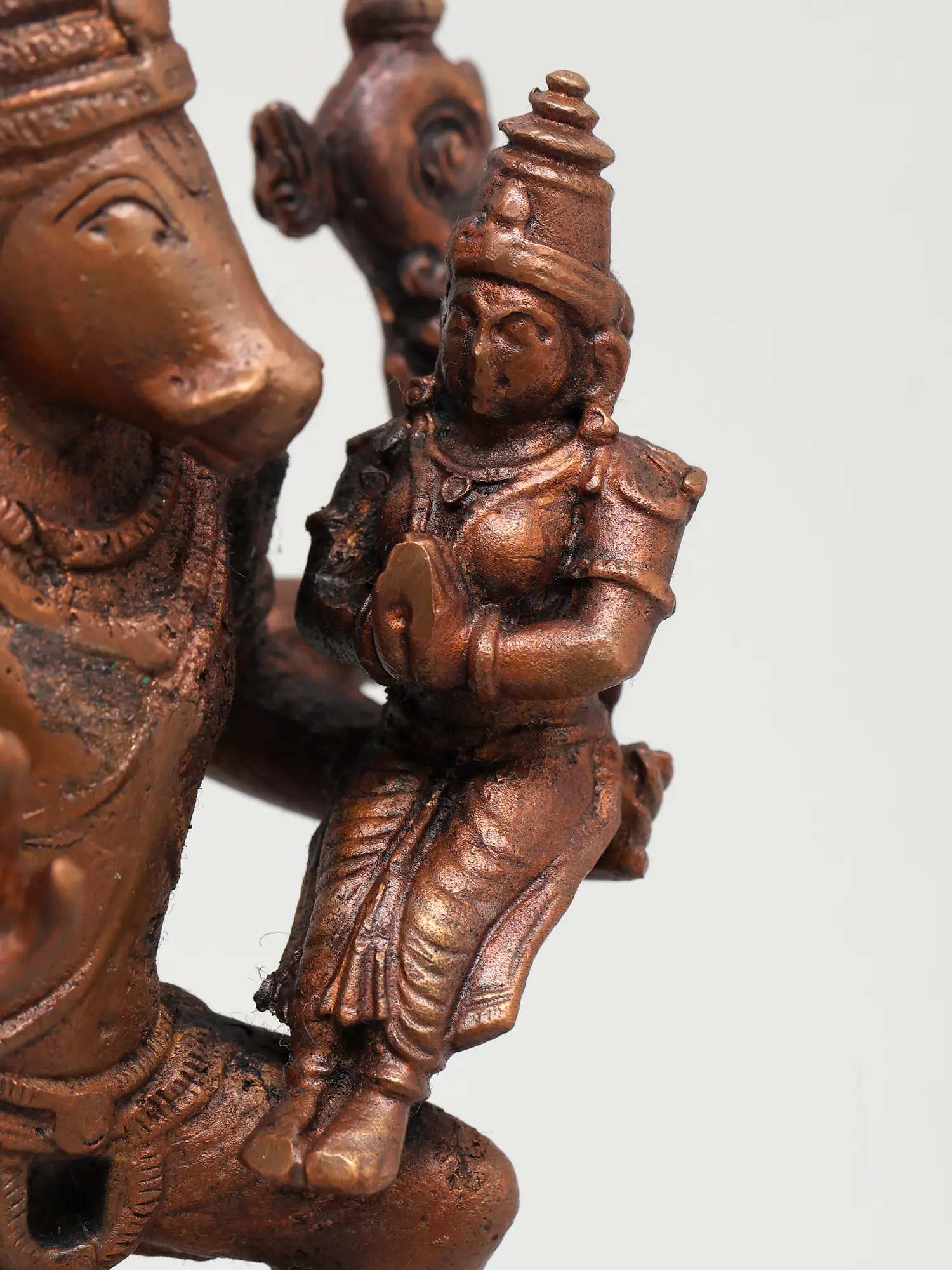 4" Small Lord Narasimha Seated with Devi Lakshmi | Copper Statue