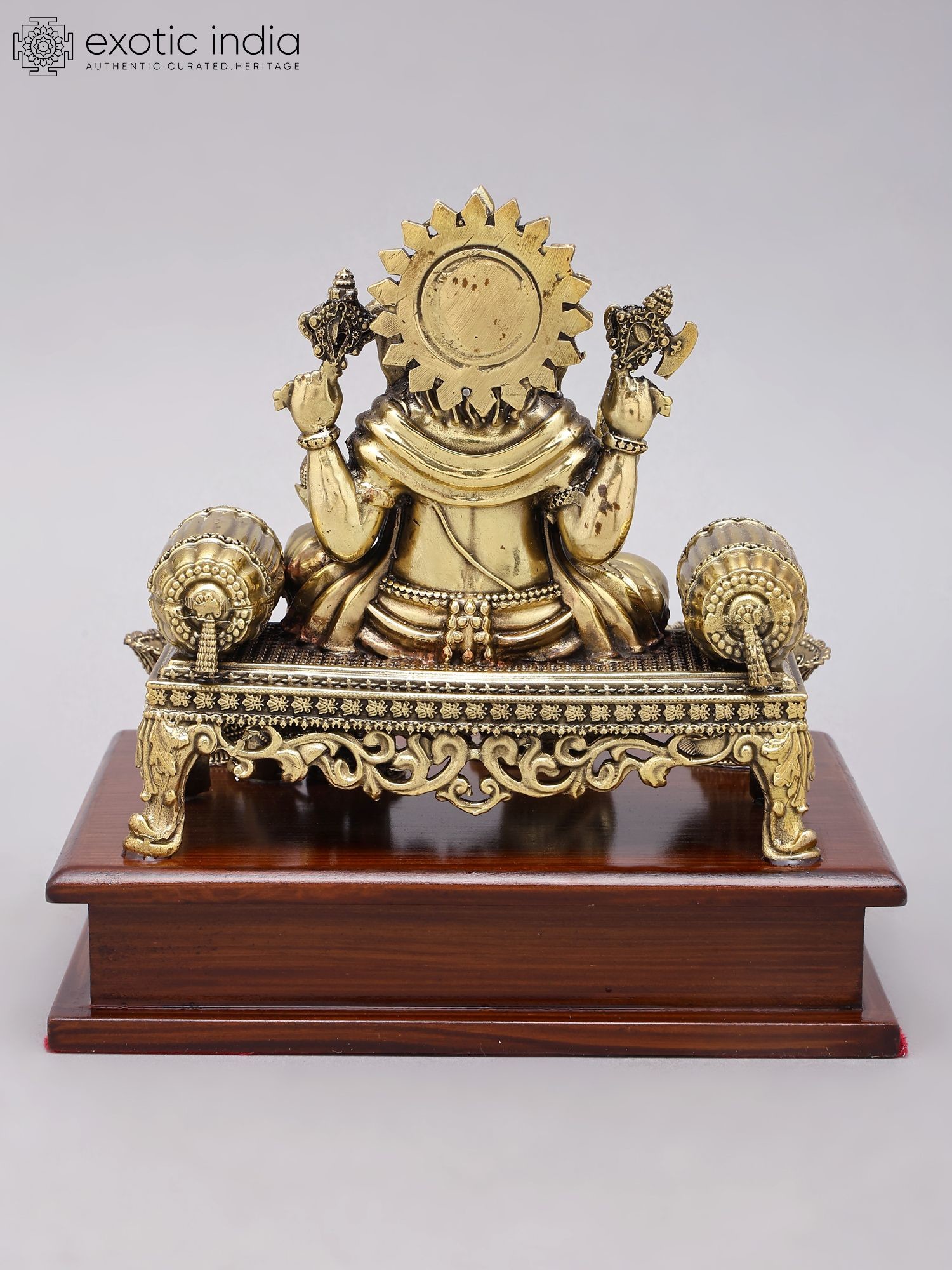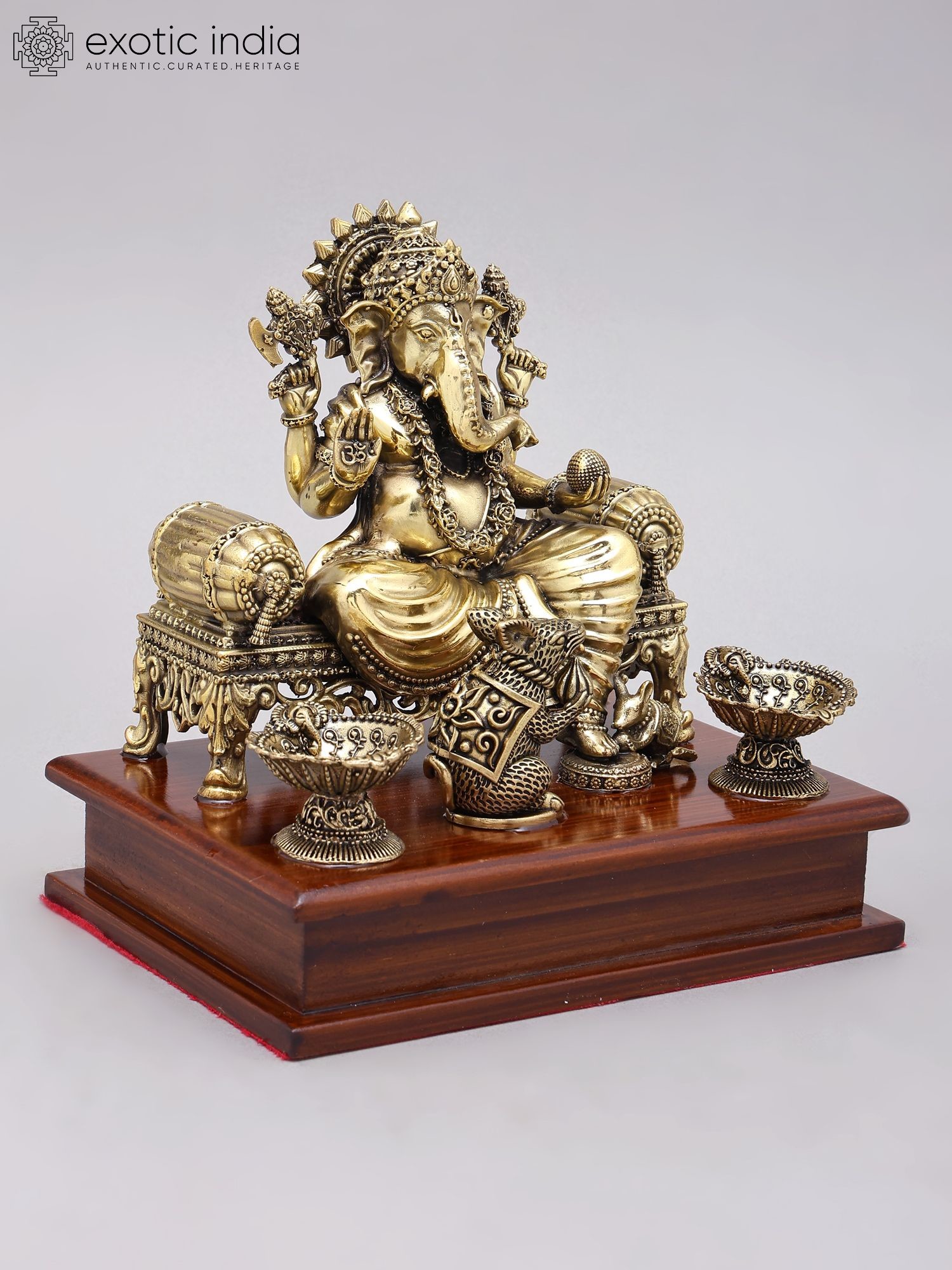 8" Brass Four-Armed Seated Ganesha Statue Granting Abhaya | Handmade | Made in India
