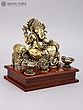 9" Sitting Lakshmi Ganesha Brass Sculpture | Wood Framed Wall Hanging
