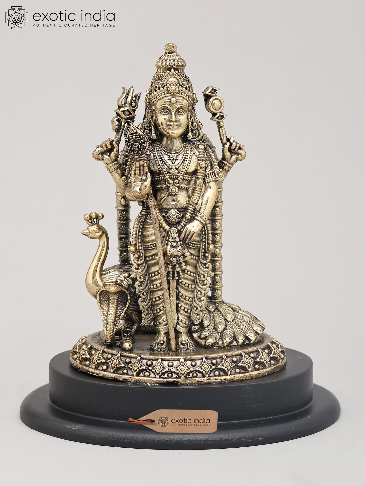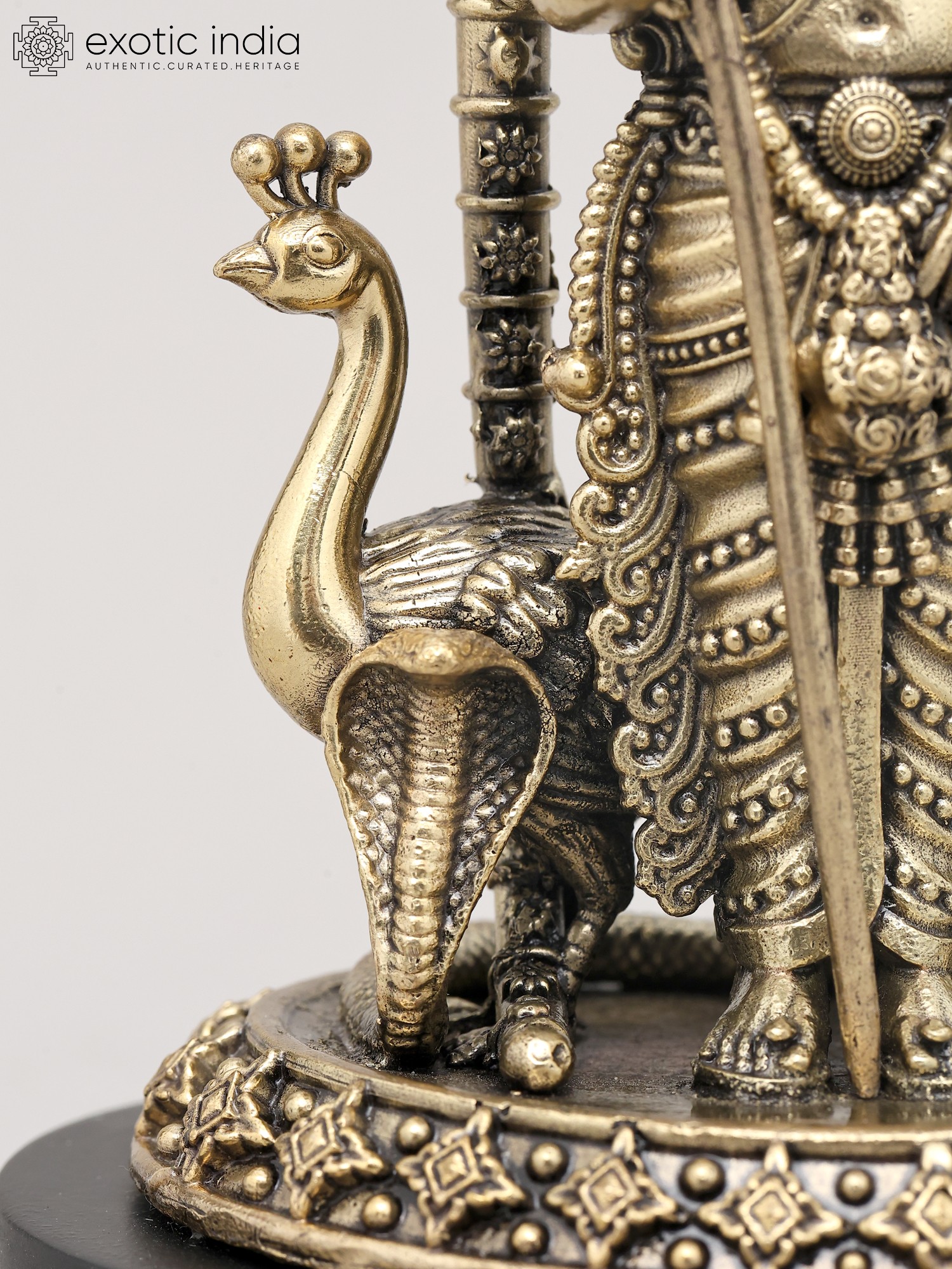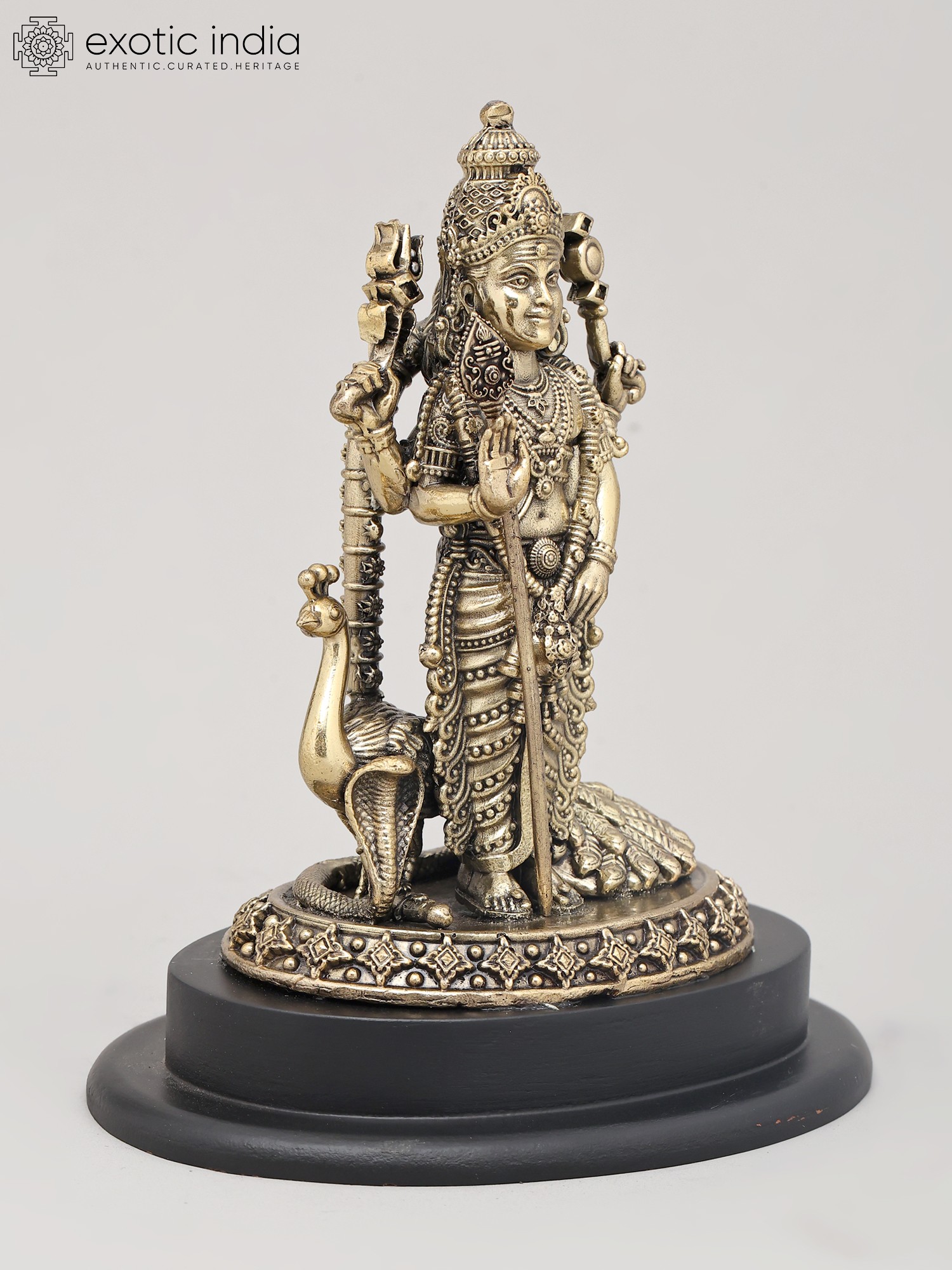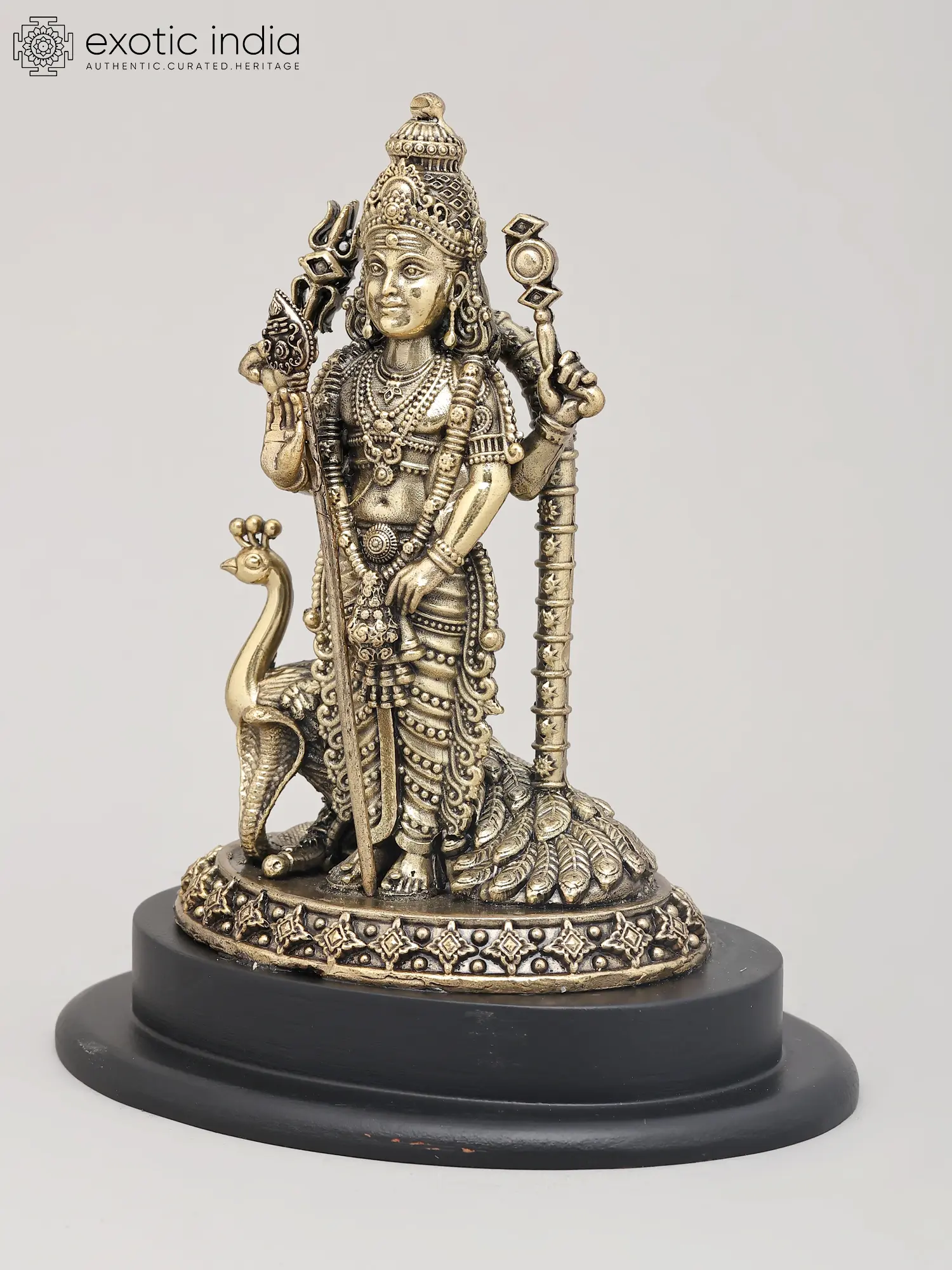 4" Small Superfine Standing Lord Murugan with Peacock | Brass Idol