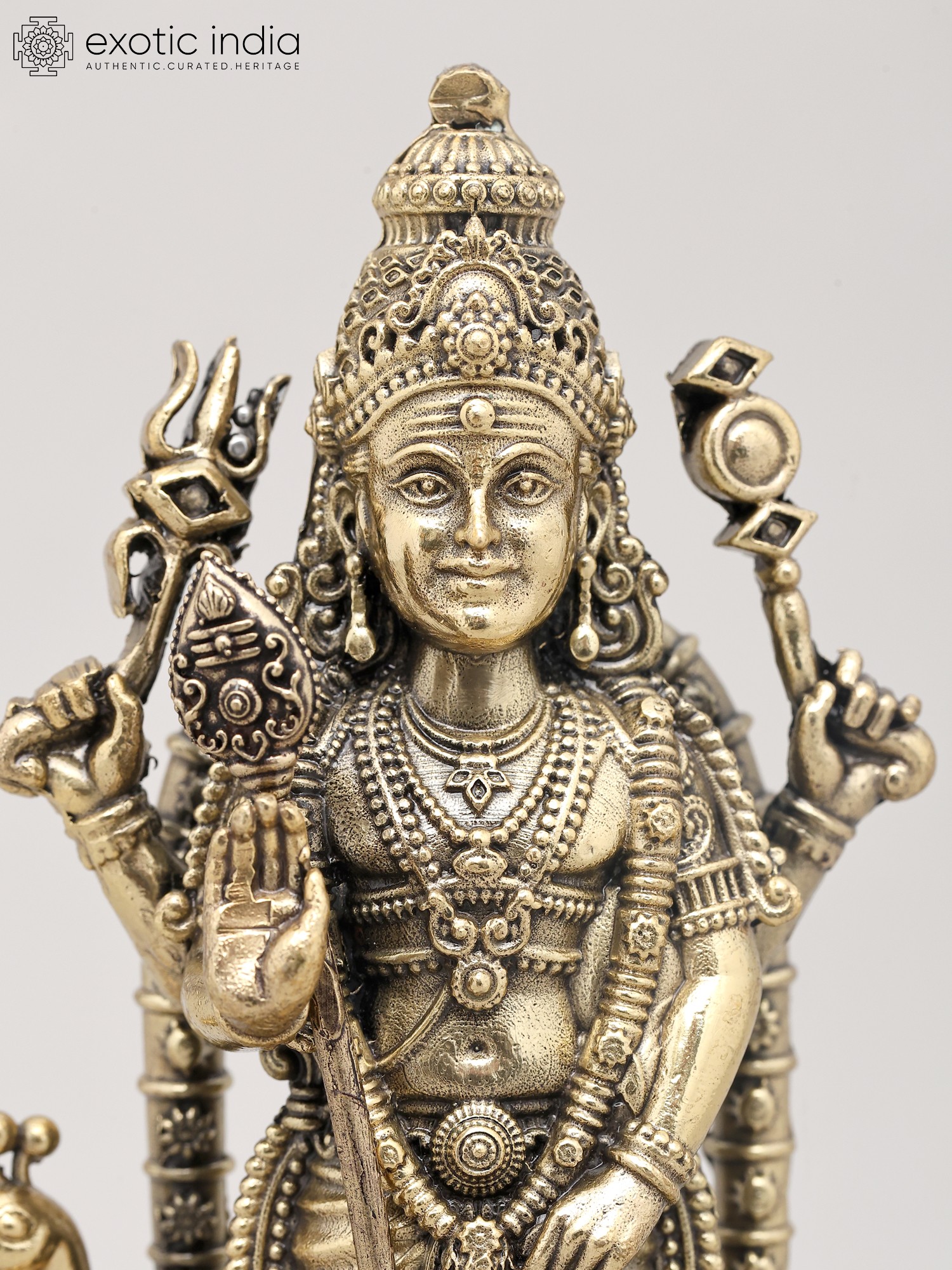 5" Small Superfine Standing Lord Murugan (Karttikeya) with Beautiful Kirtimukha Prabhavali | Brass Statue
