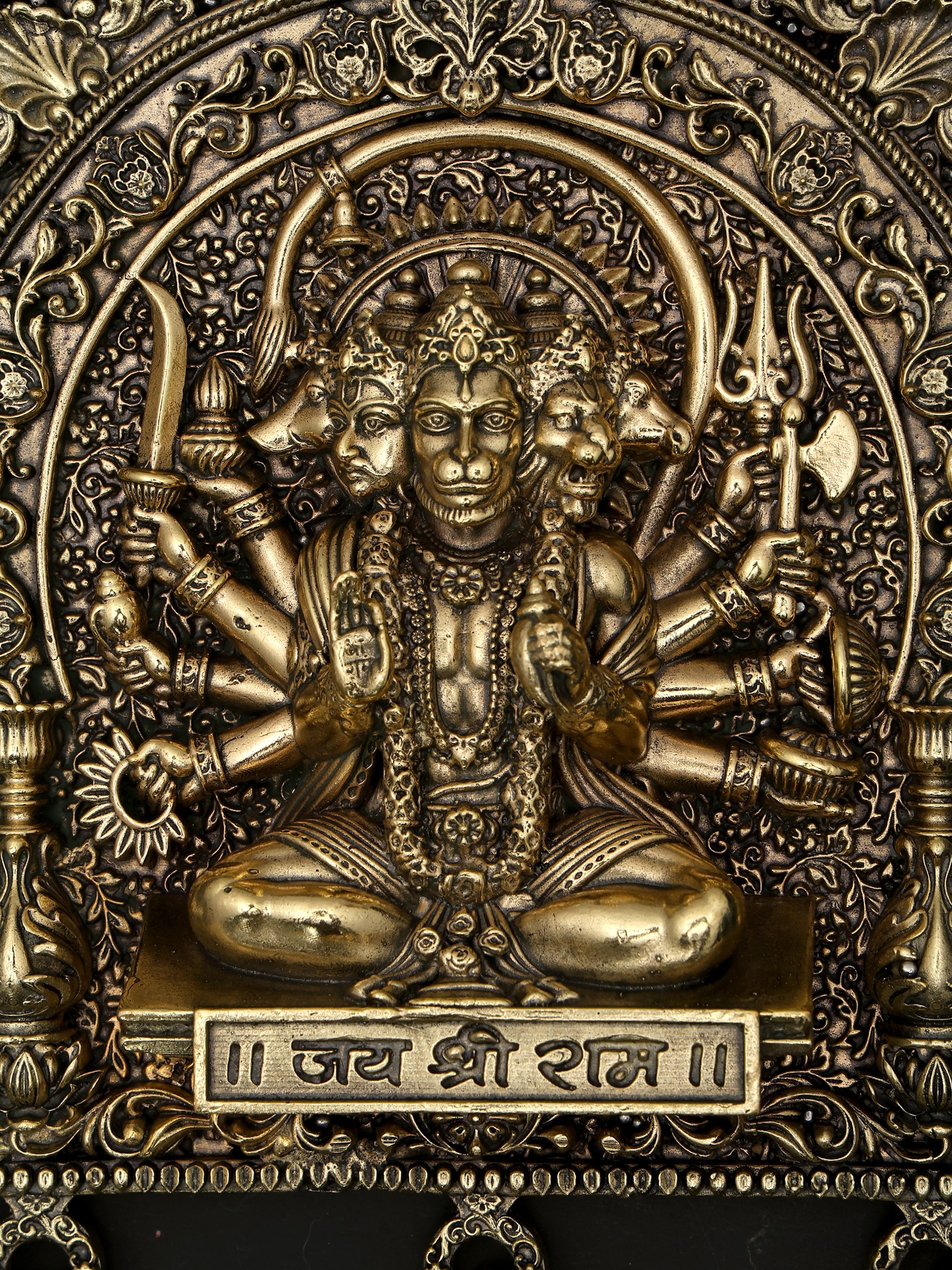 11" Black and Gold Finish Sitting Ten Armed Panchamukhi Lord Hanuman | Brass Statue