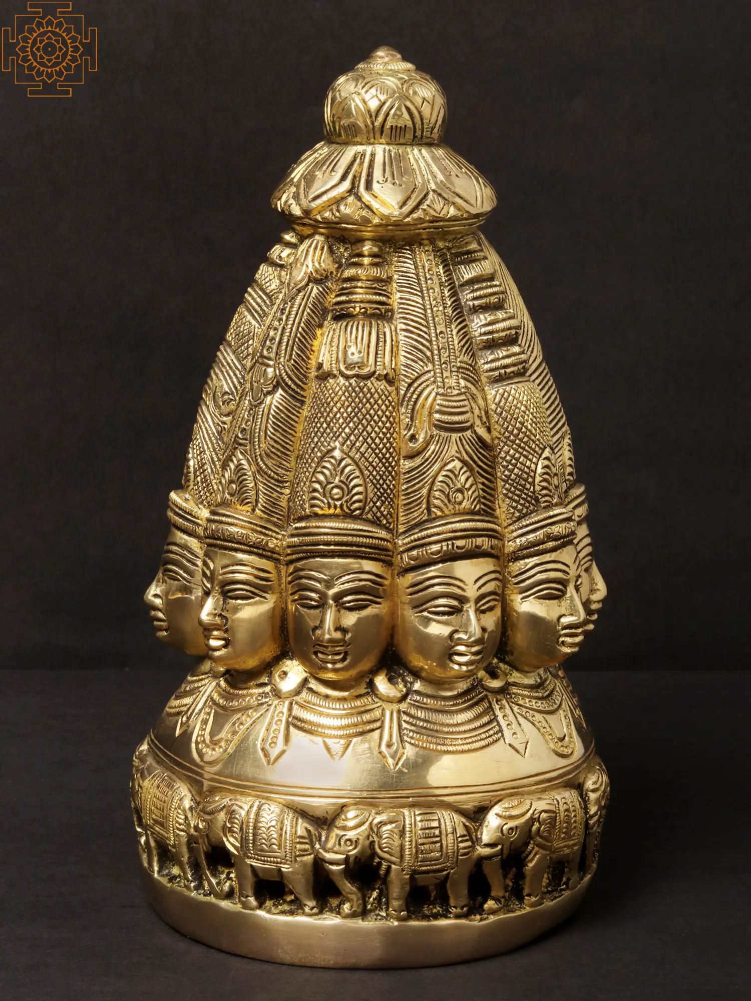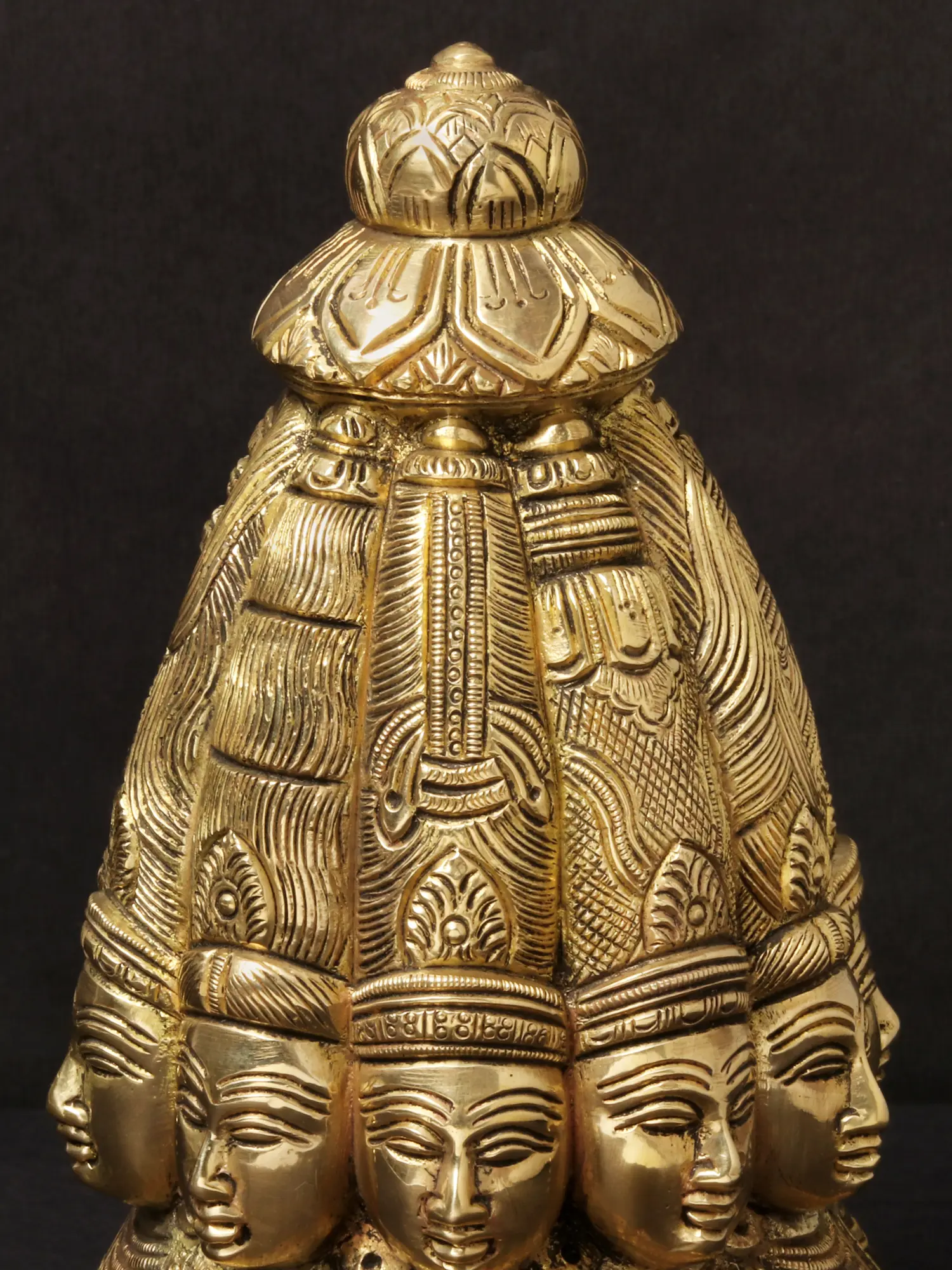 Delve into the profound spiritual significance of the Ten Faced Mukhalingam, a sacred representation of Lord Shiva. This handcrafted brass sculpture showcases the deity in a unique form, with ten faces symbolising the various aspects of the divine. Cast with devotion in India, this masterpiece embodies the deep connection of the artisans with Hindu philosophy. Placing it in your sacred space invites the blessings of Lord Shiva, offering spiritual insights and a connection to the multi-faceted nature of the divine.