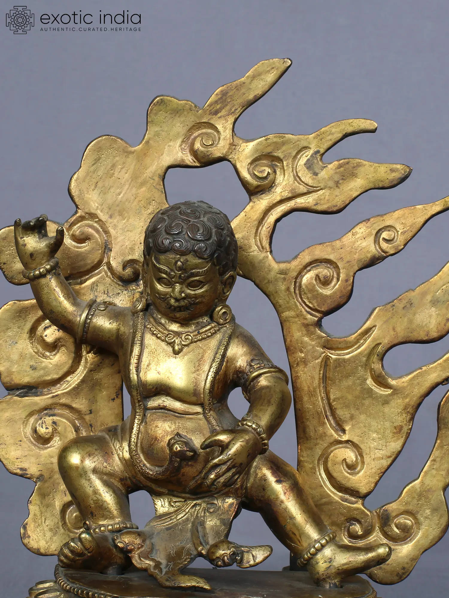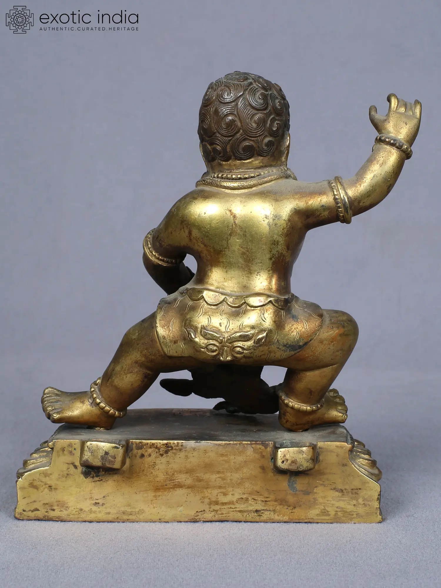 7" Tibetan Buddhist Deity Vajrapani Idol from Nepal | Copper Statue Gilded with Gold