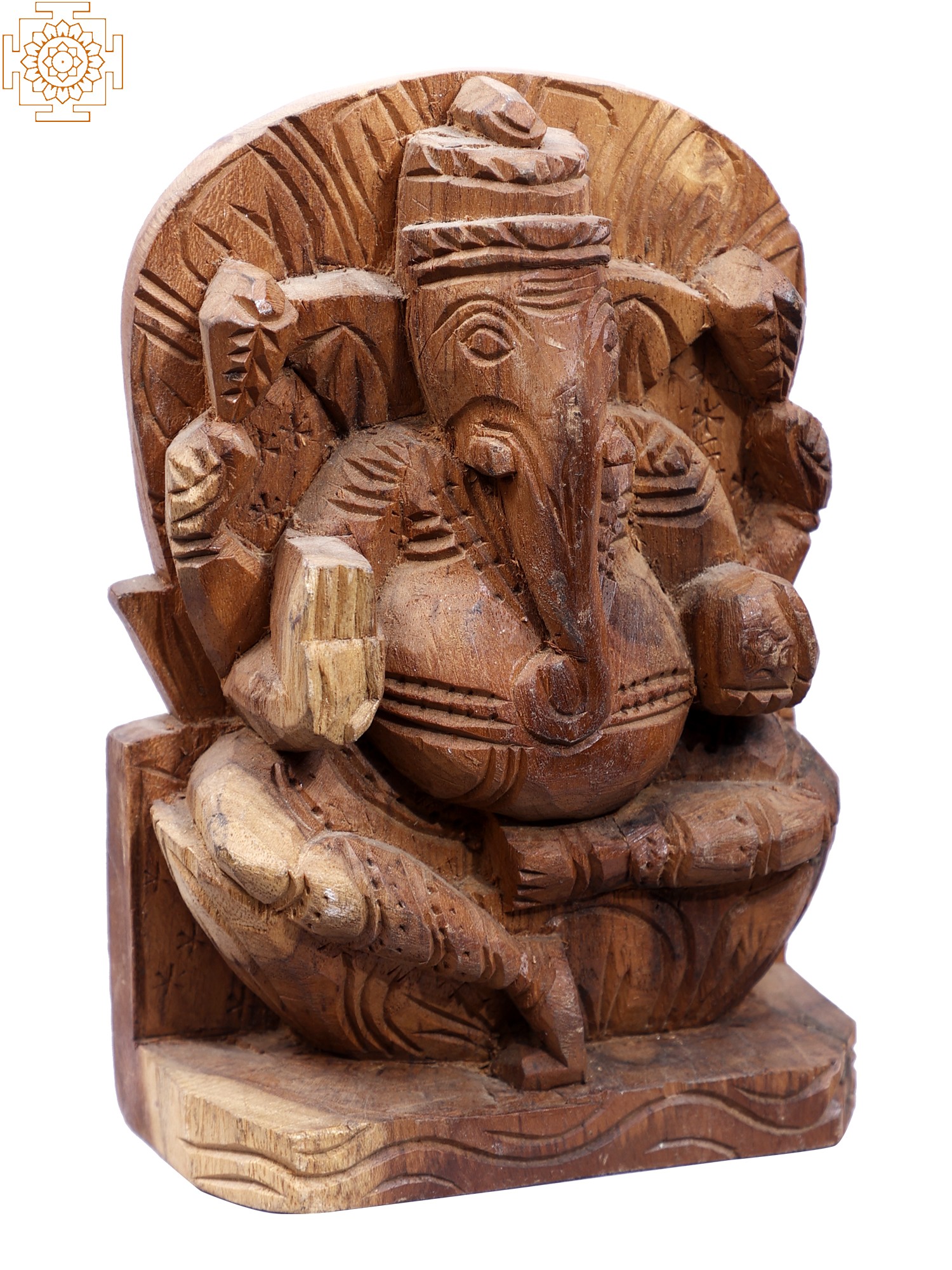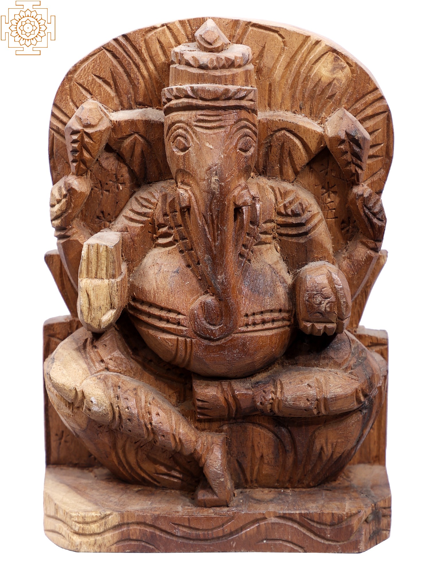 7" Wooden Sitting Chaturbhuja Lord Ganesha