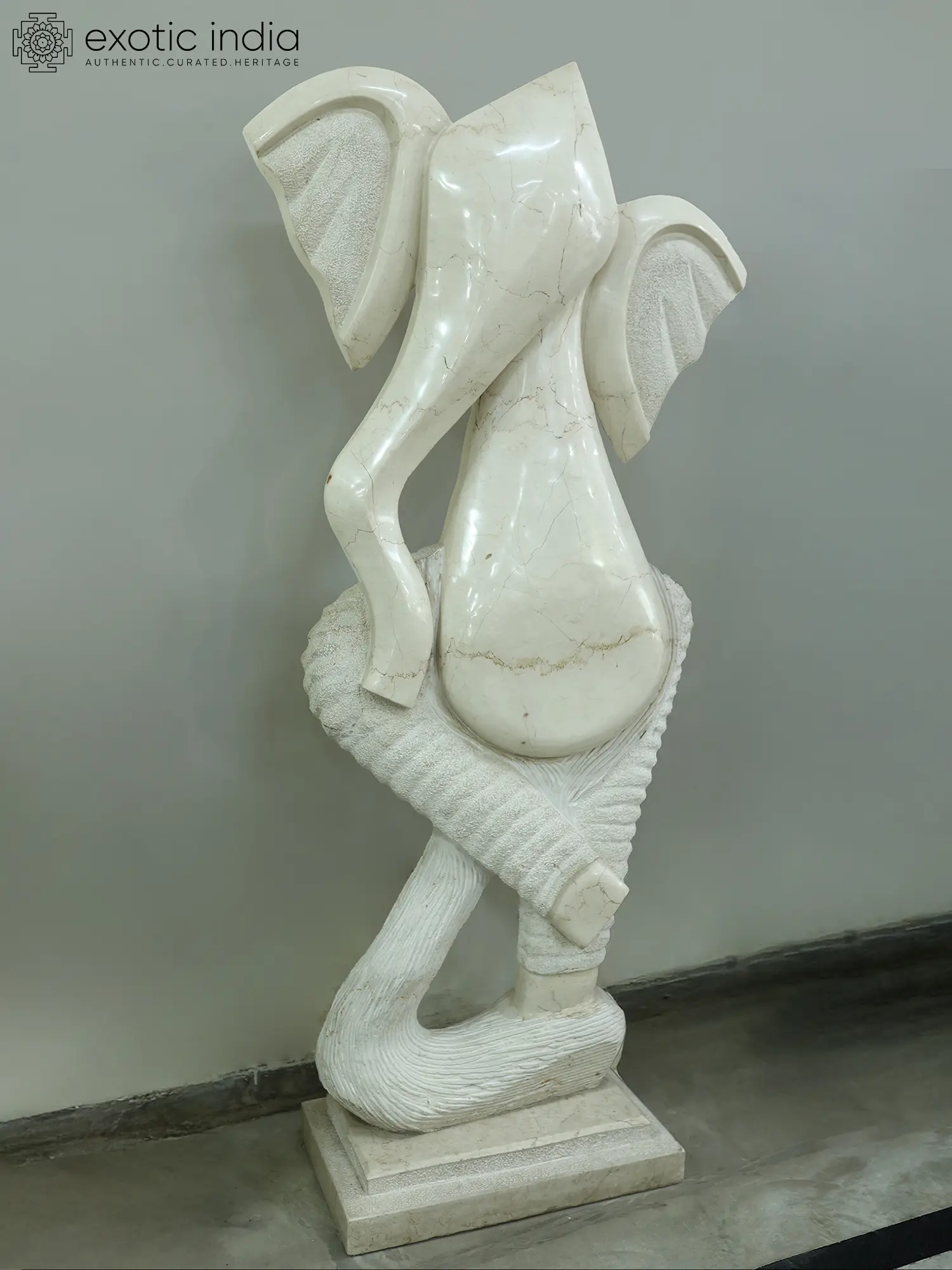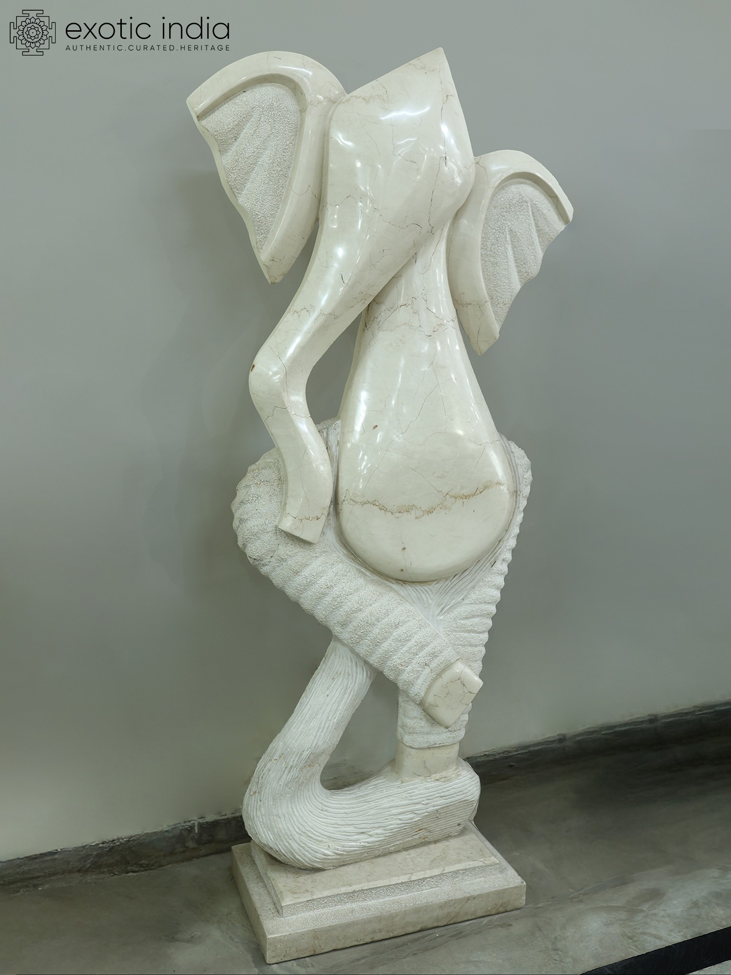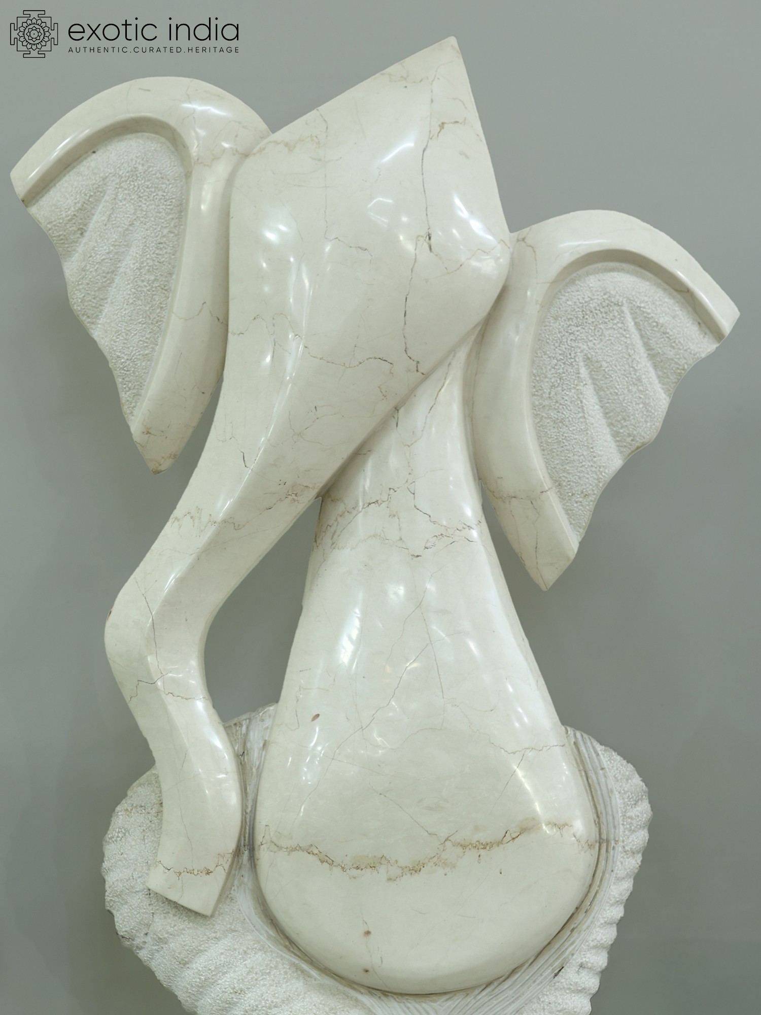 The artist's bold departure from conventional depictions of Ganesha is what makes this piece so captivating. The smooth, flowing lines and abstracted form create a sense of movement and vitality. The textured rendering of the ears and the base provides a compelling contrast to the polished, fluid curves of the deity's body. This juxtaposition of textures adds depth and visual interest, inviting closer examination. The subtle cracks and veins inherent in the natural marble are not seen as flaws but rather as integral elements of the stone's character, contributing to the sculpture's unique beauty and timeless appeal. This Ganesha is not merely an idol; it is a testament to the enduring power of faith expressed through the medium of contemporary art. Its substantial presence and the inherent beauty of the marble ensure it will be a cherished object for generations to come, a powerful reminder of divine wisdom and artistic innovation.